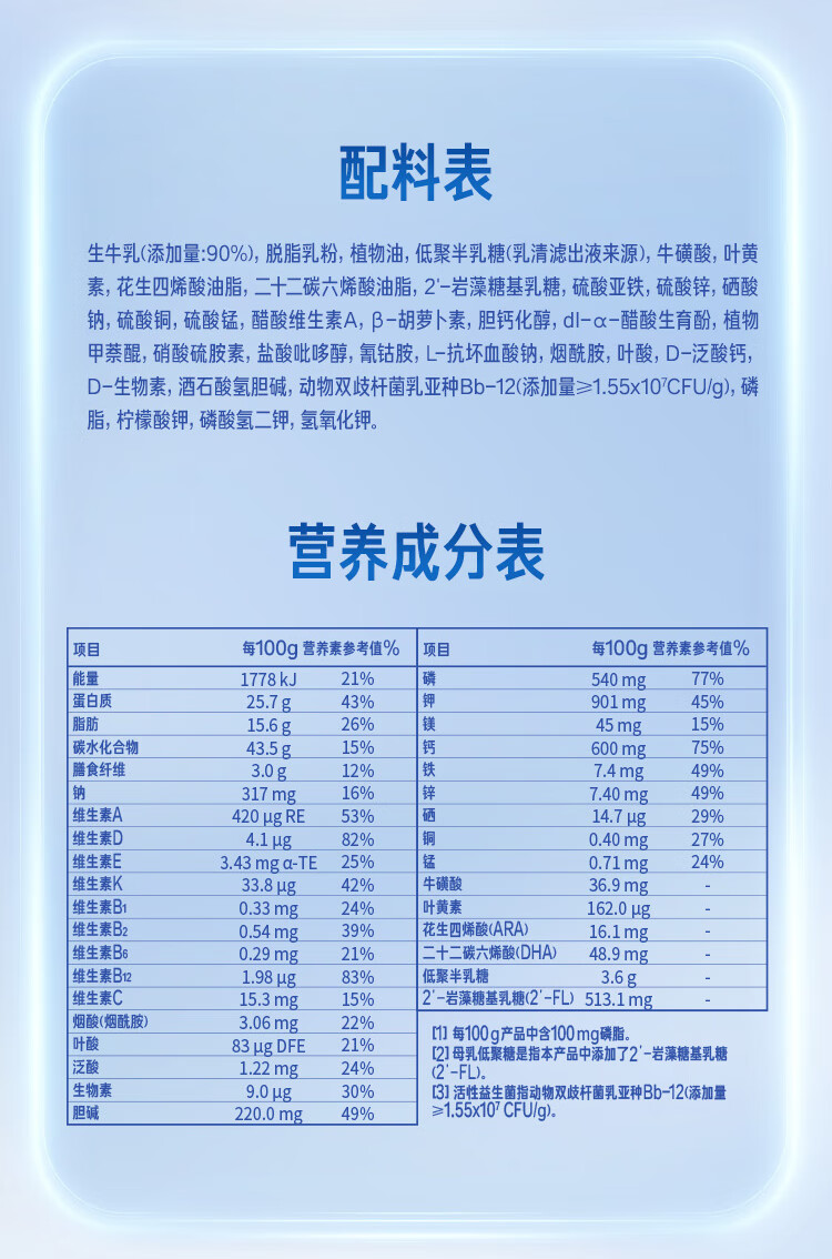 君乐宝(JUNLEBAO)有机优萃3段幼儿配方奶粉(12-36月龄)800g听装