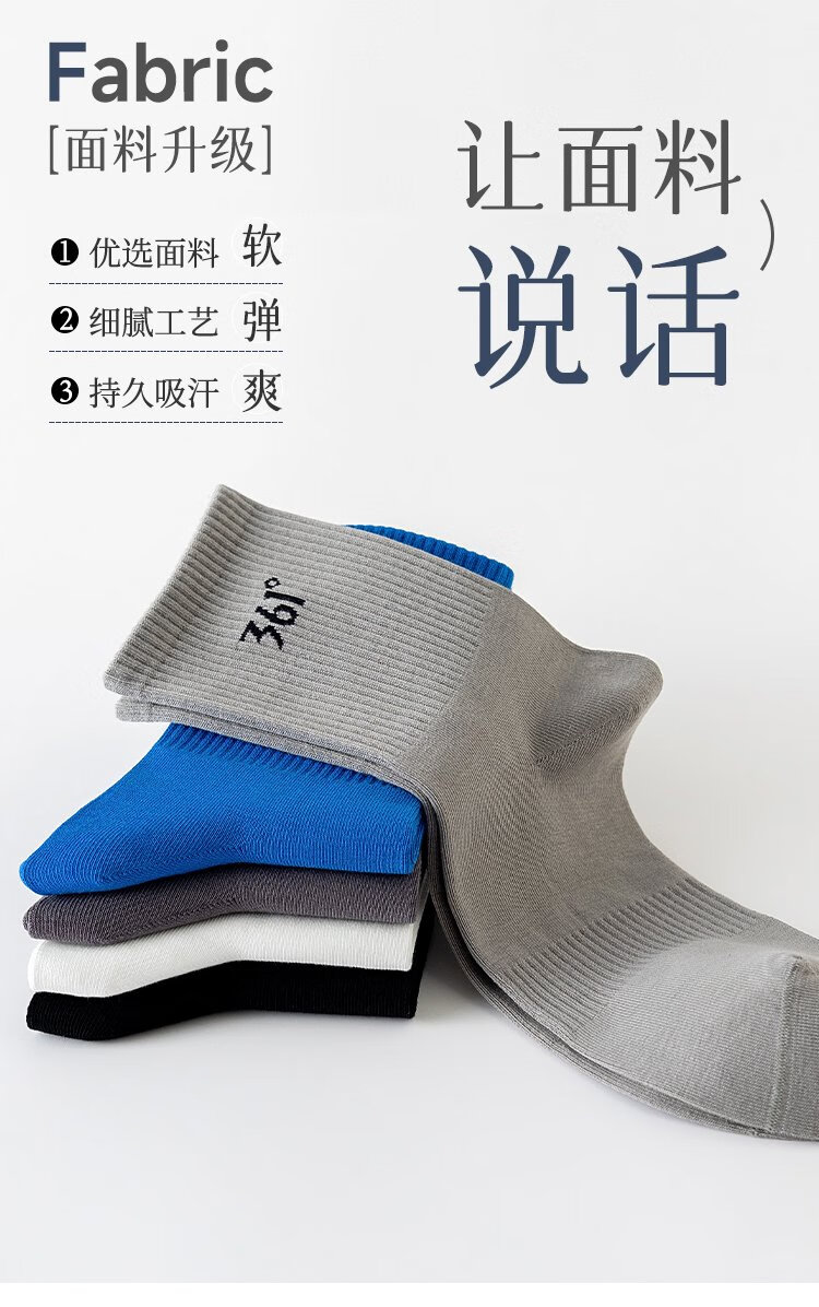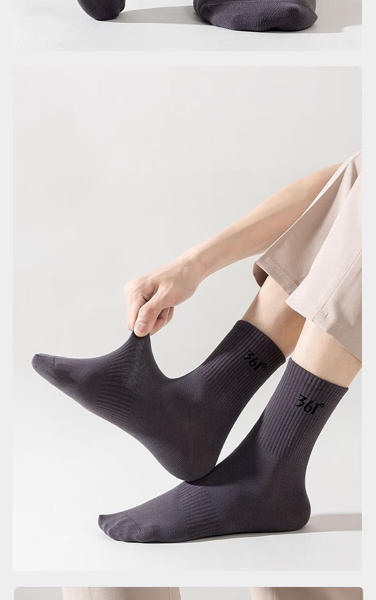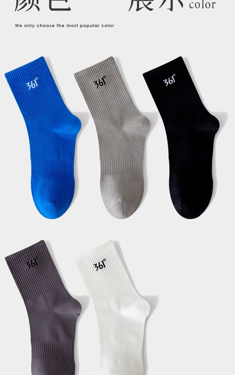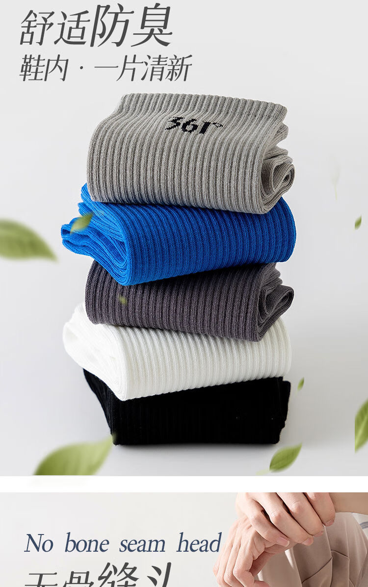 361°白袜子男士运动袜中筒袜学院风透气简约耐磨百搭抗菌长袜运动袜 白色3双装【耐穿耐磨】 均码