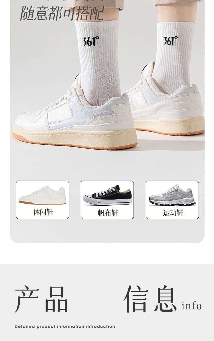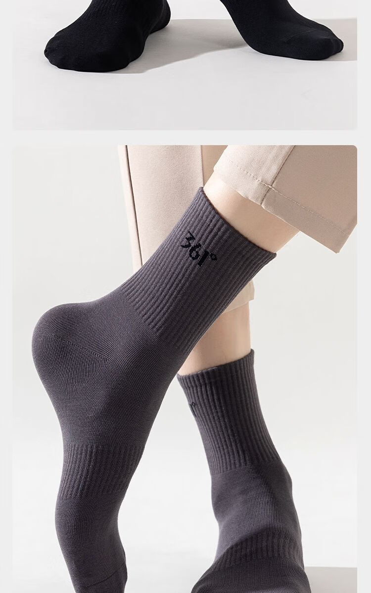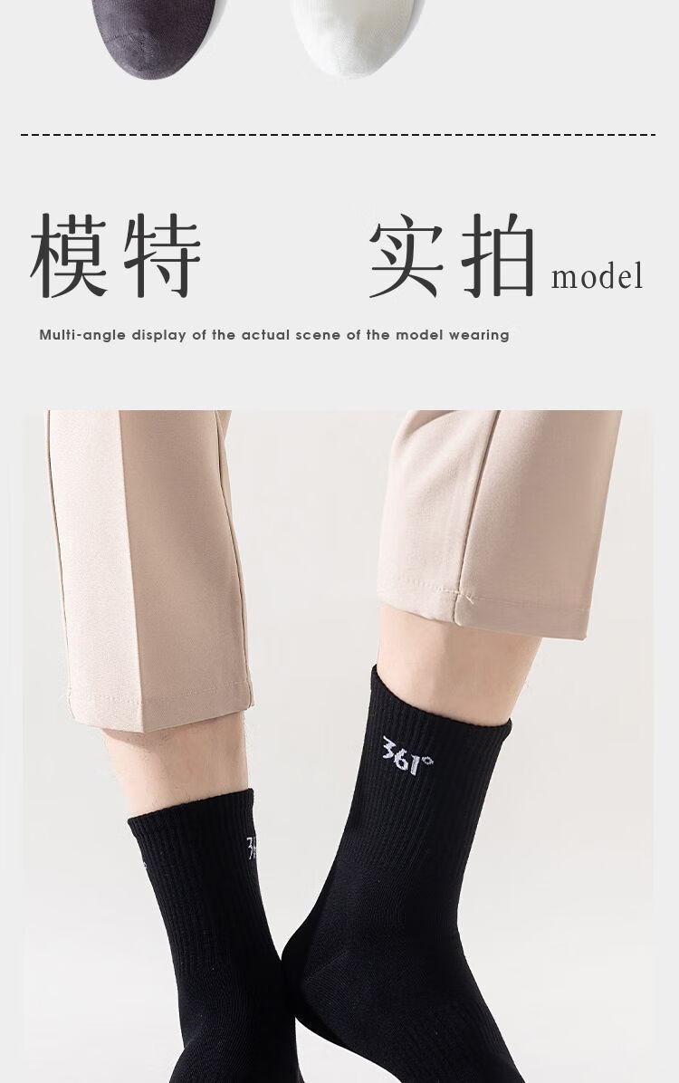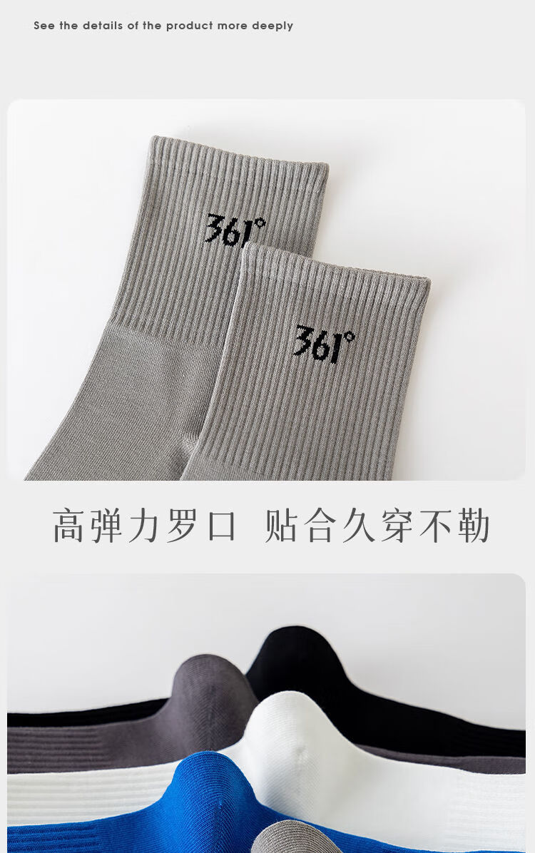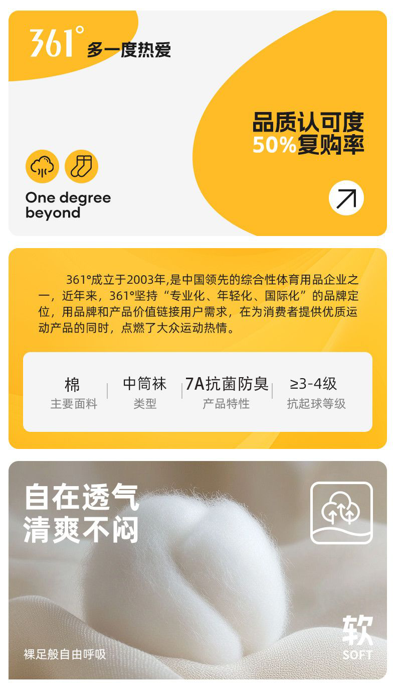 361°白袜子男士运动袜中筒袜学院风透气简约耐磨百搭抗菌长袜运动袜 白色3双装【耐穿耐磨】 均码