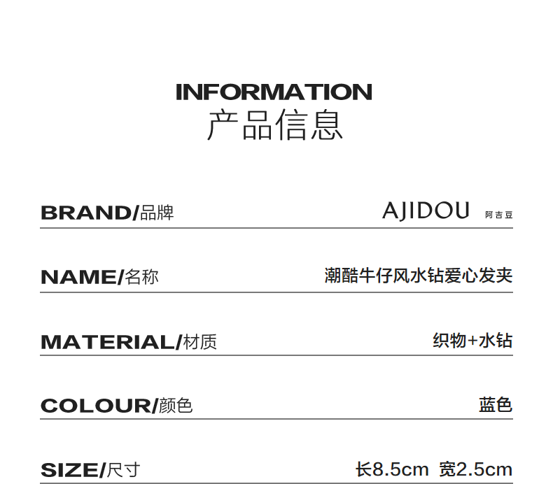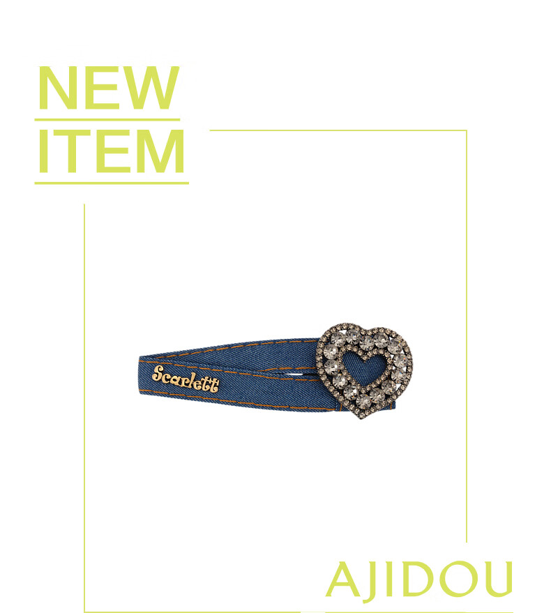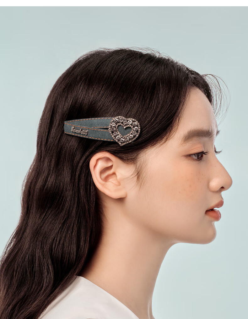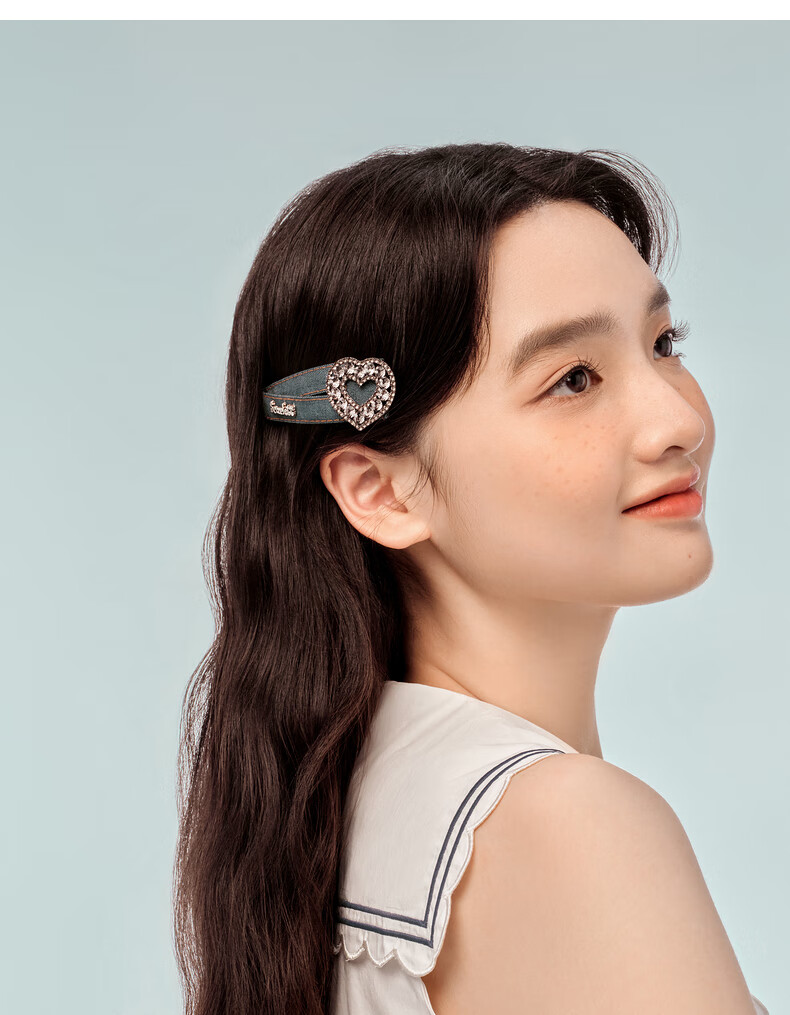 AJIDOU阿吉豆发夹潮酷牛仔放水钻爱心发夹生日礼物女送女友发饰侧边夹