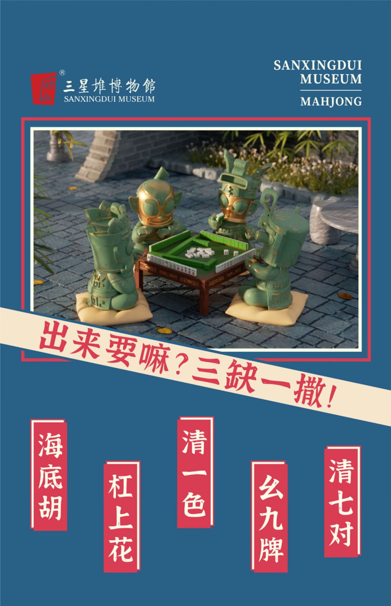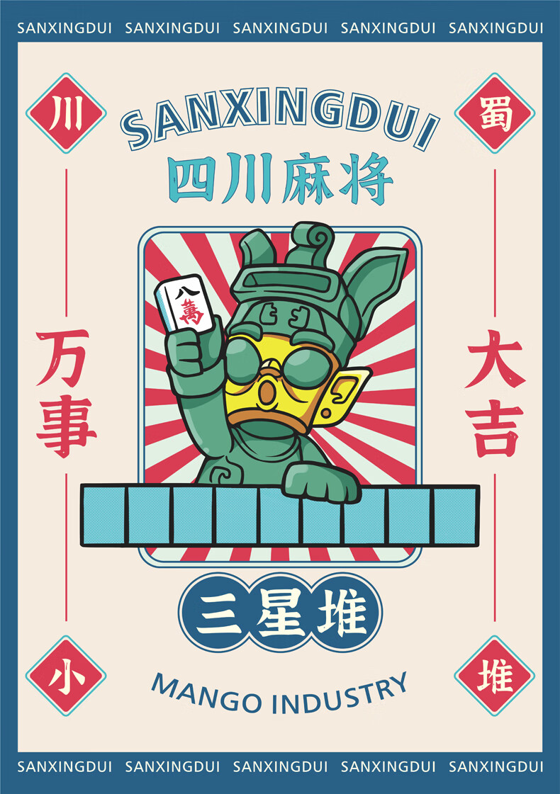 三星堆博物馆川蜀小堆麻将版万事大吉文创桌面摆件创意 客厅摆件 装饰摆件 玄关摆件男士生日礼物 母亲生日礼物 三星堆川蜀小堆麻将豪华版万事大吉