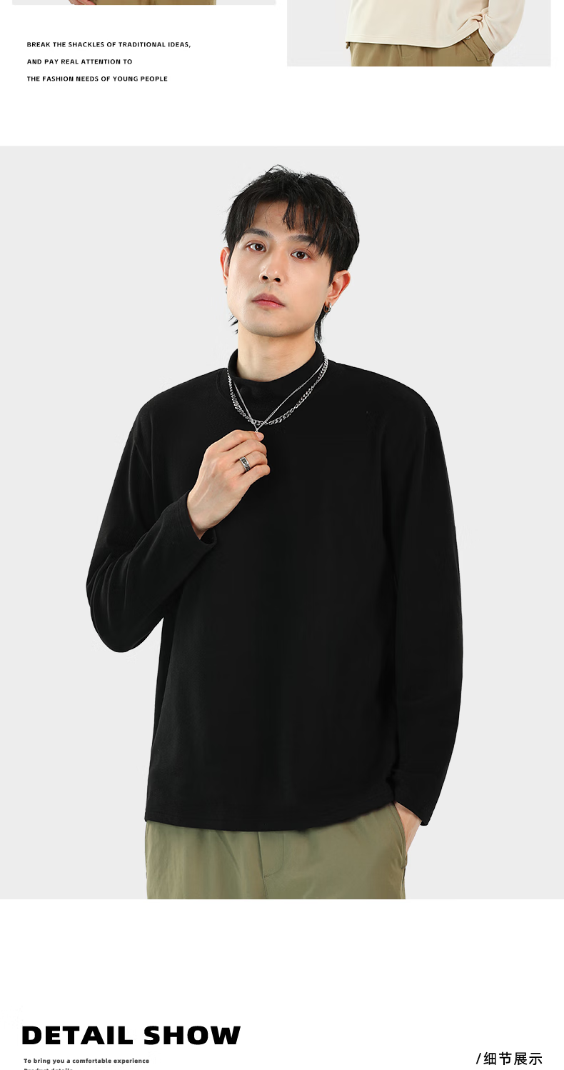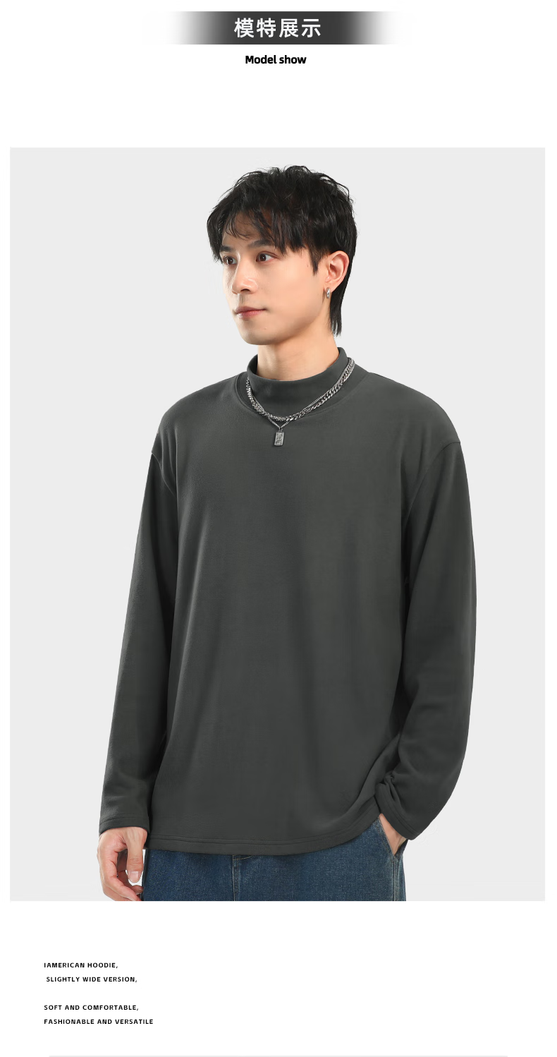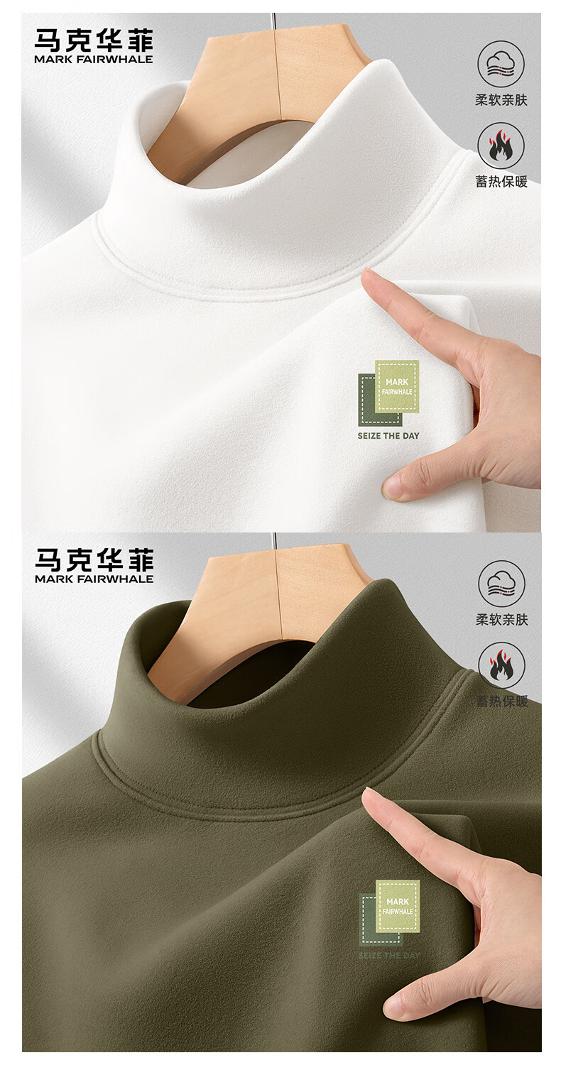 马克华菲男士内搭打底衫德绒2025新款秋冬半高领上衣男宽松保暖T恤男款