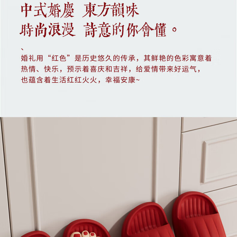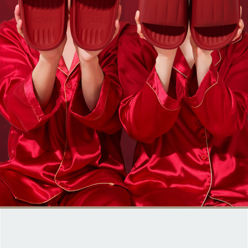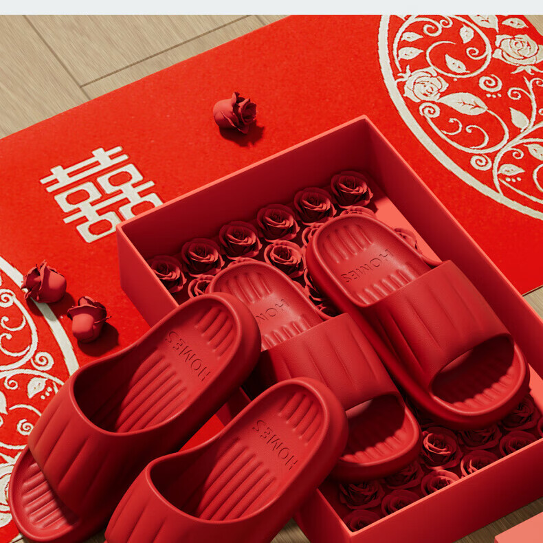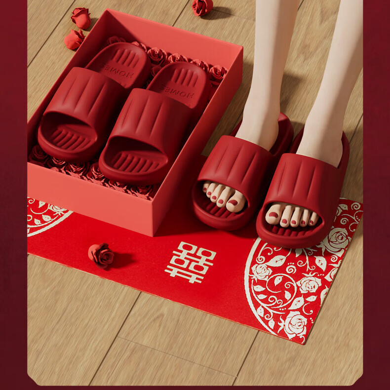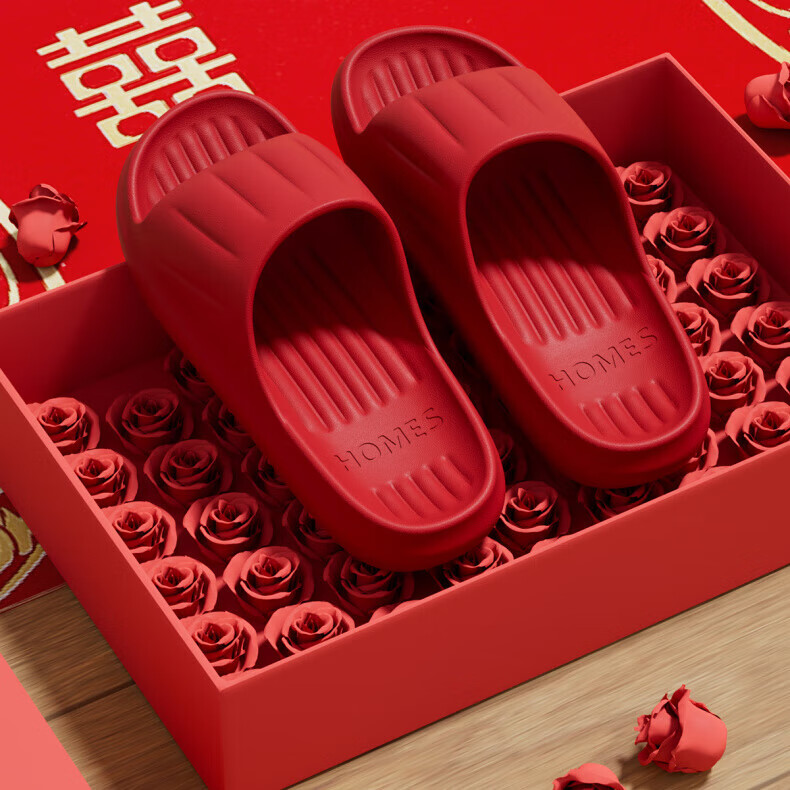 DEATKN德国买1送1红色拖鞋结婚一对夏季本命年新婚喜庆晨袍情侣新娘陪嫁 红色+红色【永结同心】 36-37 女+男44-45