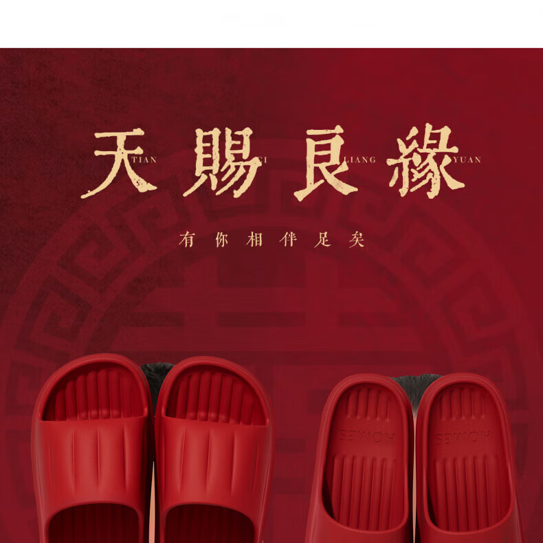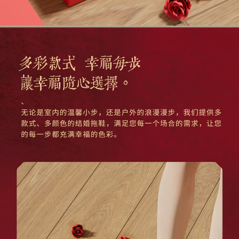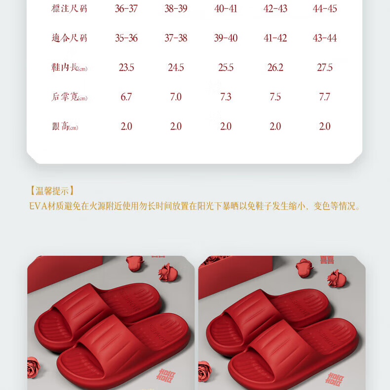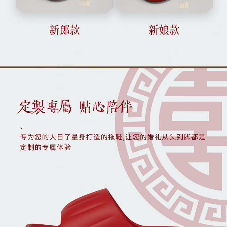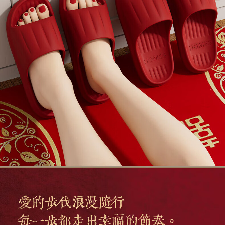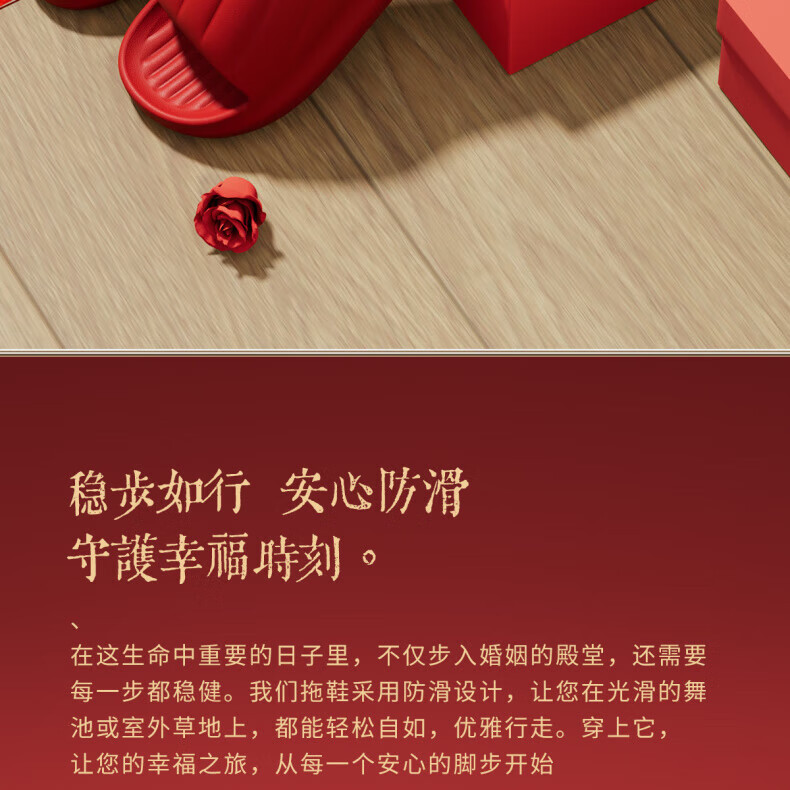 DEATKN德国买1送1红色拖鞋结婚一对夏季本命年新婚喜庆晨袍情侣新娘陪嫁 红色+红色【永结同心】 36-37 女+男44-45