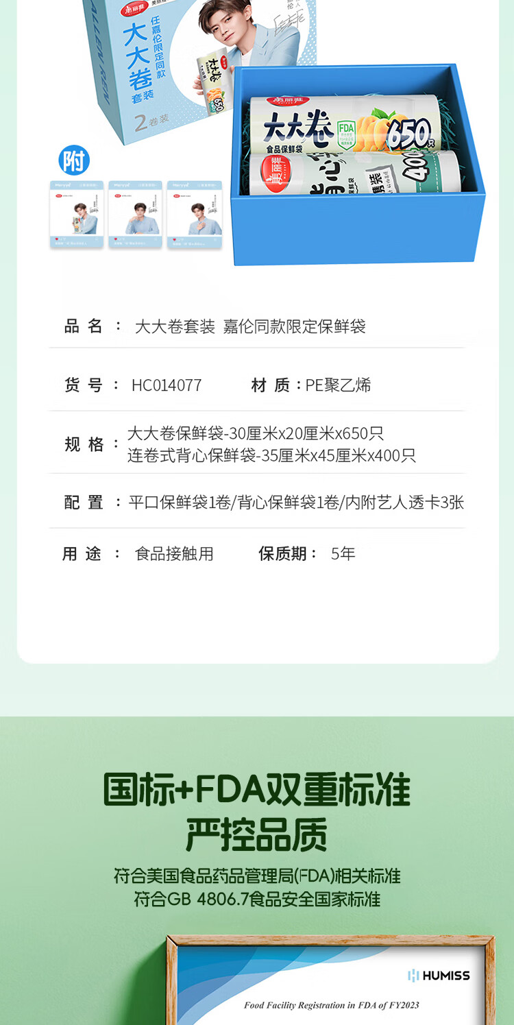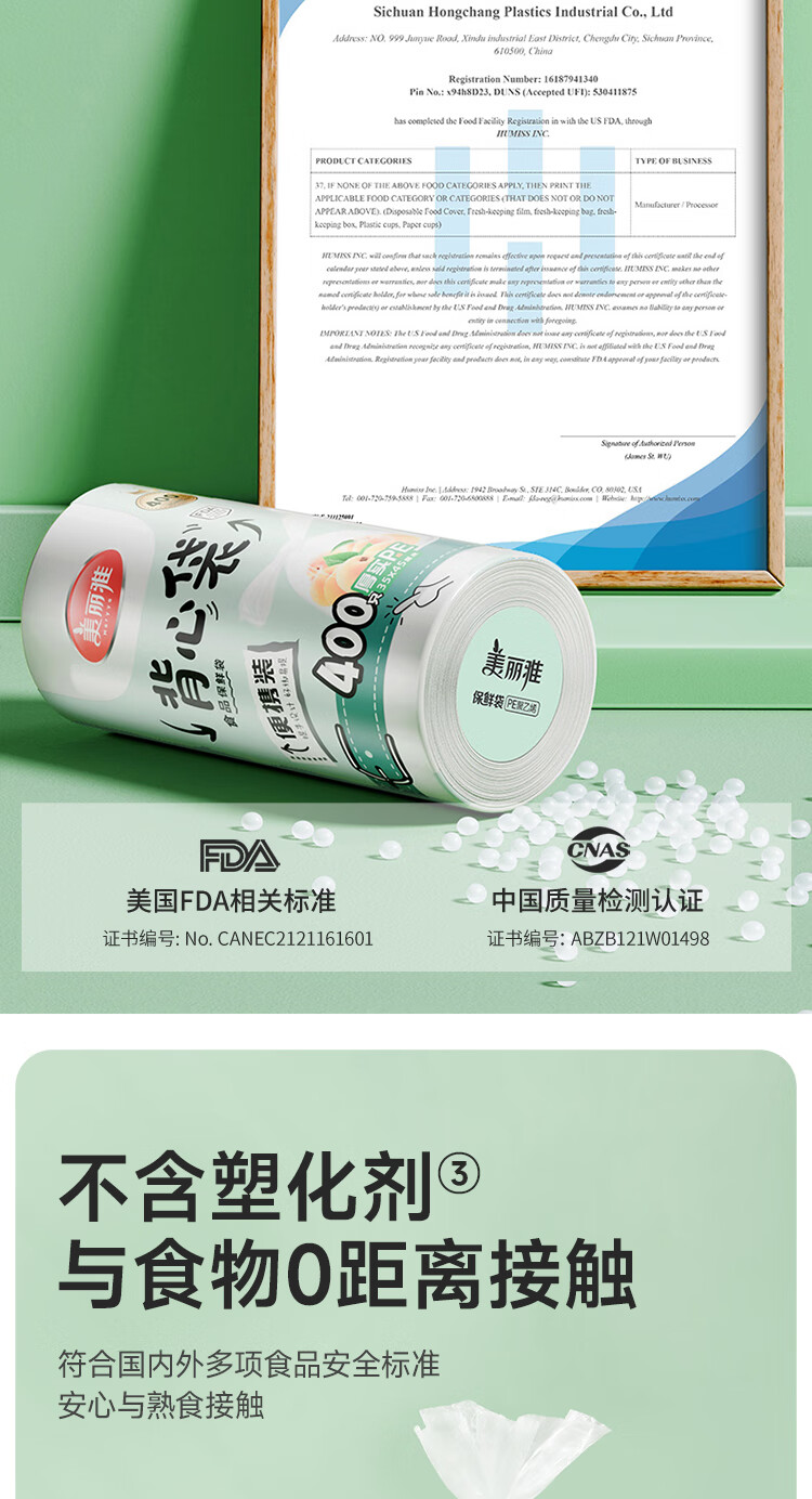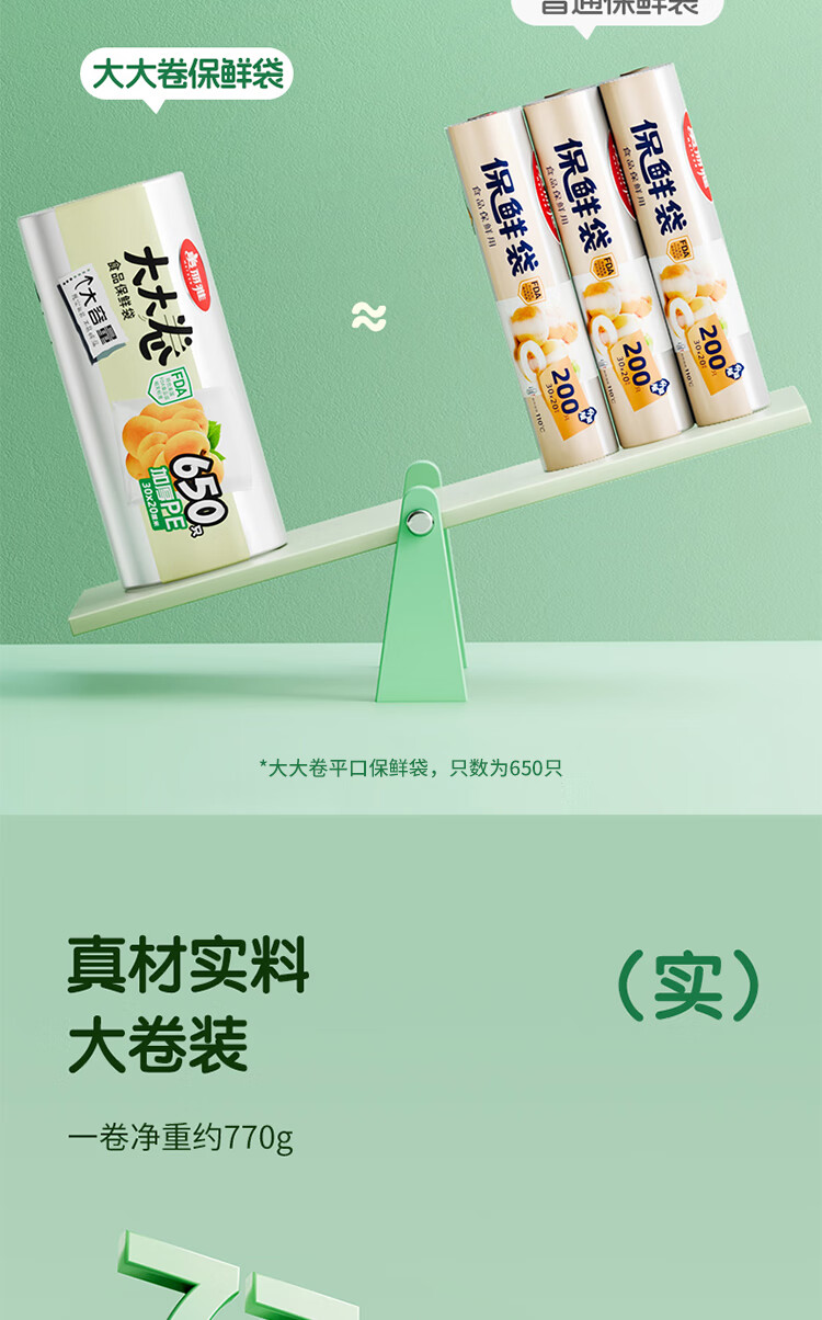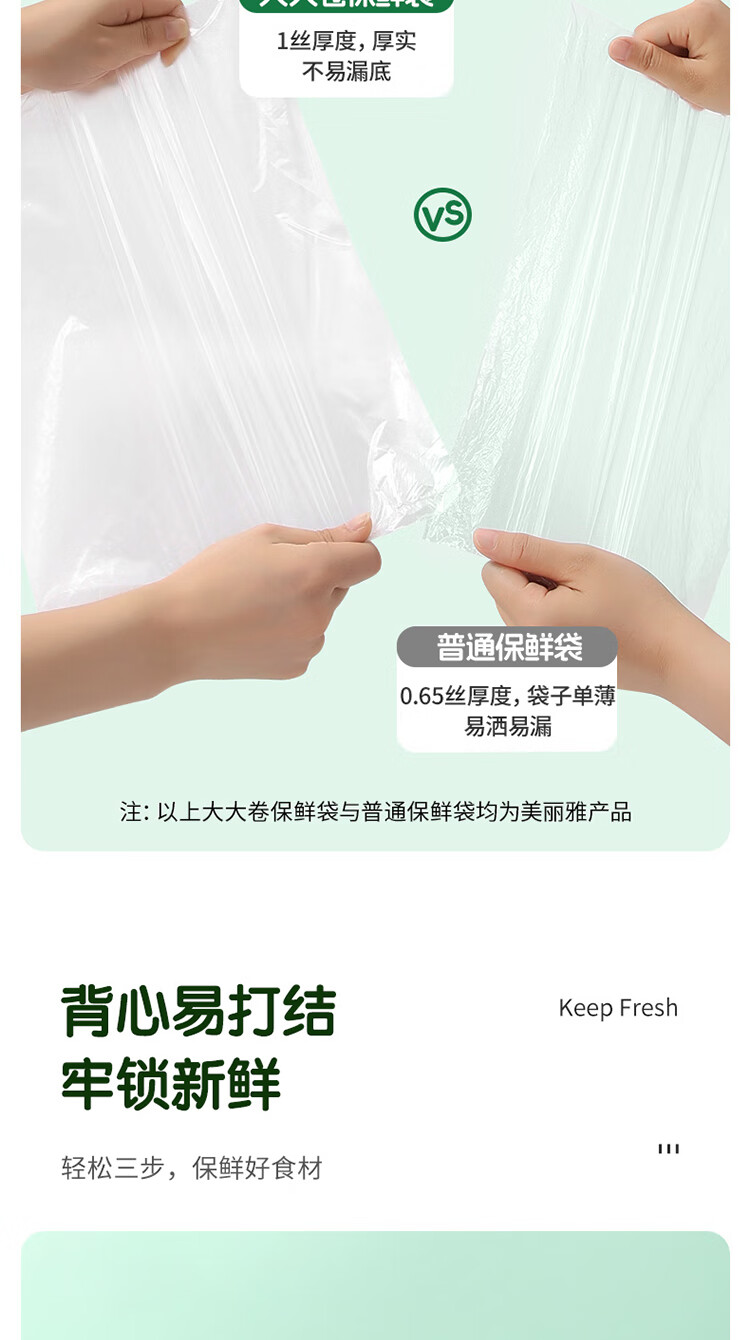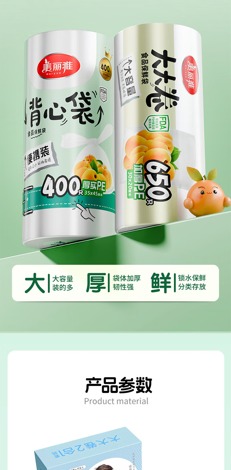 美丽雅(MARYYA)保鲜袋食品级易撕厚实厨房家用PE加厚冰箱分装 保鲜袋 1050只