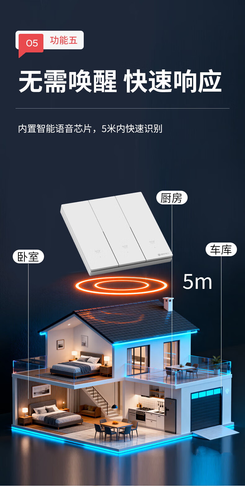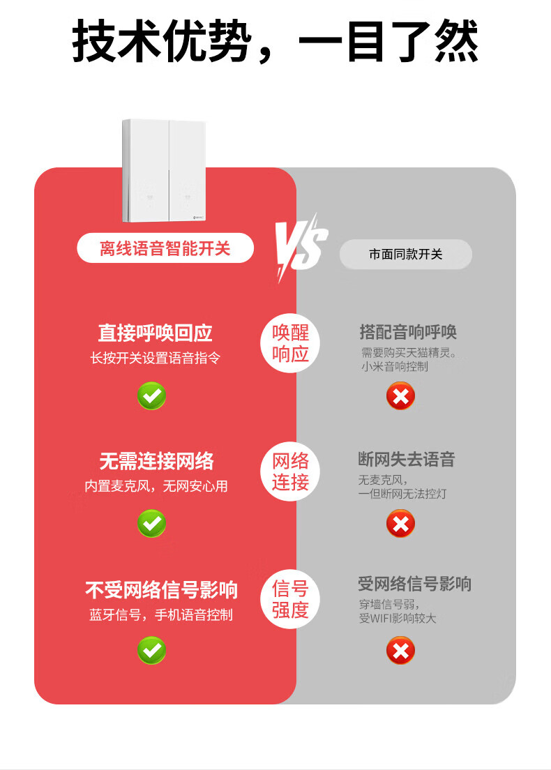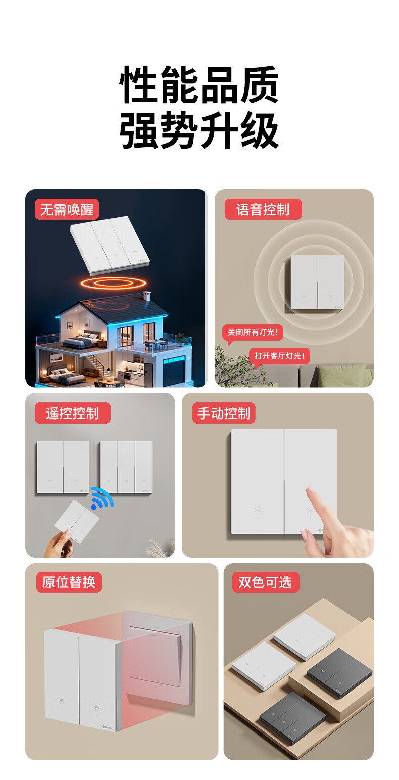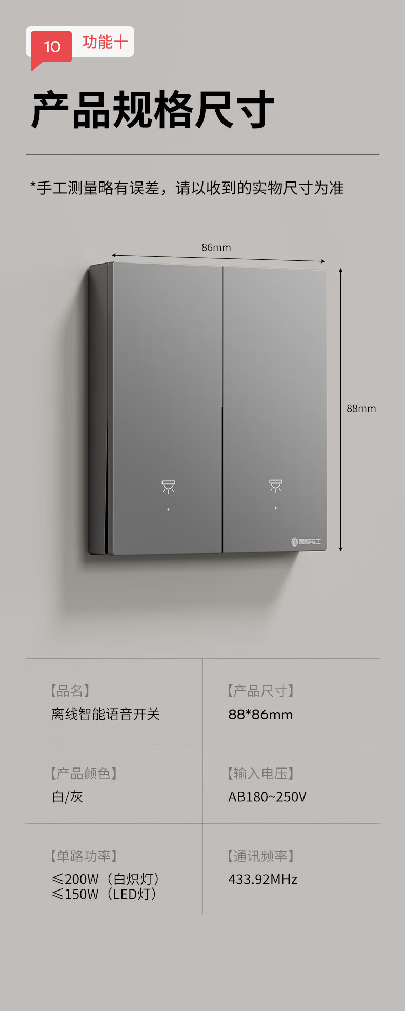 国际电工无线智能语音遥控开关双控免布线家用随意贴远程控制关灯神器220v 白色一开主机1个+一开随意贴1个【离线语音控制】