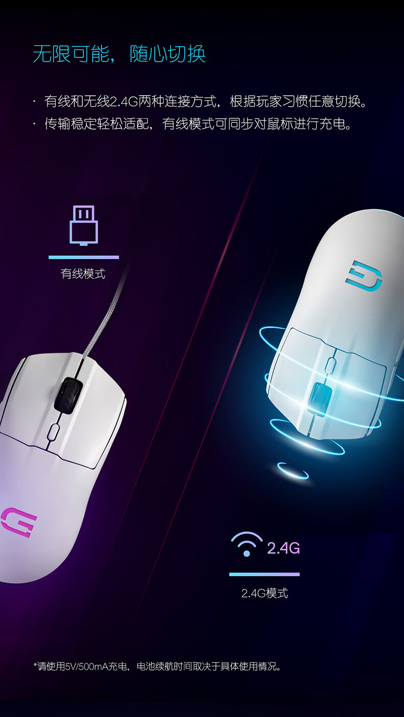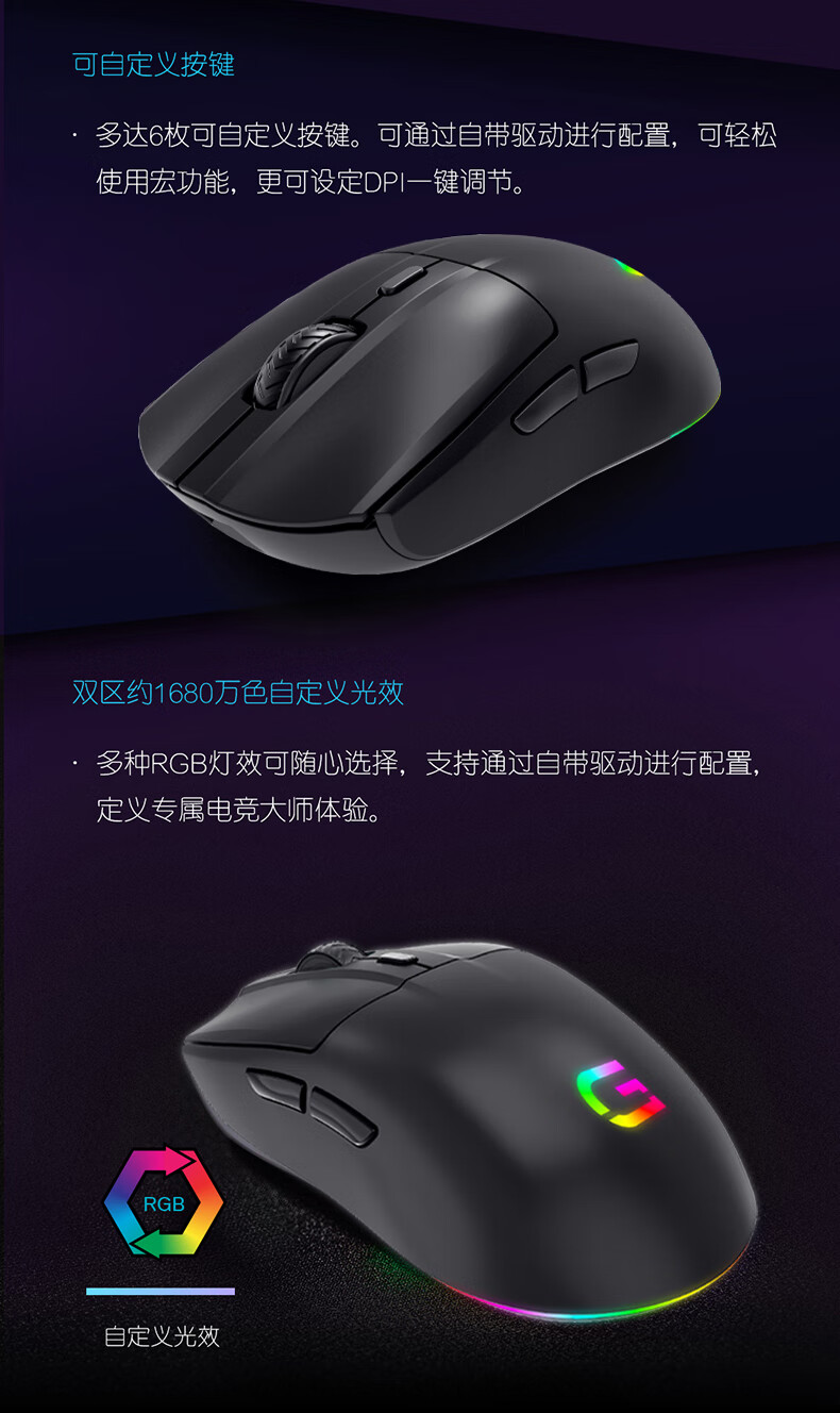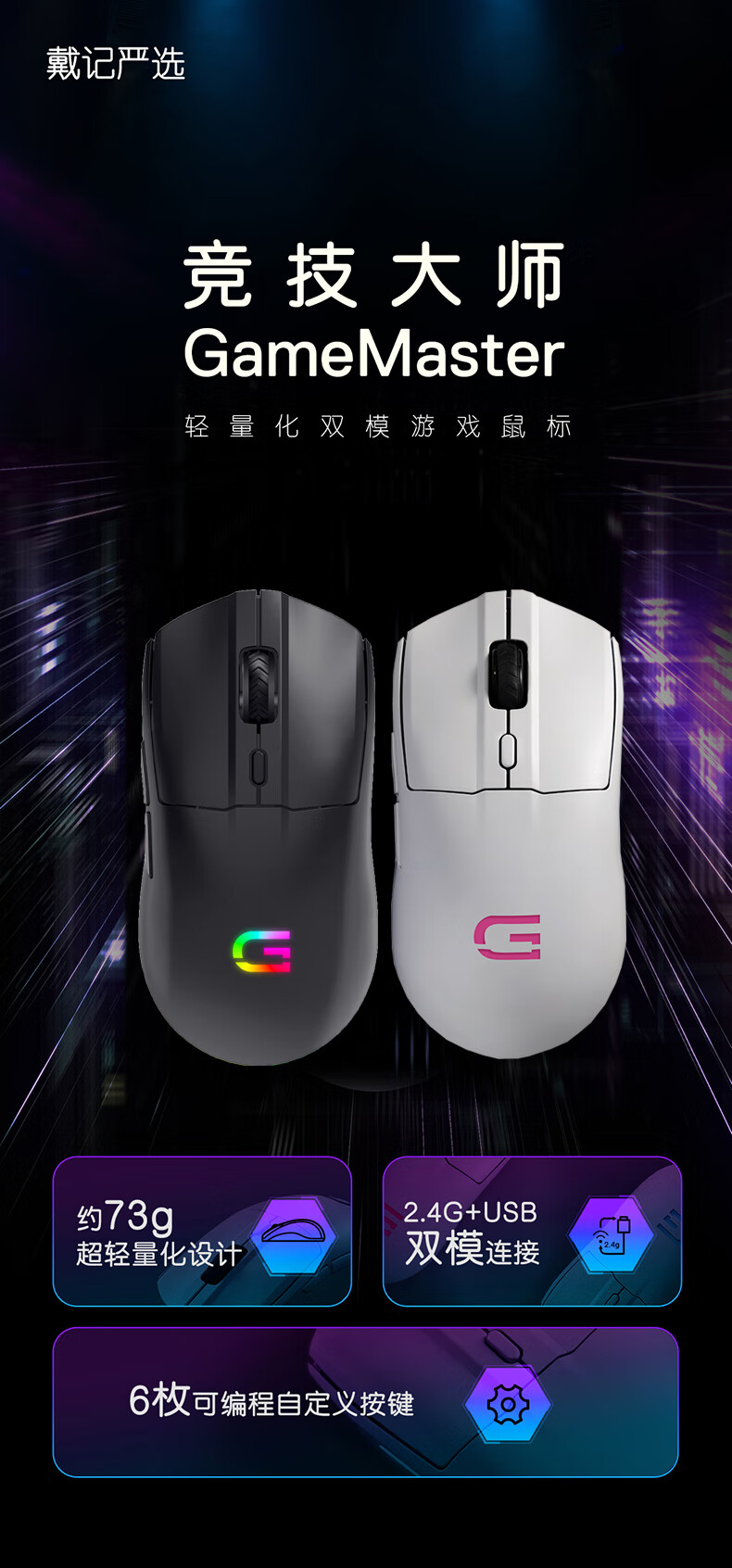戴尔(DELL)戴记严选 RGB电竞游戏有线无线鼠标 双模式2.4G RGB背光 电竞鼠标 双模游戏鼠标 GM3324D Pro可充电 无线有线双模 黑色