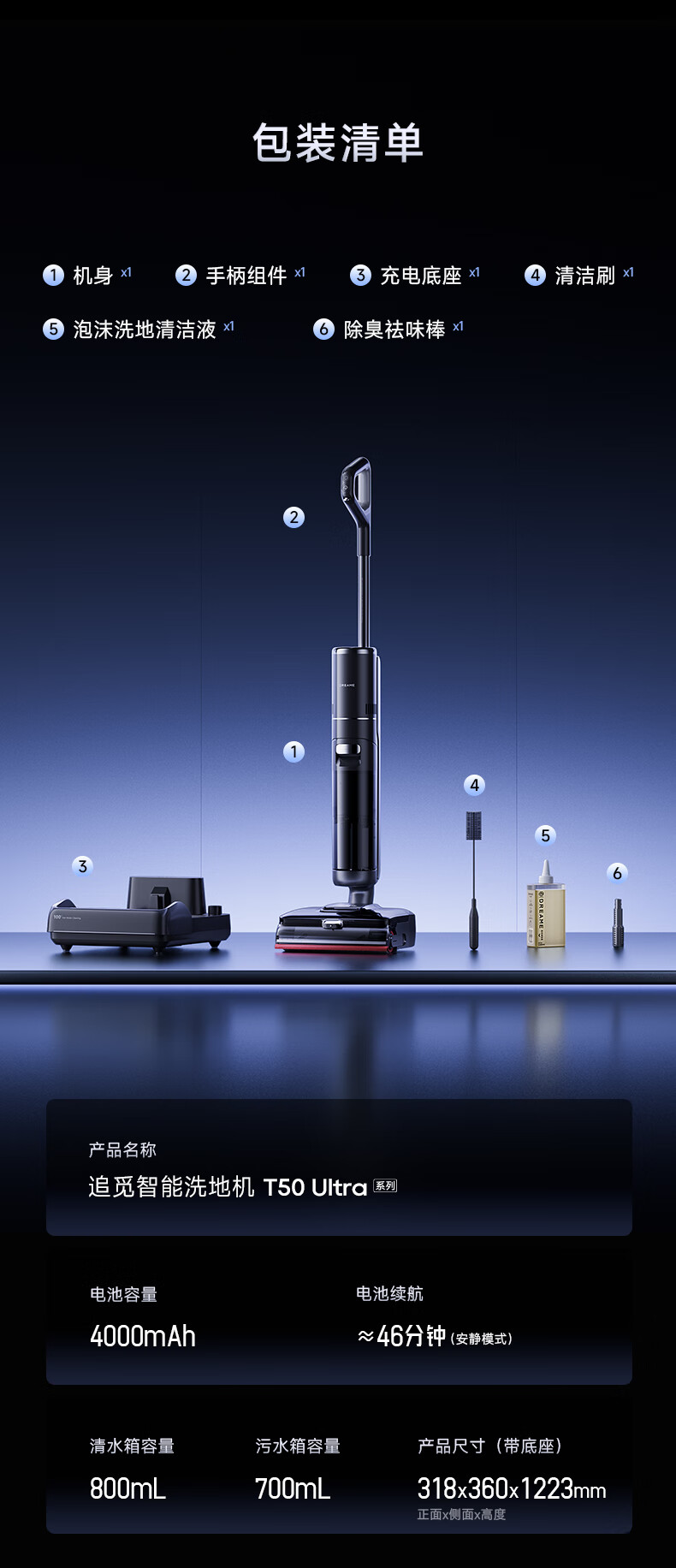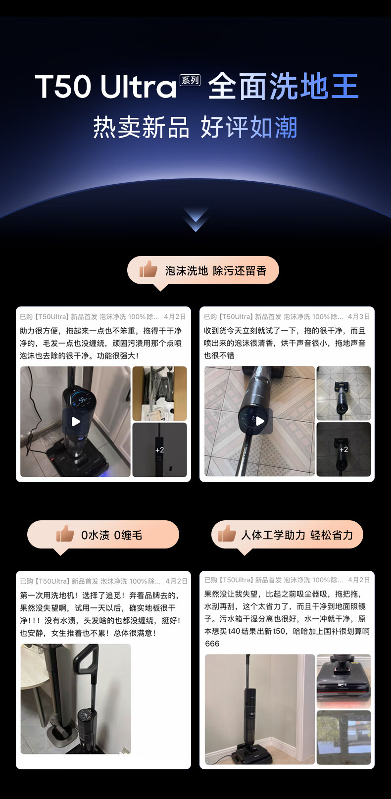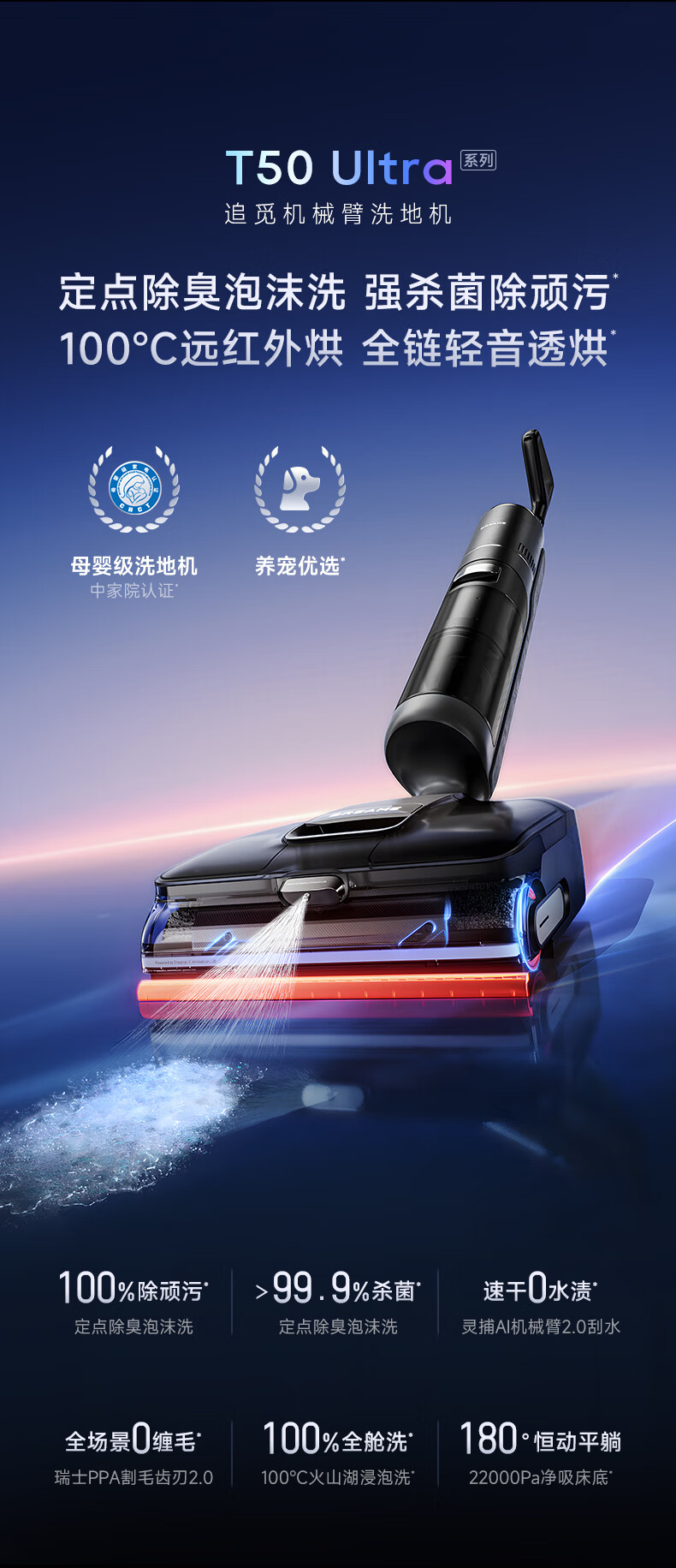 追觅洗地机T50 Ultra 机械臂泡沫洗平躺吸拖一体吸尘器自动清洗无线家用高温洗扫地洗地机器人国家补贴