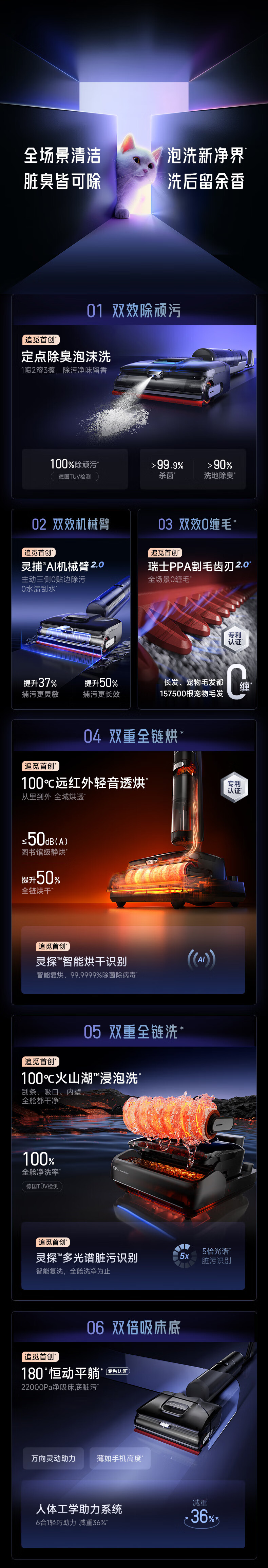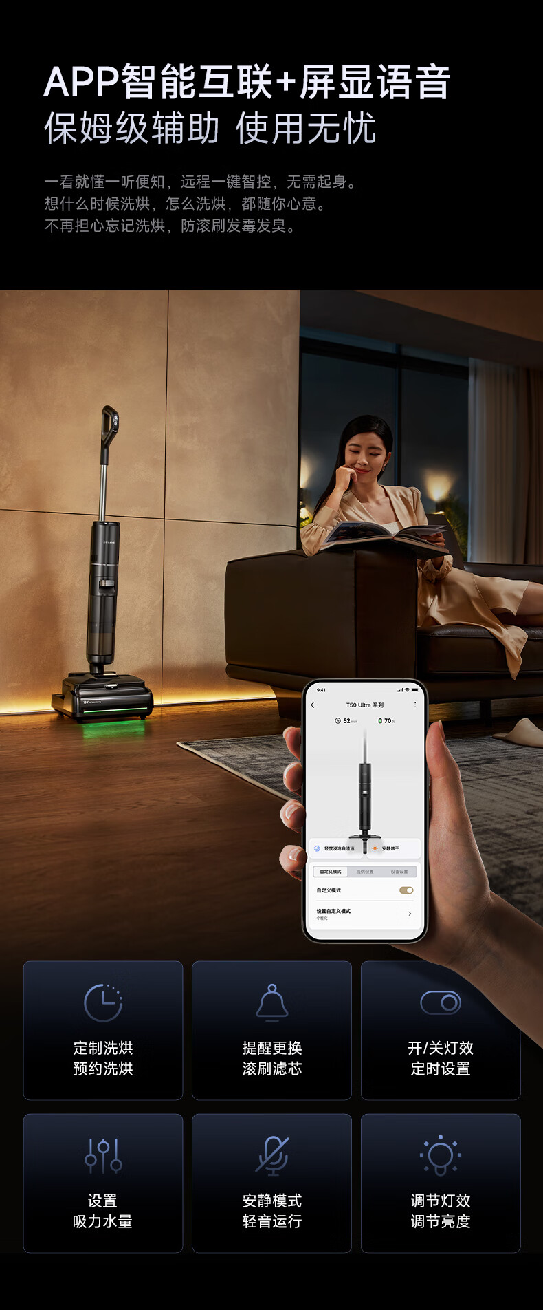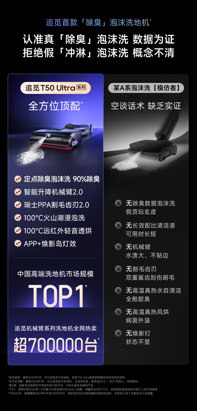 追觅洗地机T50 Ultra 机械臂泡沫洗平躺吸拖一体吸尘器自动清洗无线家用高温洗扫地洗地机器人国家补贴