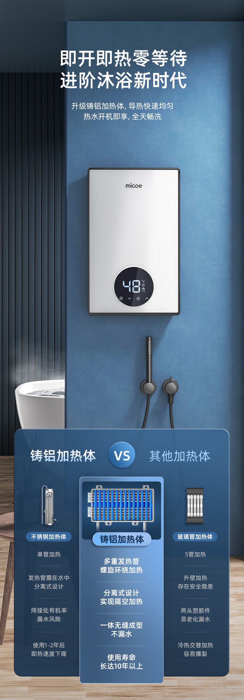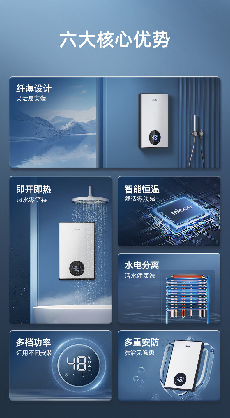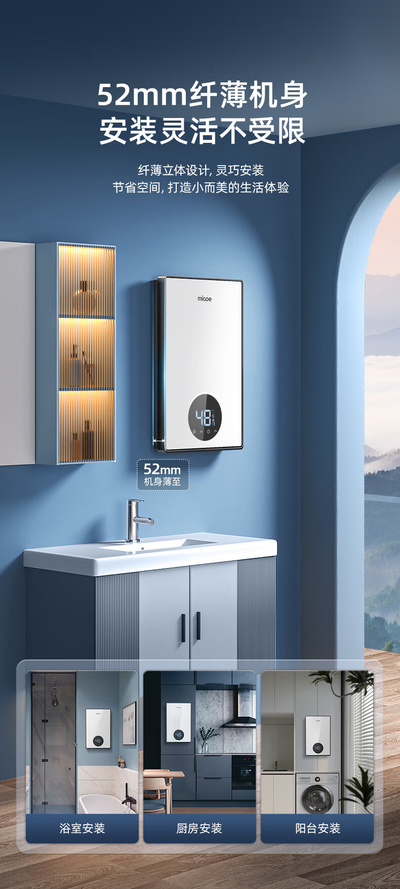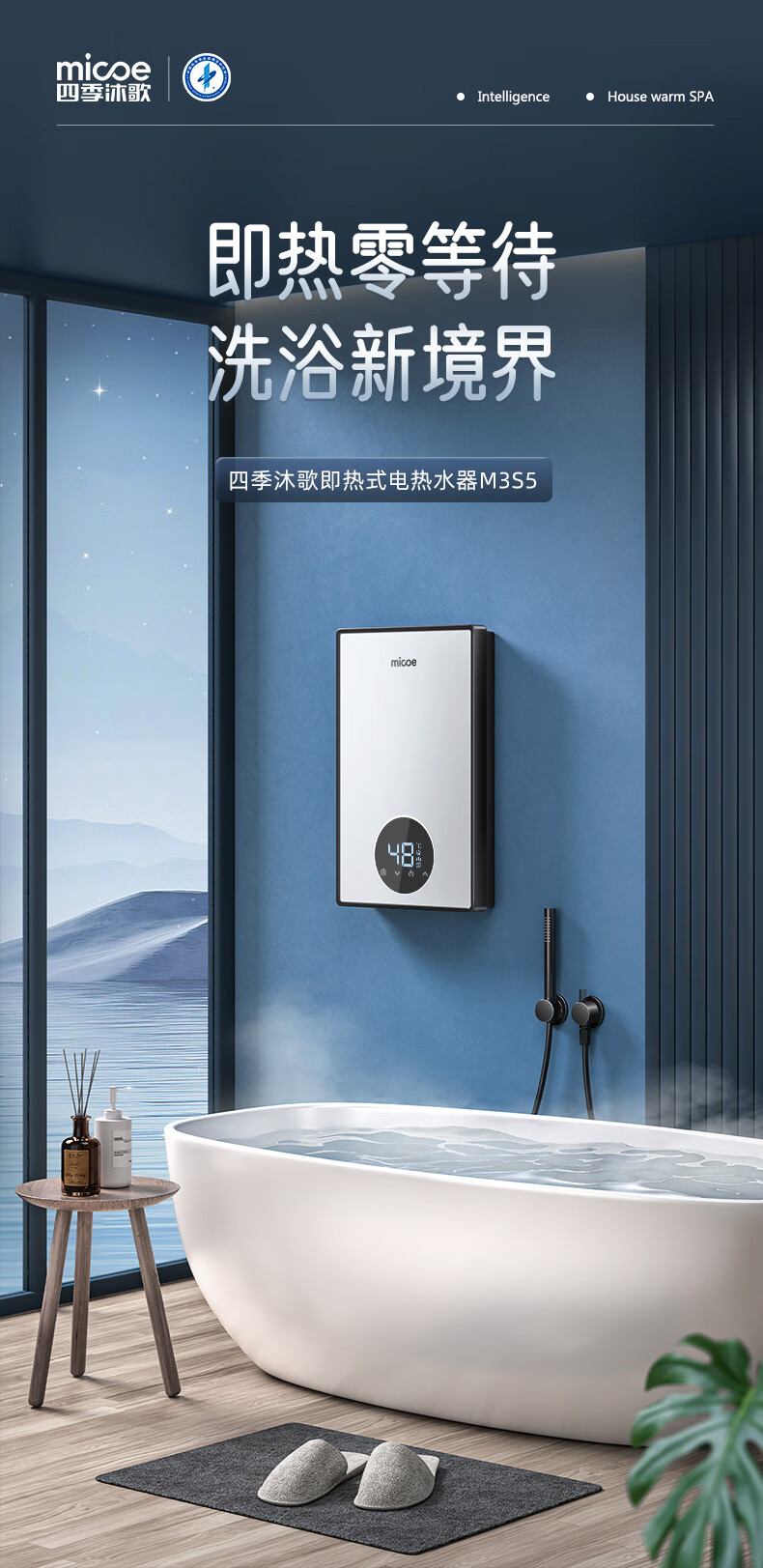 四季沐歌(MICOE)即热式电热水器8500W 速热多档变频智能恒温 超薄机身小型热水器 DSK-H85-M3S5 以旧换新