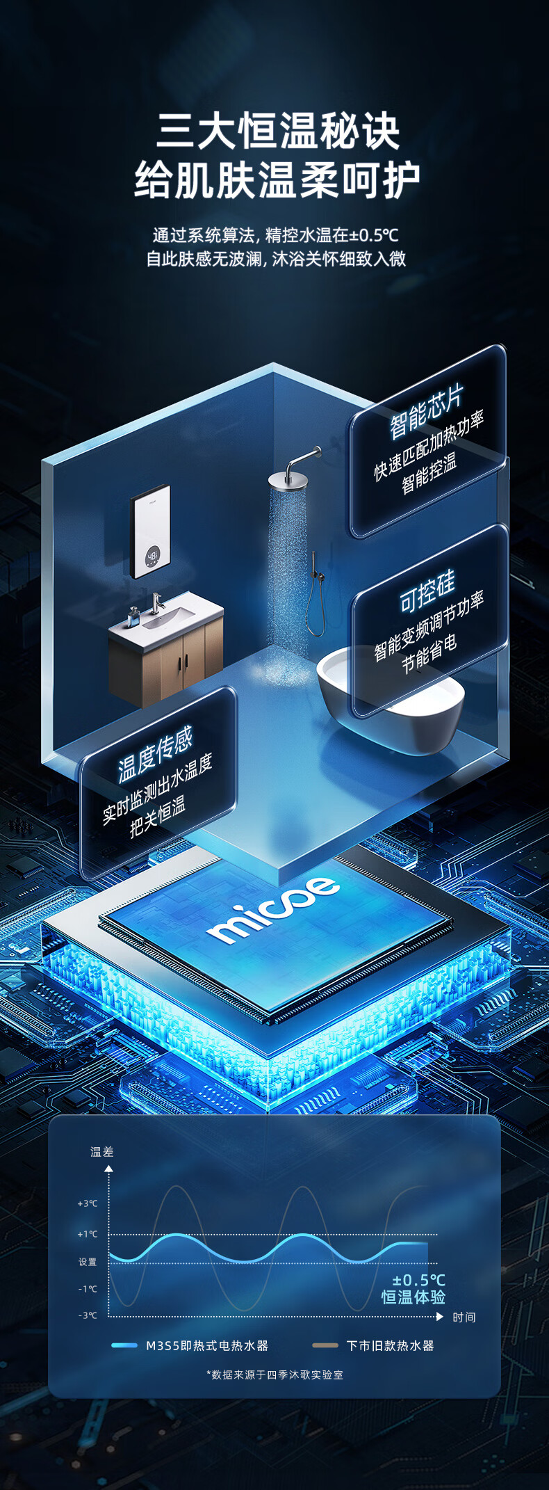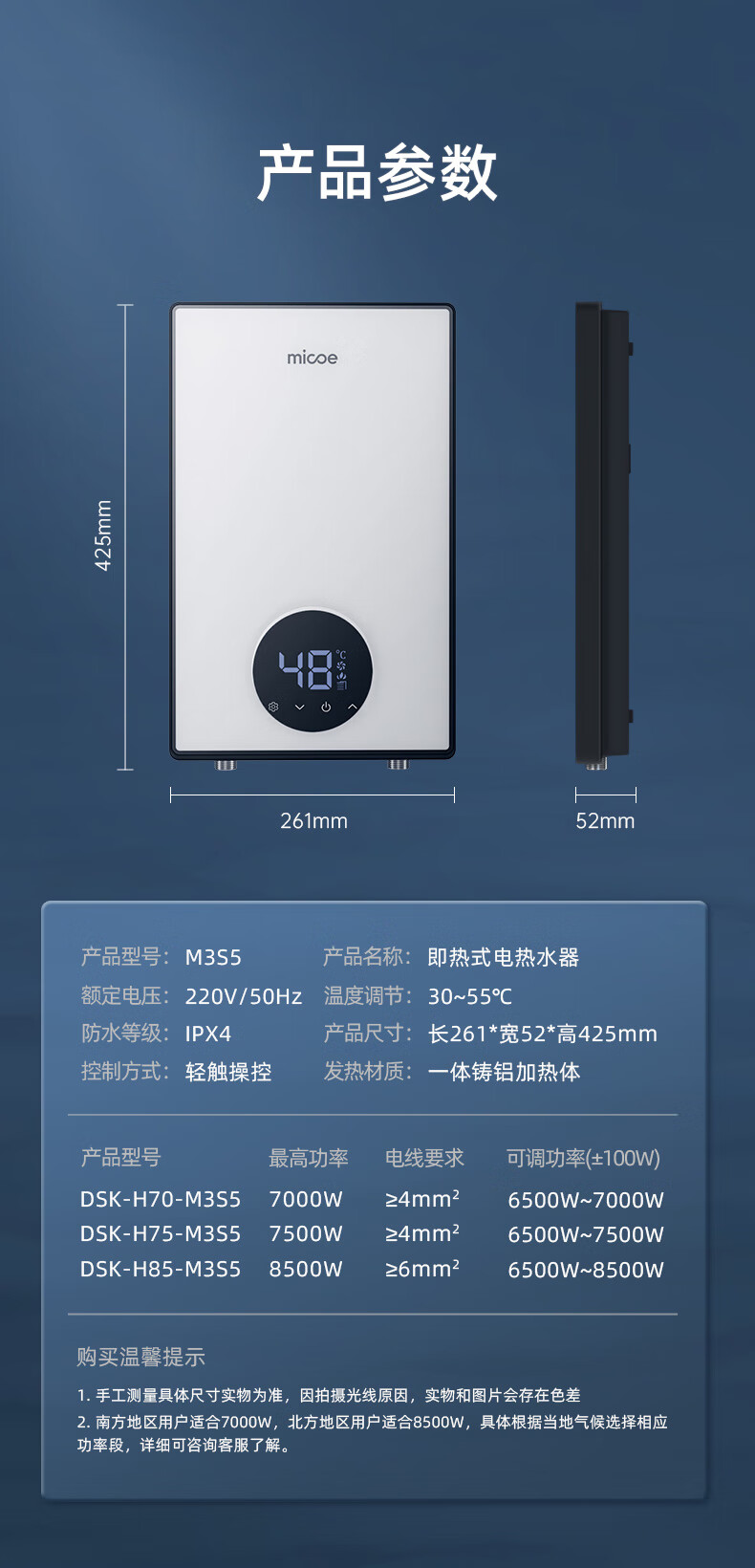 四季沐歌(MICOE)即热式电热水器国家补贴15% 7000W速热变频智能恒温超薄机身小型热水器 DSK-H70-M3S5以旧换新