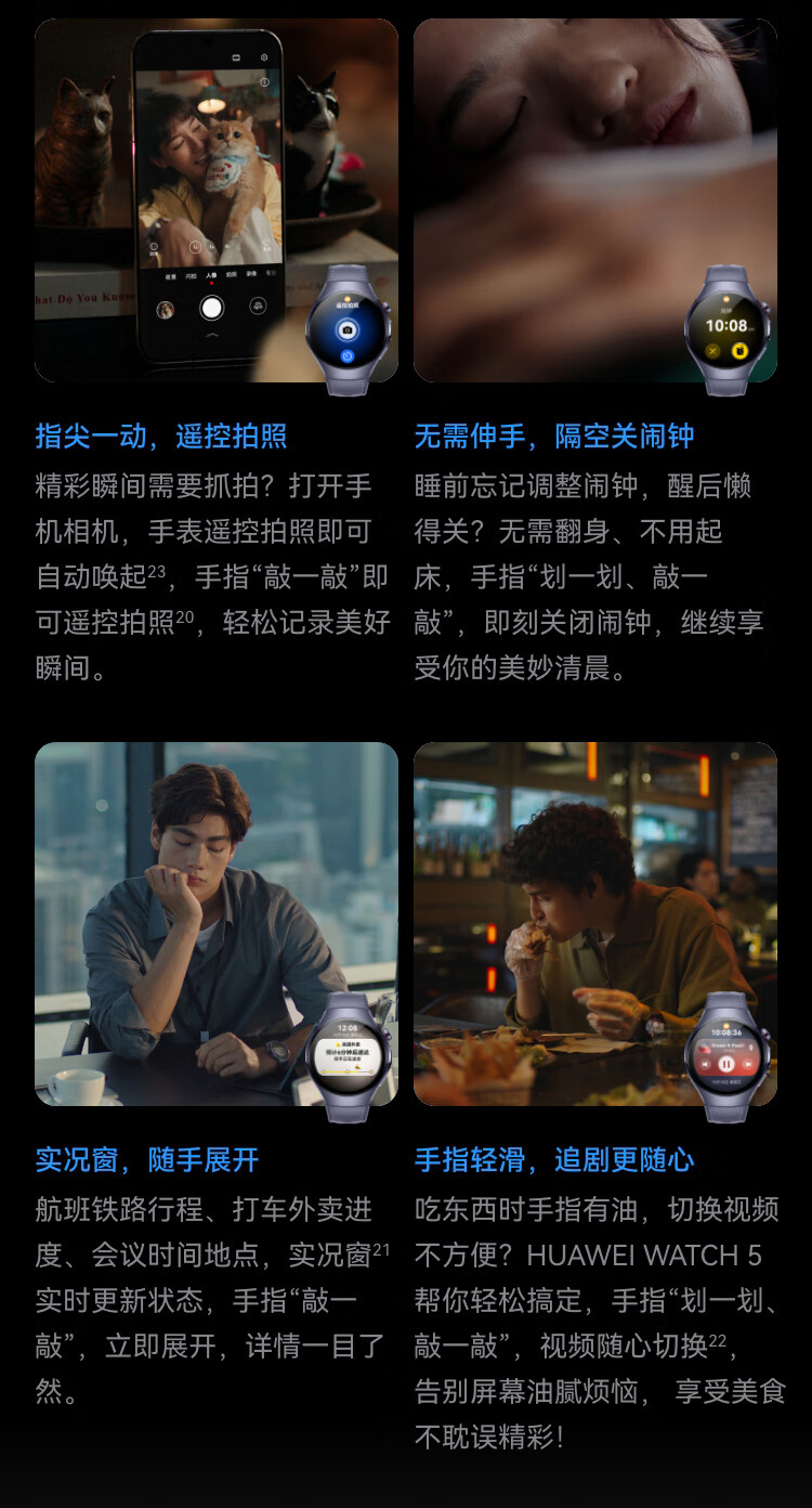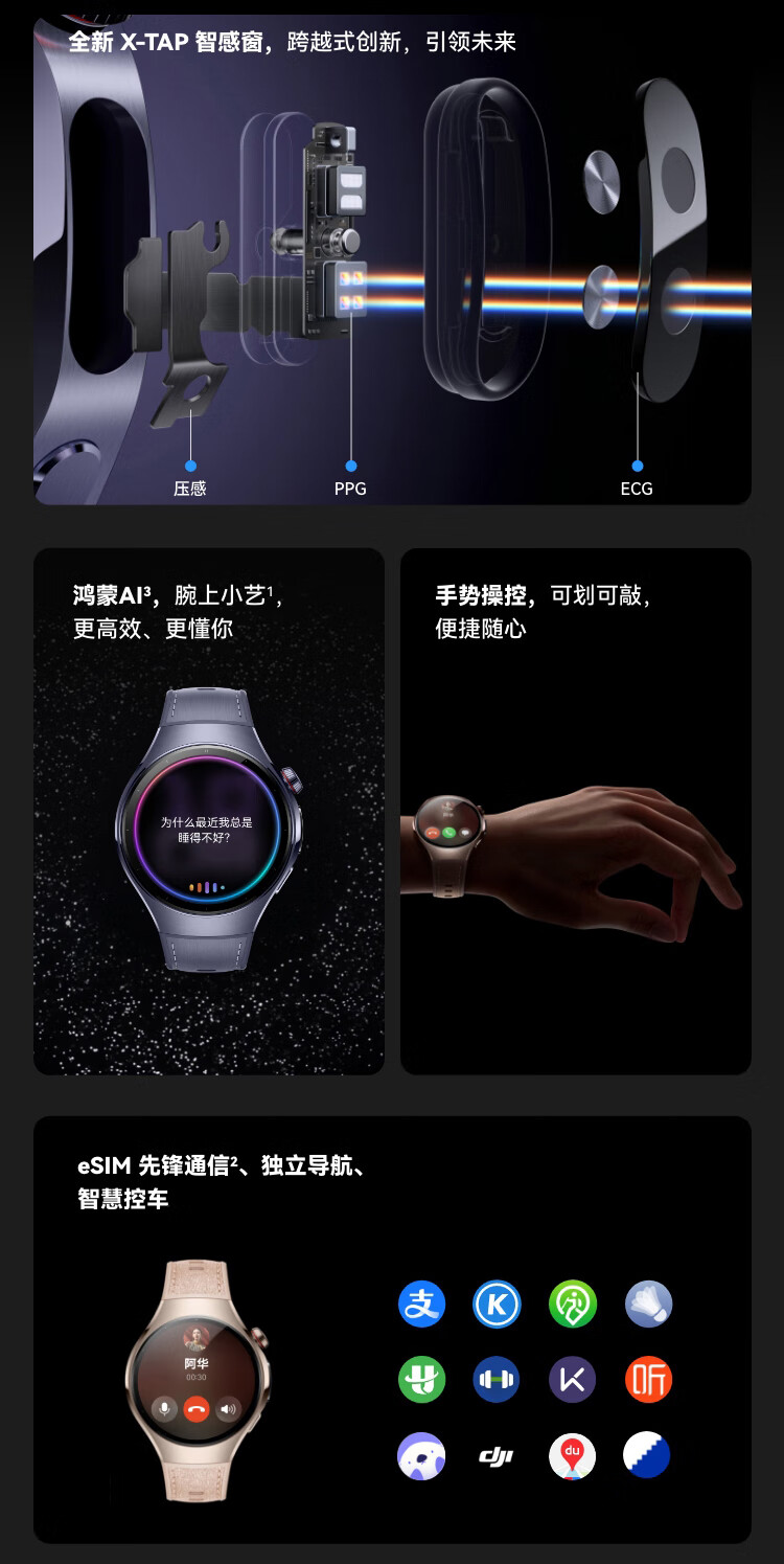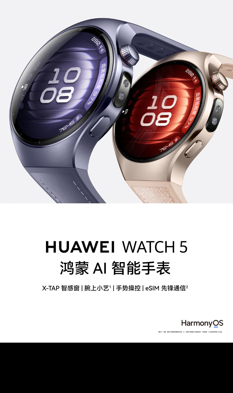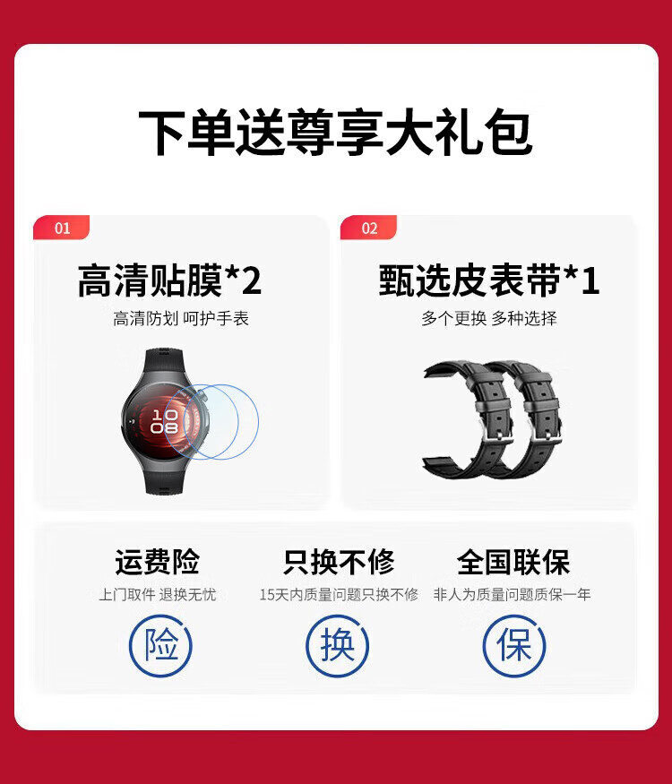 华为(HUAWEI)手表WATCH 5【咨询享优惠】智能运动健康eSIM独立通话血氧呼吸体温监测风险评估男女士朋友4Pro 42mm幻月黑丨黑色氟橡胶表带【皮表带+贴膜】