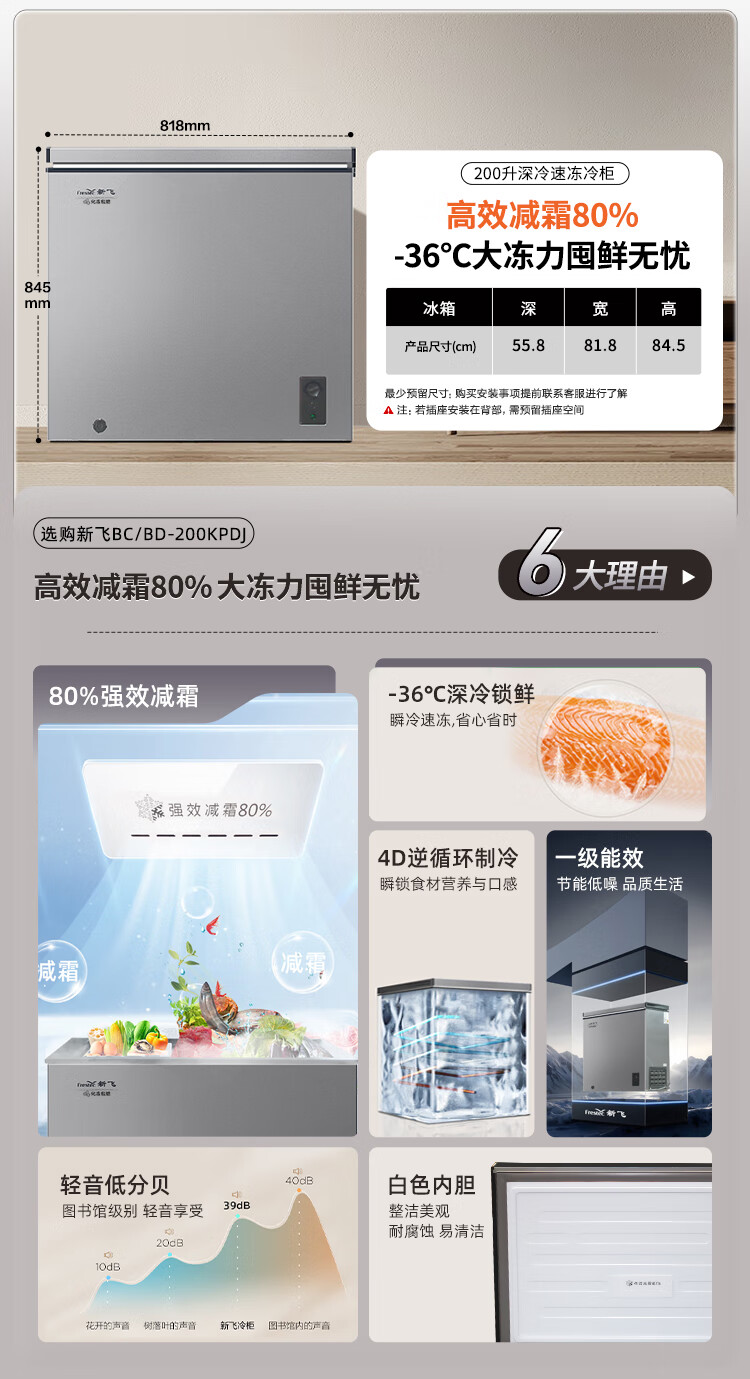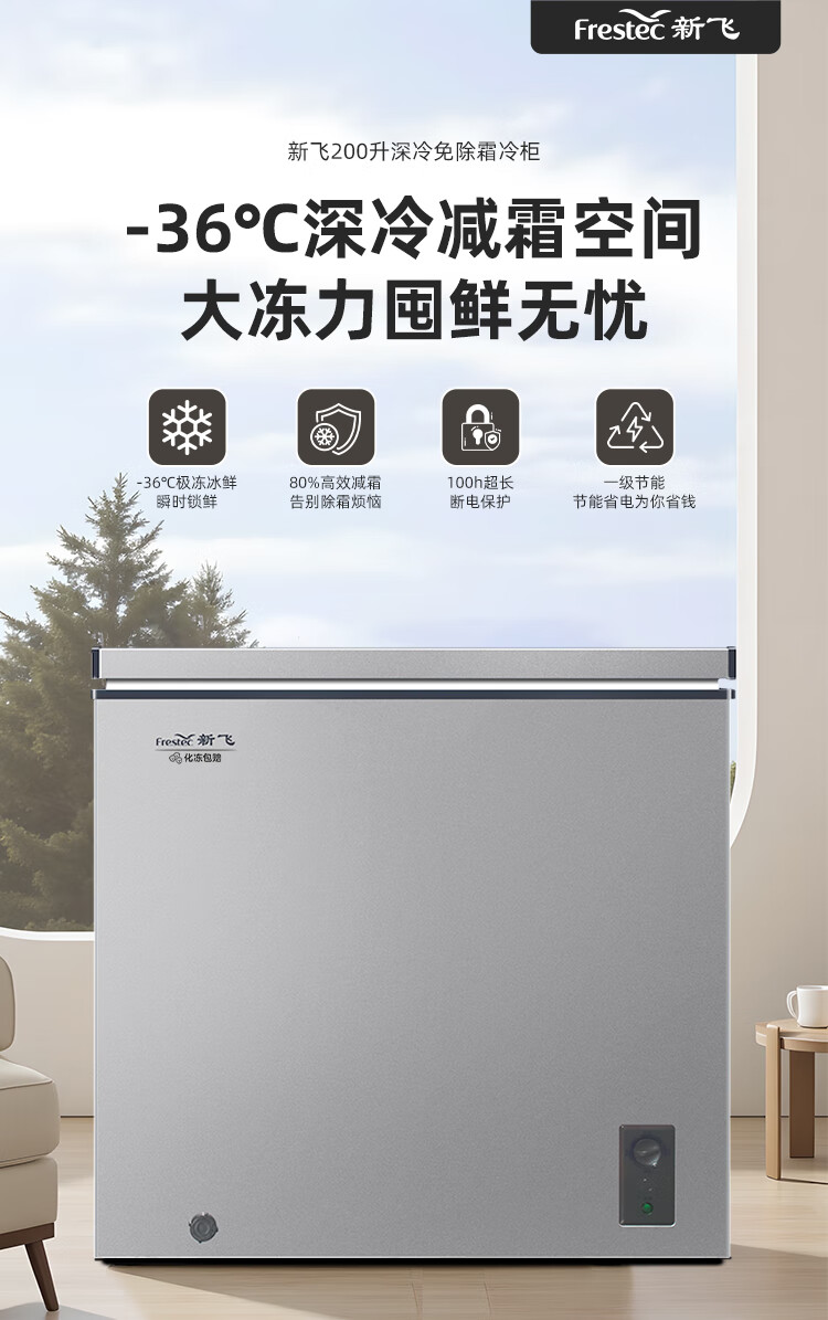 新飞(Frestec)200L全空间减霜-36°深冷速冻家用一级节能冷柜冷藏冷冻转化冰柜BC/BD-200KPDJ