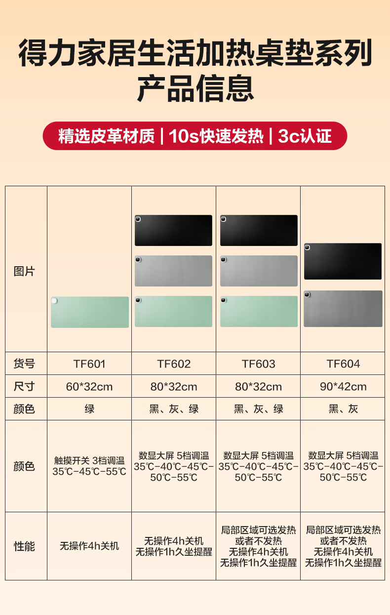 得力(deli)加热鼠标垫加热桌垫暖桌垫超大加长发热桌垫学生写字台办公室电脑桌面电热加热垫灰色80*32cm