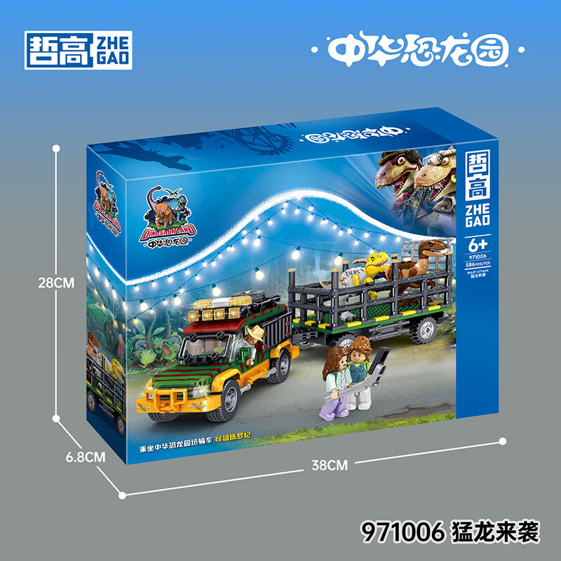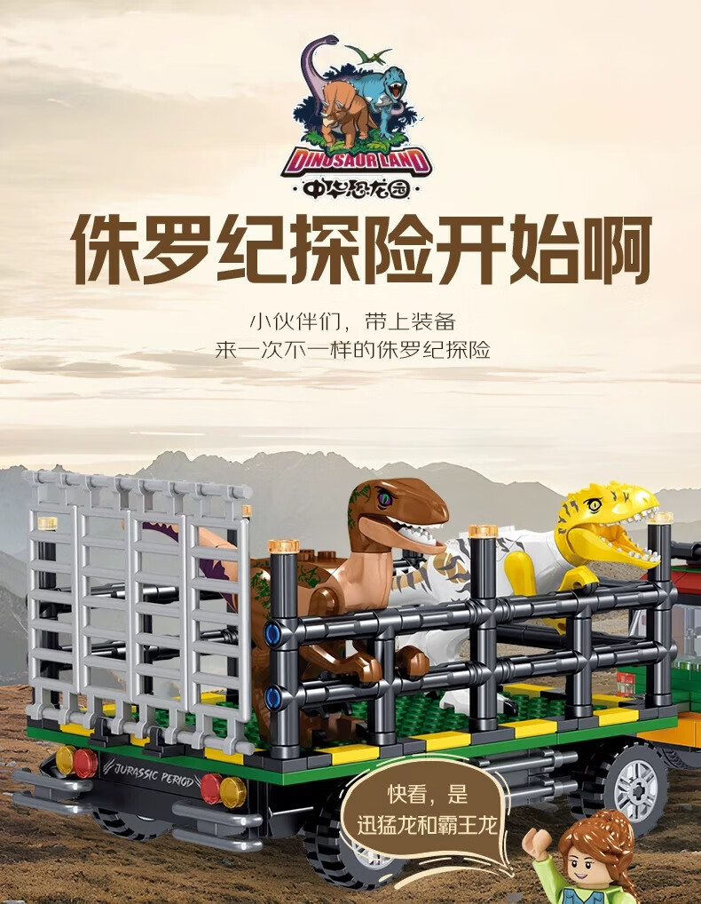 哲高积木恐龙园授权迅猛龙霸王龙侏罗纪儿童益智拼装玩具男孩 猛龙来袭【带3人物2恐龙】586PCS