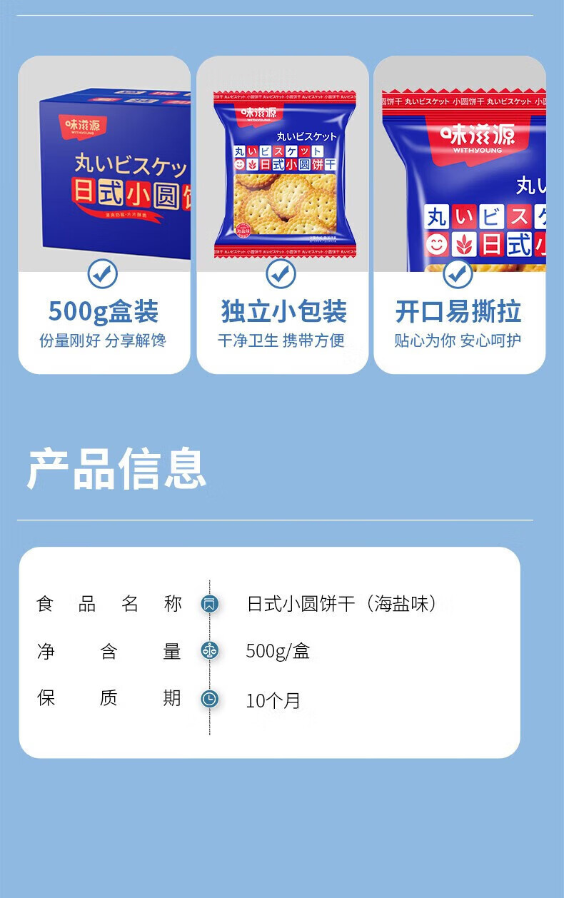 味滋源网红日式海盐味小圆饼干薄脆饼干 代餐饼干 办公室下午茶休闲零食 日式小圆饼干(海盐味)500g/箱 1箱