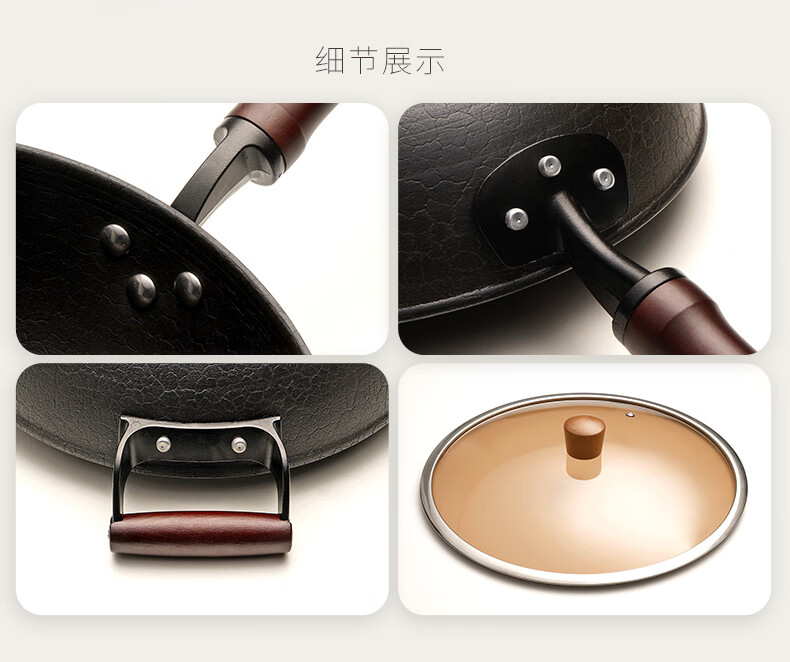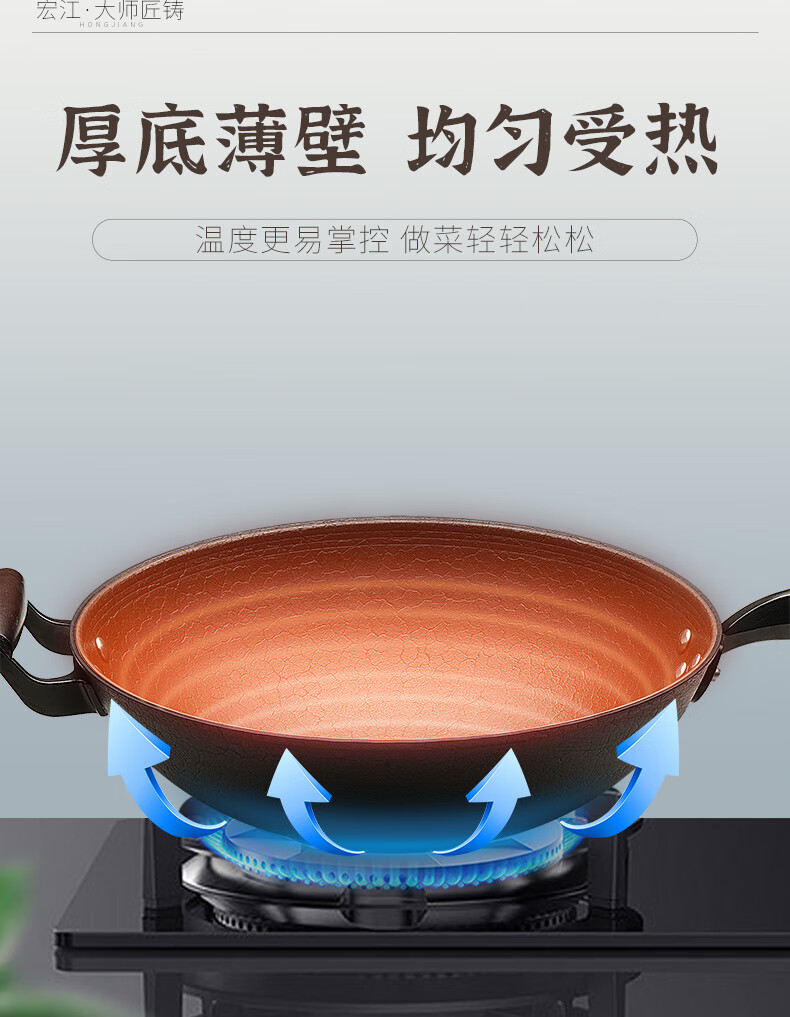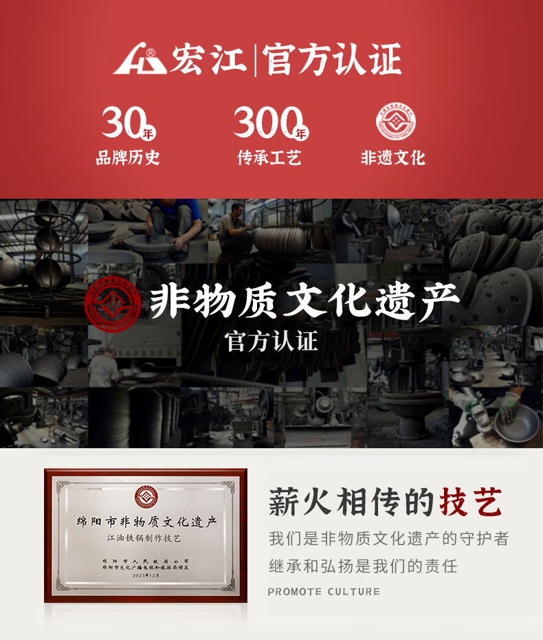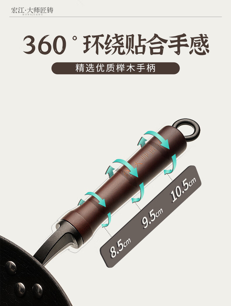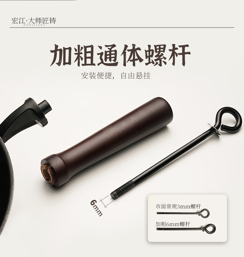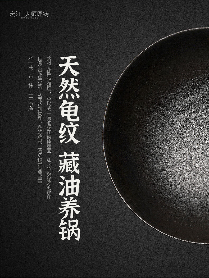 宏江 江油老式手工铁锅无涂层铁锅家用炒锅生铁圆底平底炒锅铸铁锅 32圆底无耳(大师款套装) 32cm