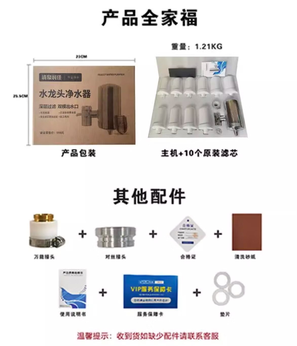 清泉润佳净水器1机5芯送5芯龙头滤芯加大超耐用可清洗家用直饮304净水机 升级碳棒款*一机三芯+转换头大礼包 机器终身质保
