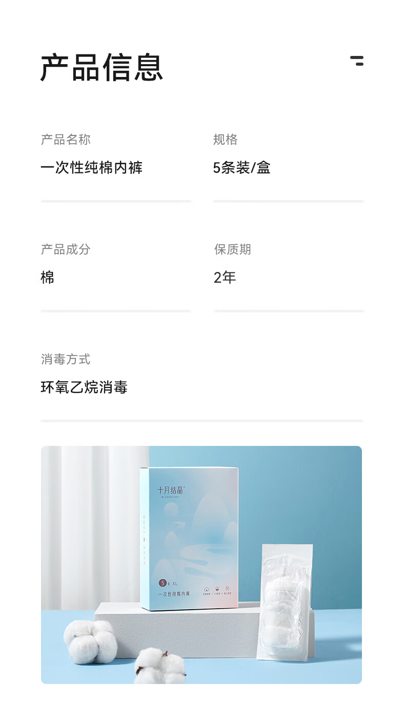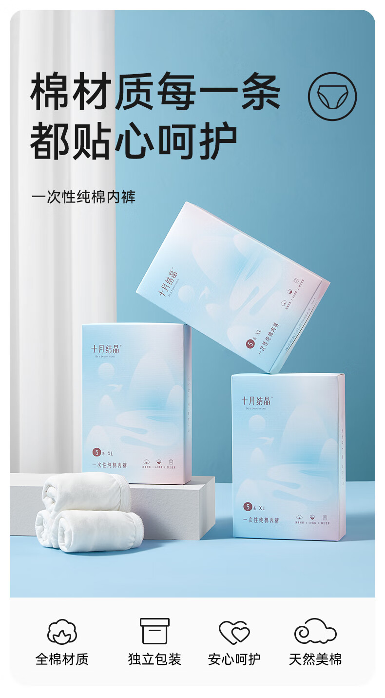 十月结晶一次性内裤孕产妇出差旅行免洗纯棉内裤5条XXXL码【安全灭菌】