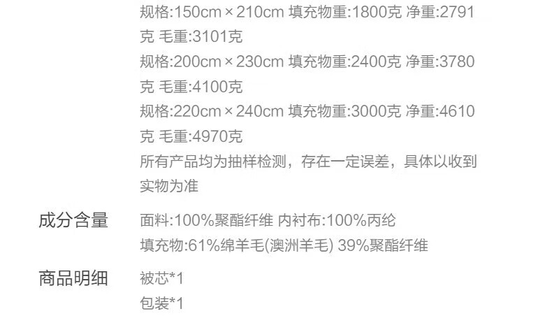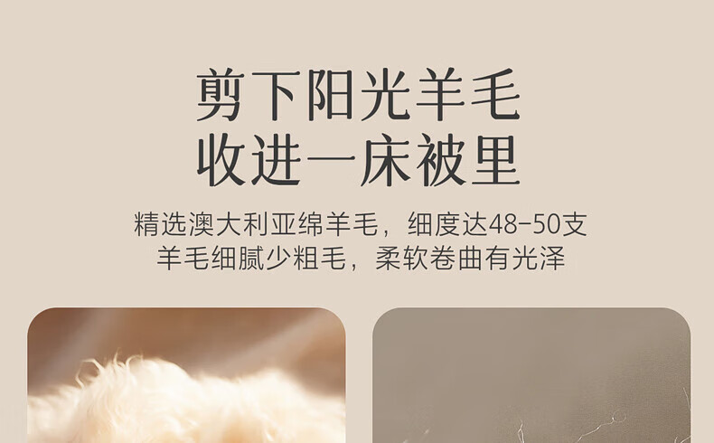 百丽丝A类羊毛被 澳洲羊毛进口抗菌冬被 保暖秋冬单双人被芯 【A类澳洲进口羊毛】加厚冬被(约3-6斤) 200cm*230cm(适用1.5米床)