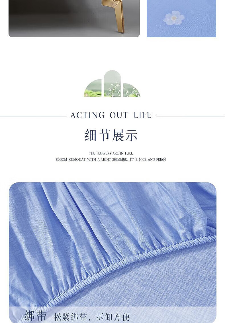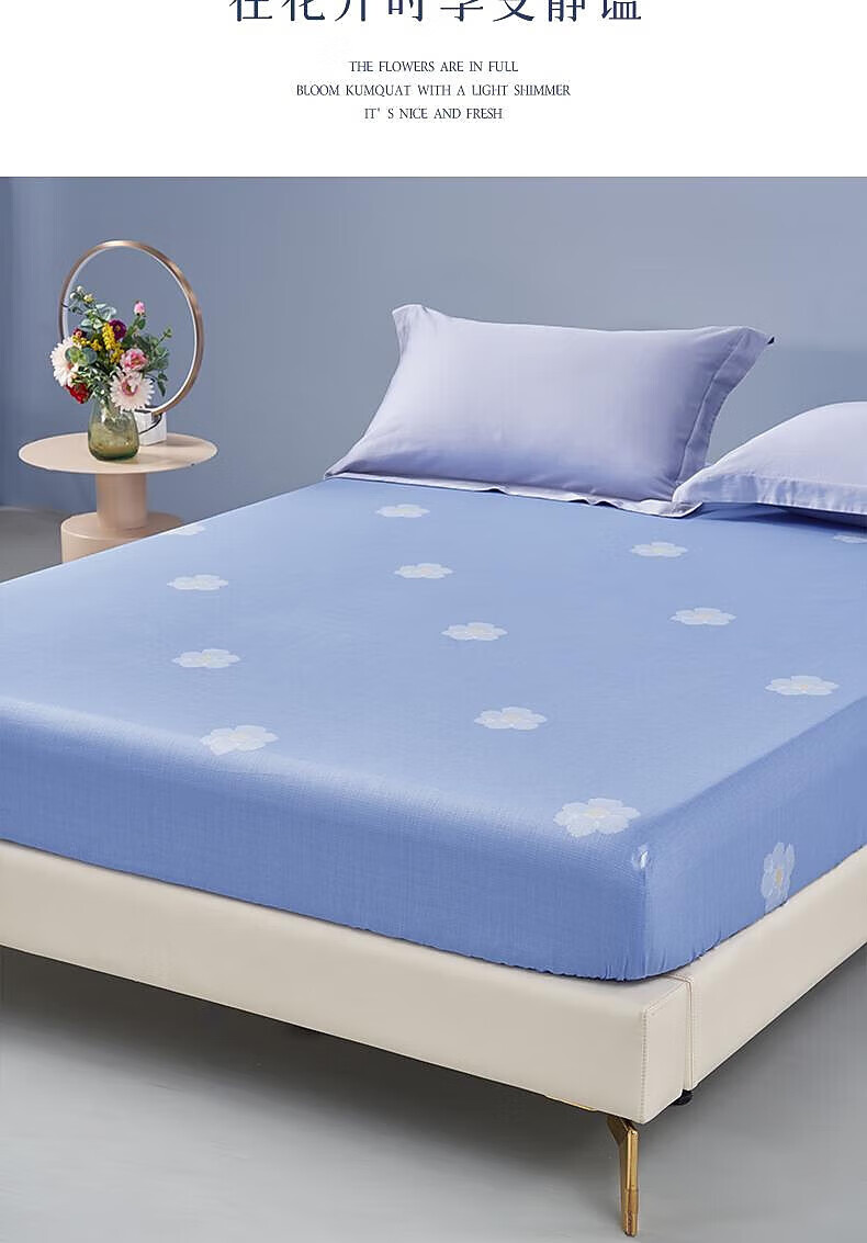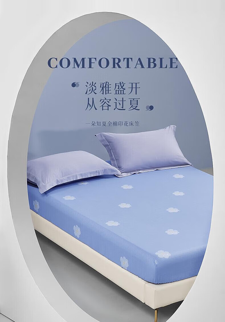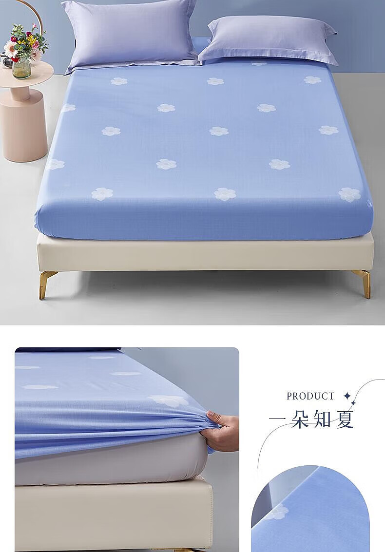 百丽丝出品床笠全棉亲肤柔软透气可水洗机洗纯棉床笠单件 一朵知夏全棉印花床笠 180cm*200cm