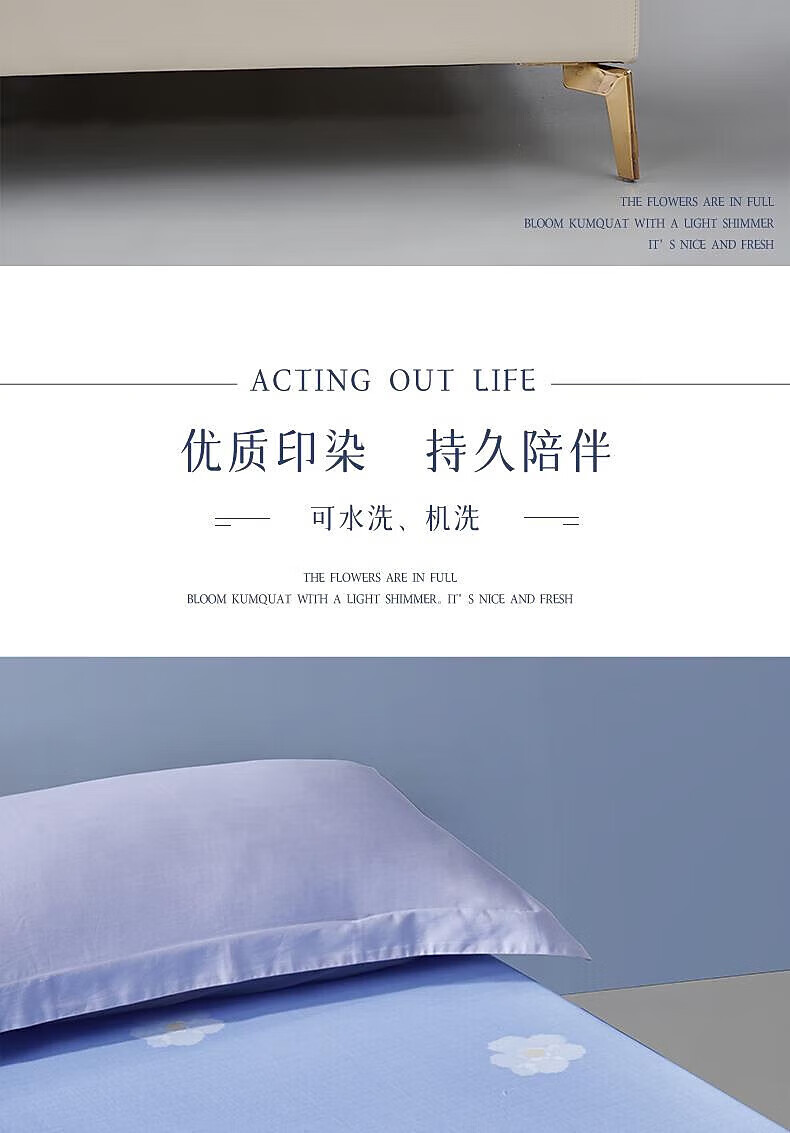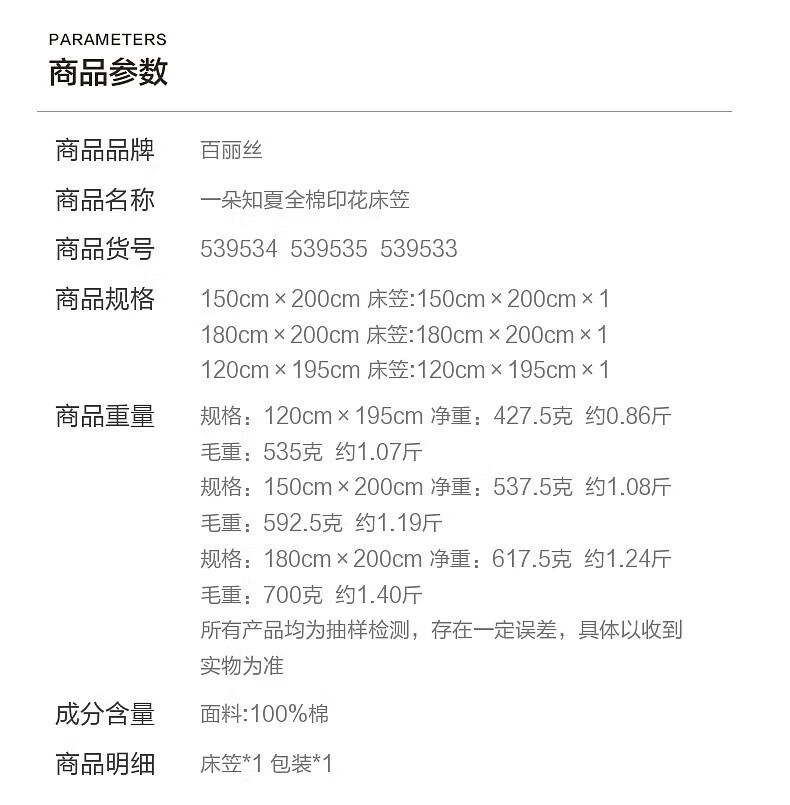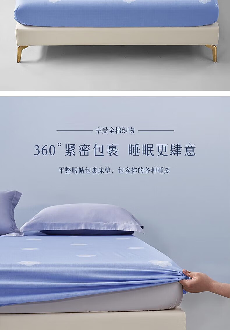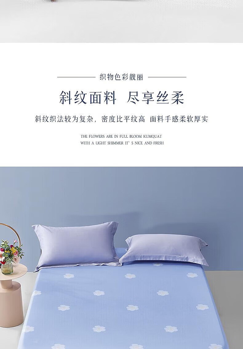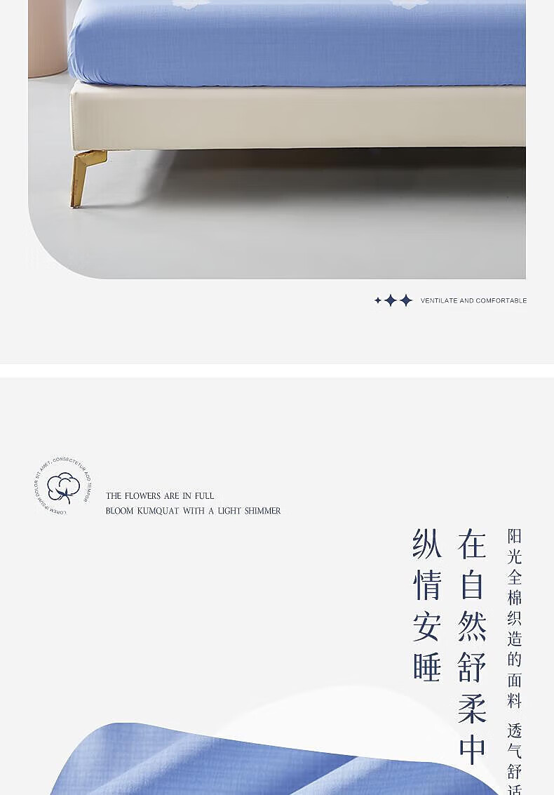 百丽丝出品床笠全棉亲肤柔软透气可水洗机洗纯棉床笠单件 一朵知夏全棉印花床笠 180cm*200cm