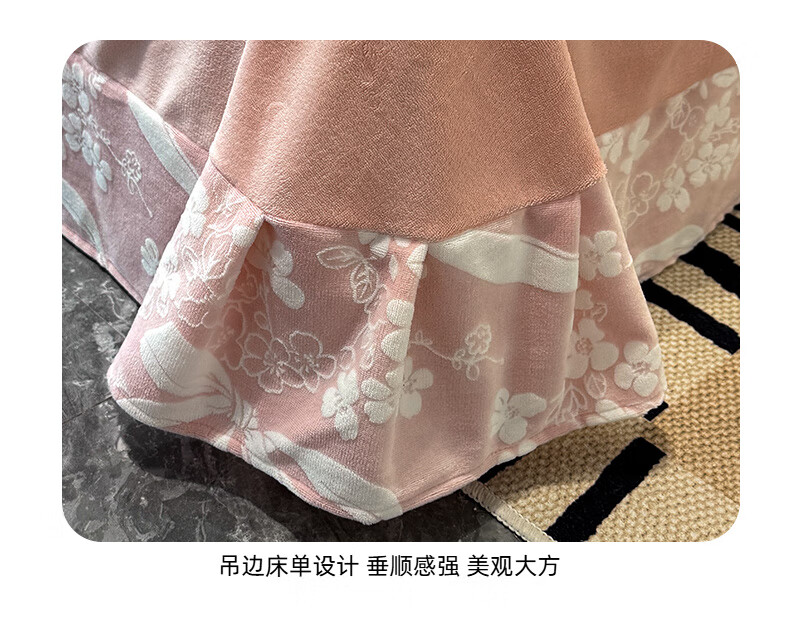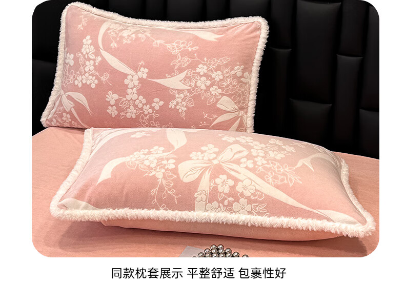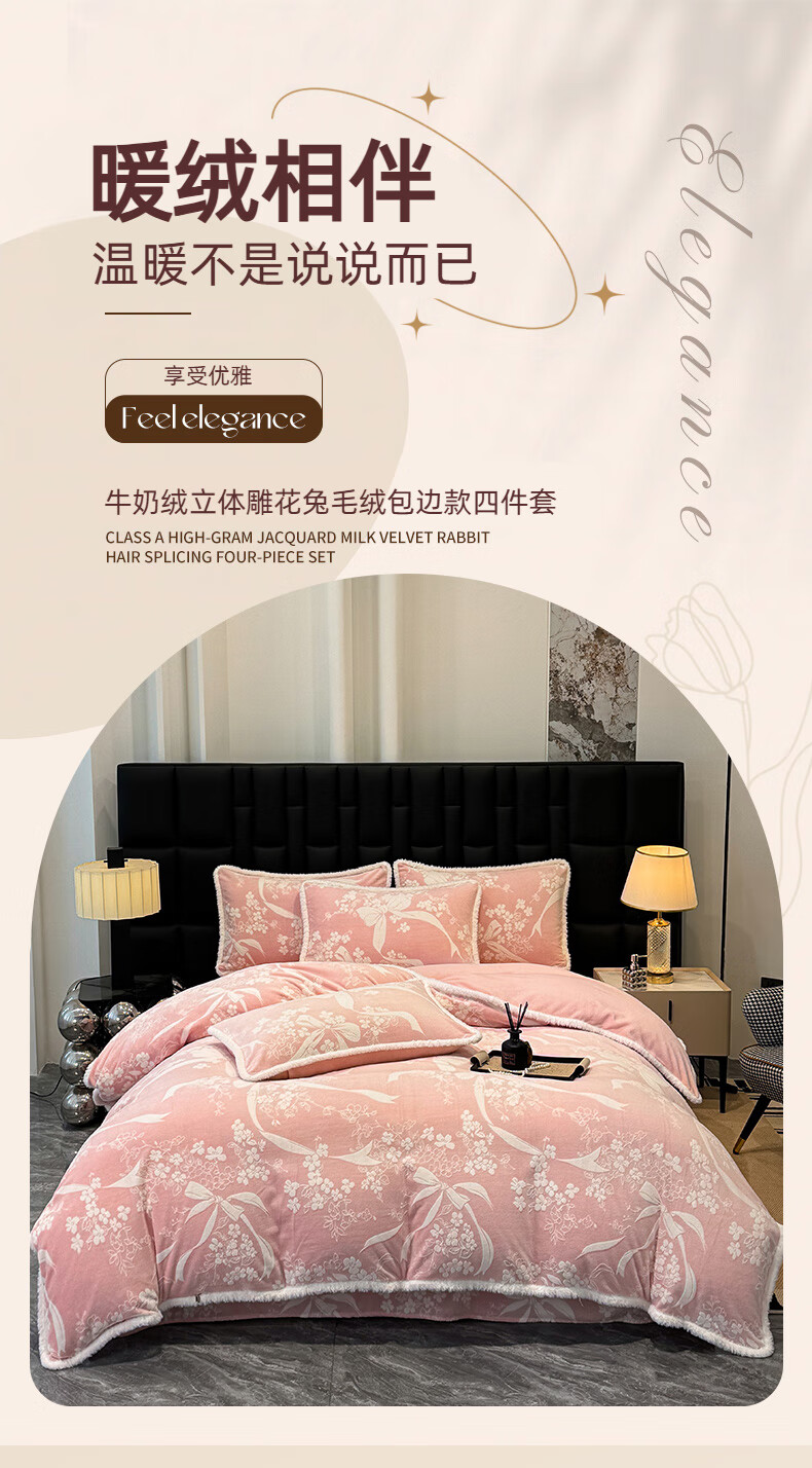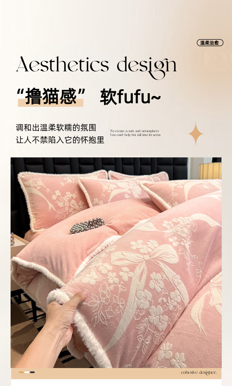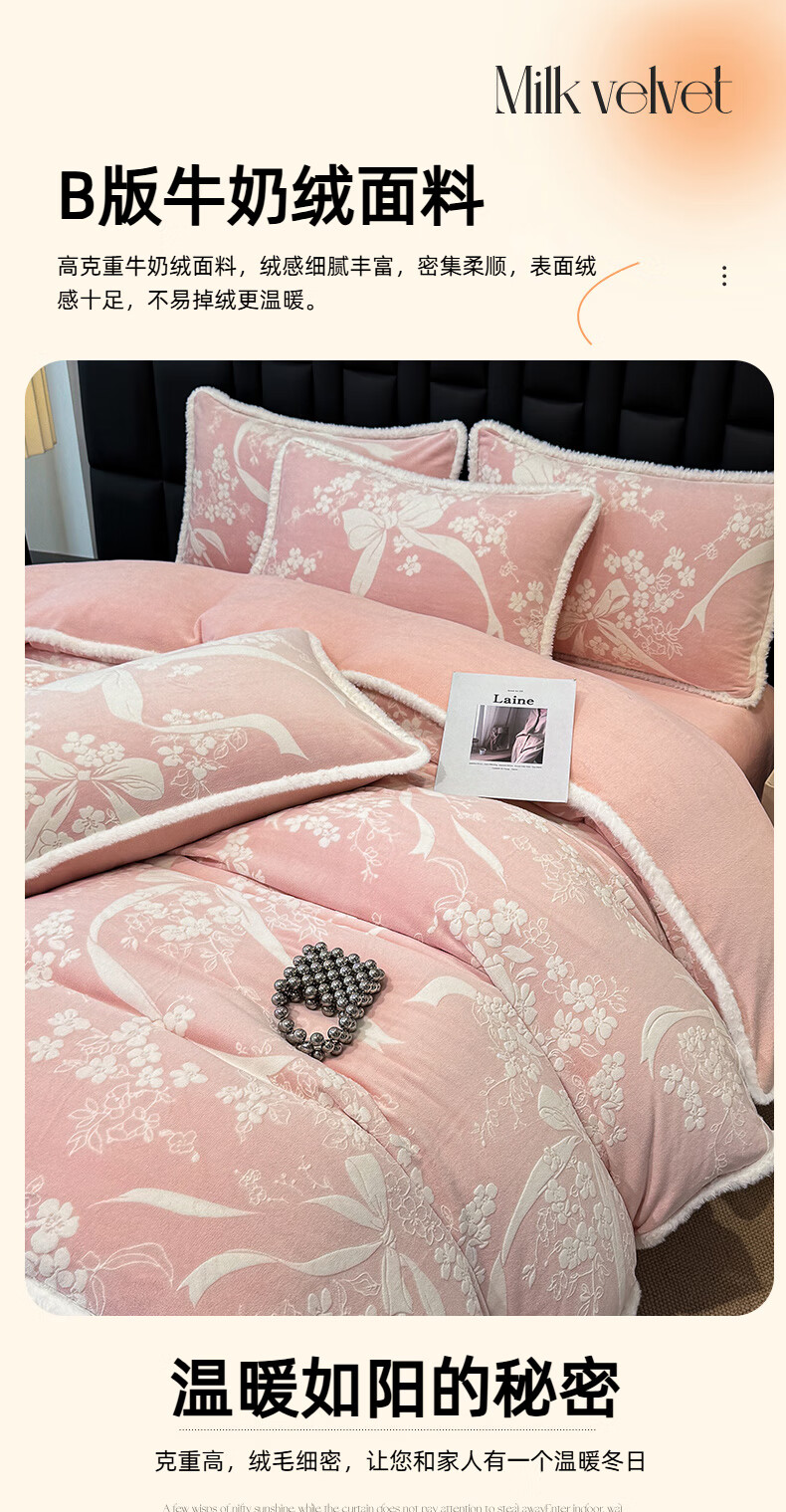 雅兰家纺 亲肤牛奶绒抗菌防静电床单四件套冬天保暖床笠 【抗菌+防静电】暖序暖暖绒(雾粉色) 床笠款 丨1.5米四件套丨 被套203*230cm