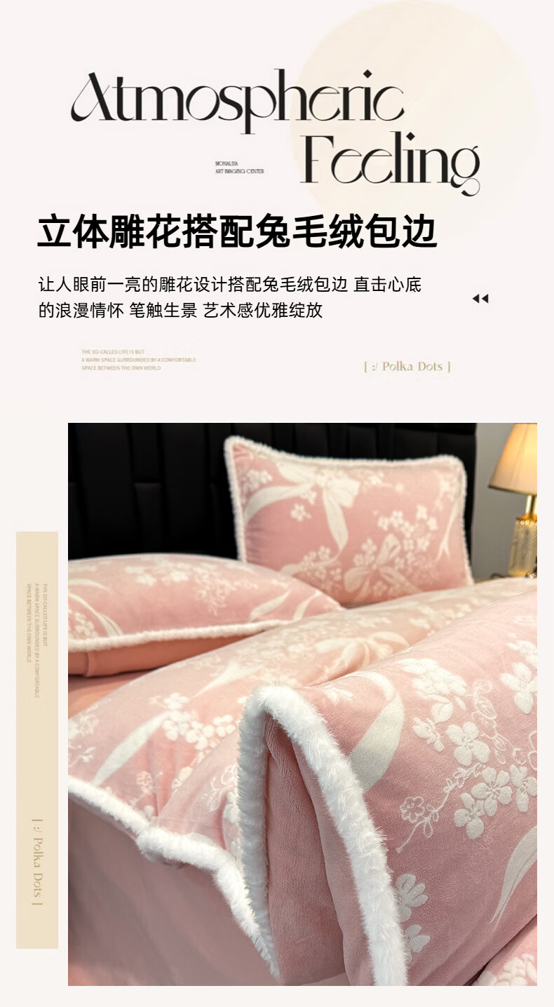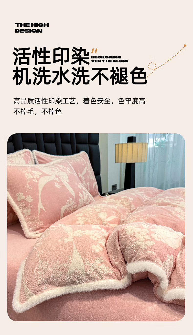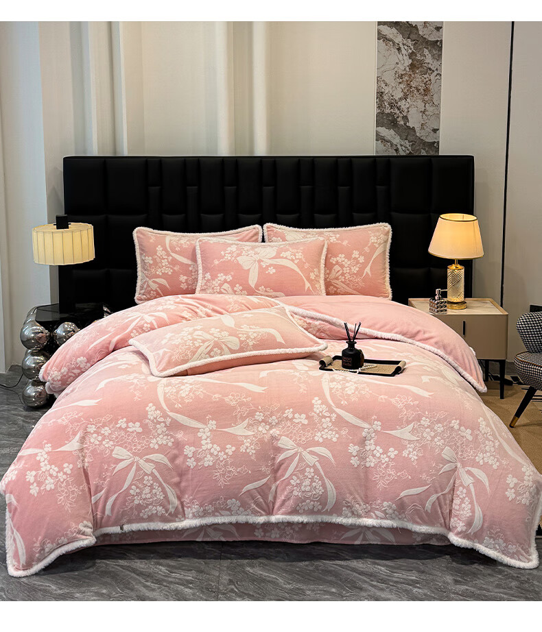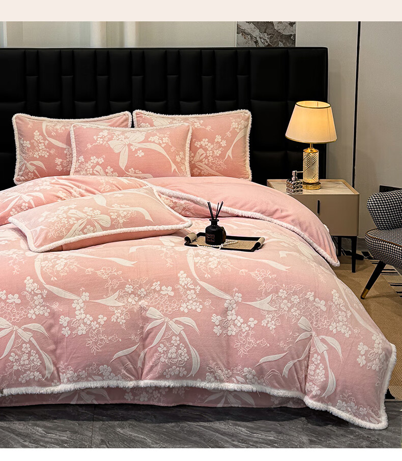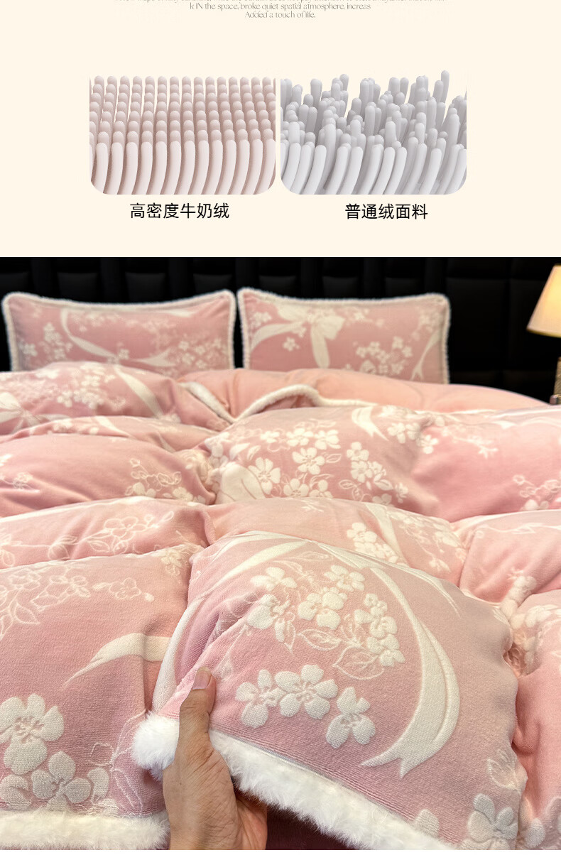 雅兰家纺 亲肤牛奶绒抗菌防静电床单四件套冬天保暖床笠 【抗菌+防静电】暖序暖暖绒(雾粉色) 床笠款 丨1.5米四件套丨 被套203*230cm