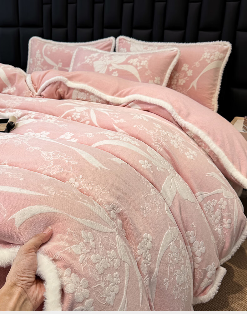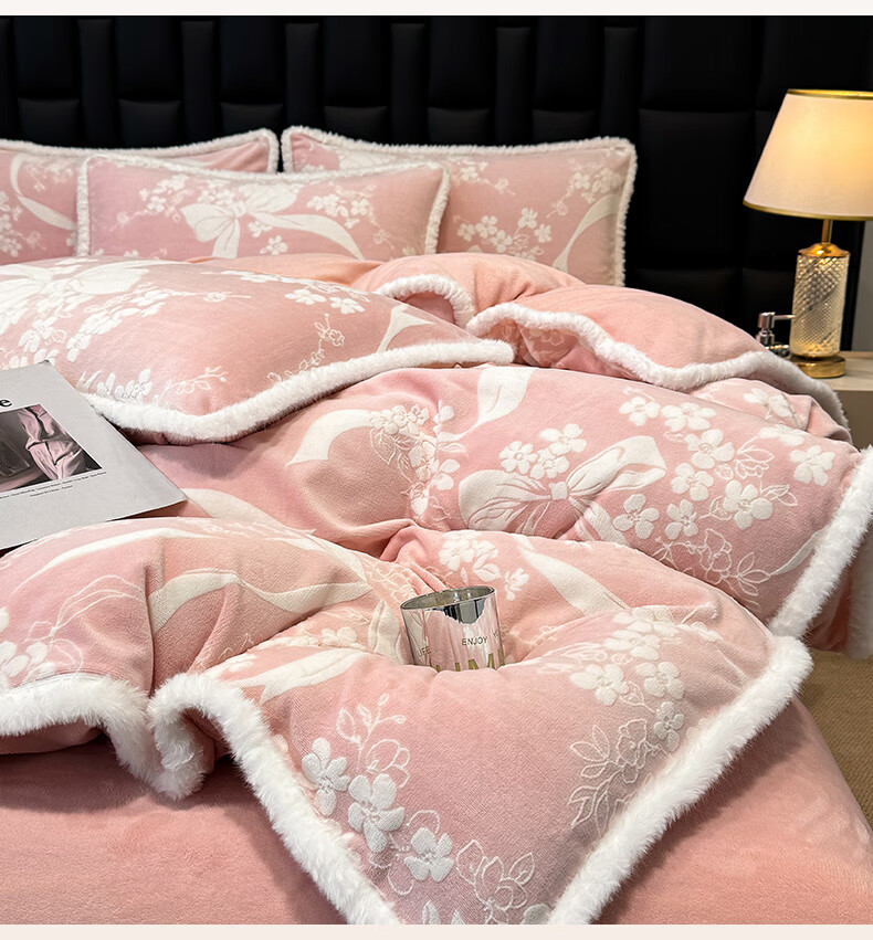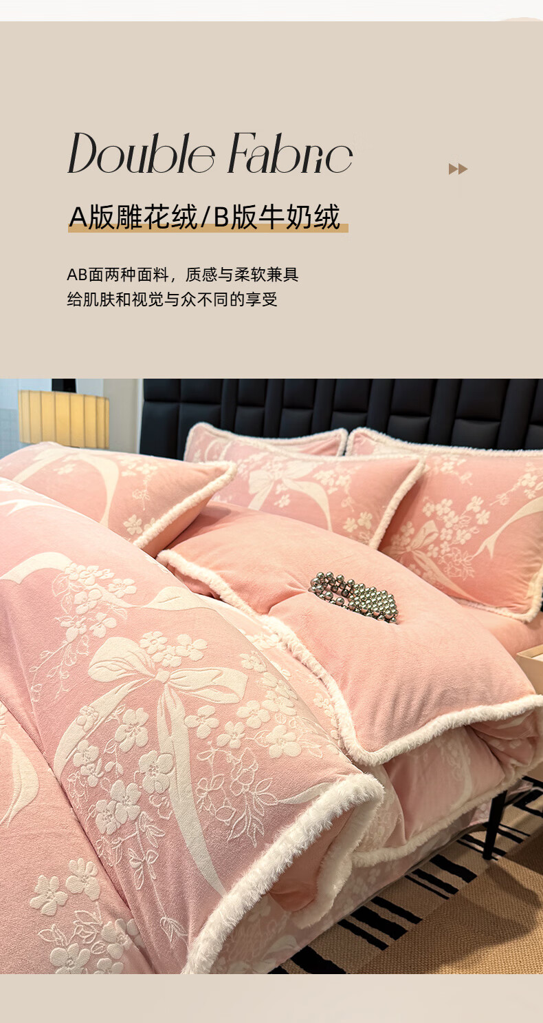 苏萱2025新款美拉德牛奶绒床上四件套冬季加厚雕花珊瑚绒被套床单床品 蝶恋花 1.8m 床单款 四件套-被套200x230cm