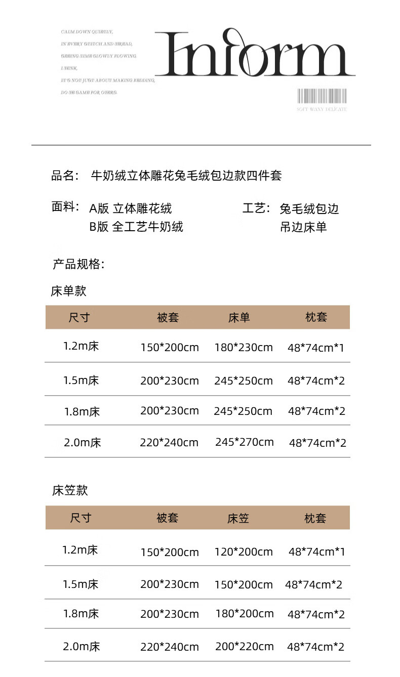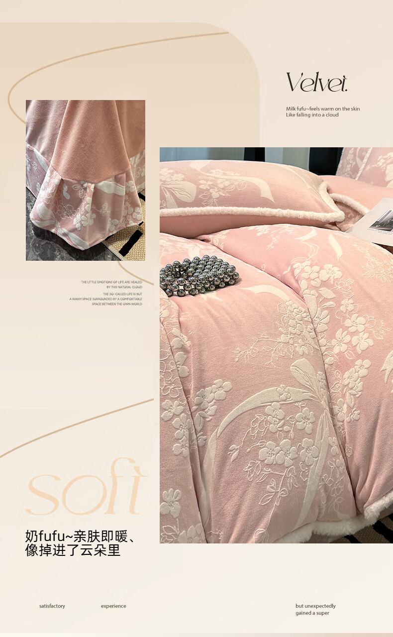 苏萱冬季加厚雕花牛奶绒床上四件套加绒被套床单双面珊瑚绒床品三件套 暖意浓浓 1.8m 床单款 四件套-被套200x230cm