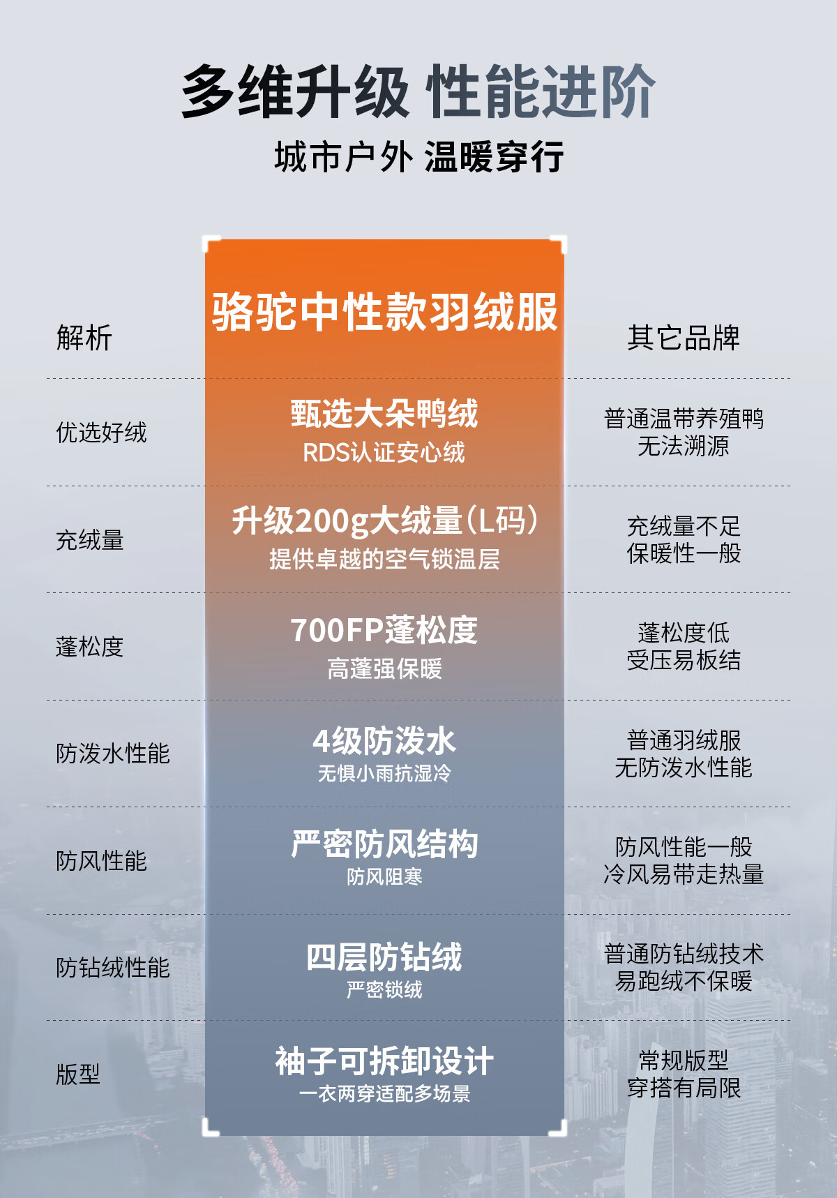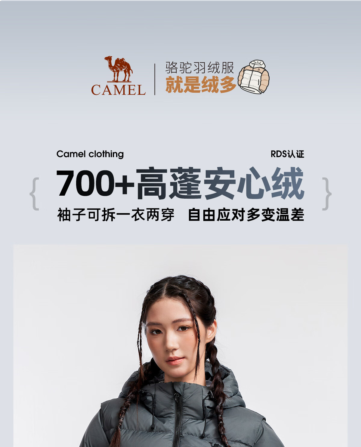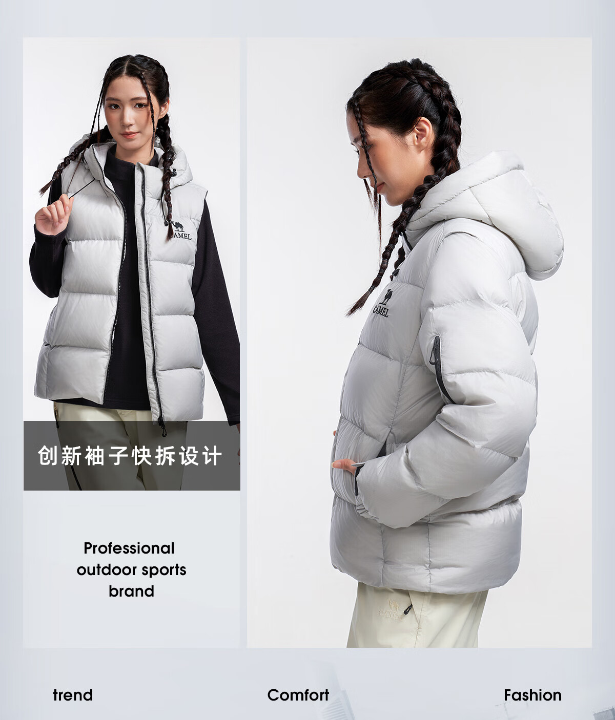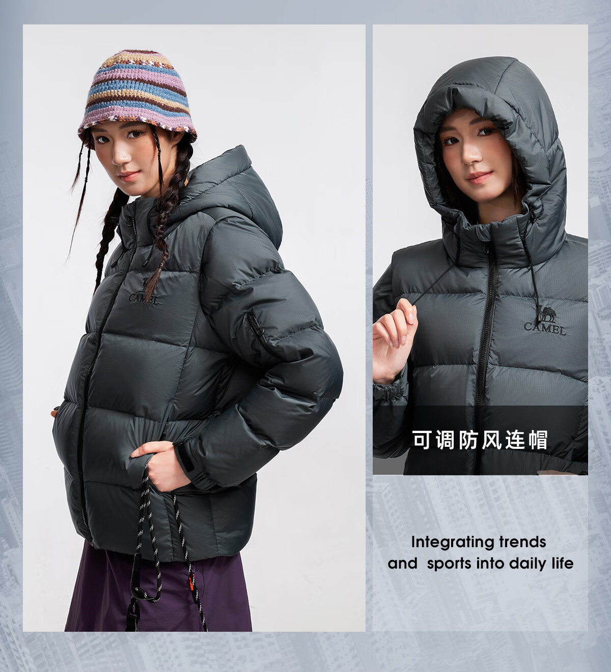 骆驼户外羽绒服冬季新款男女同款袖子可拆防泼水高蓬保暖面包服