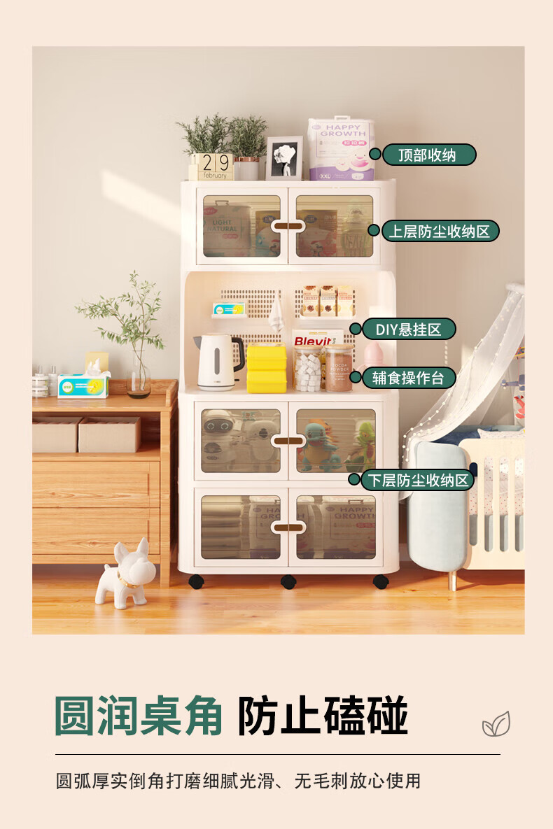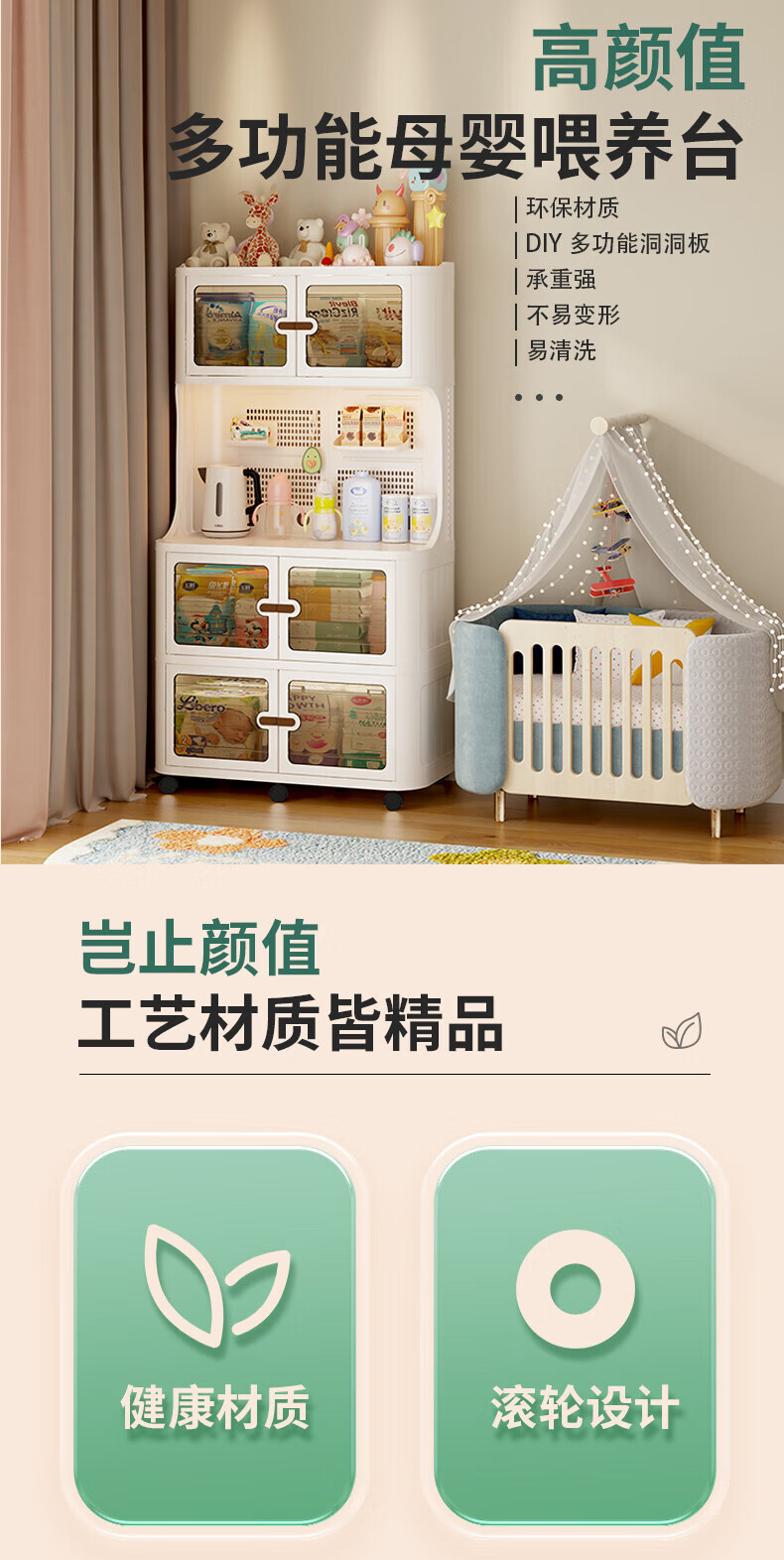 BABY VIEW母婴喂养台柜宝宝收纳多功能护理台婴儿房置物架婴儿用品储物柜 60cm喂养台-带洞洞板【无甲醛】