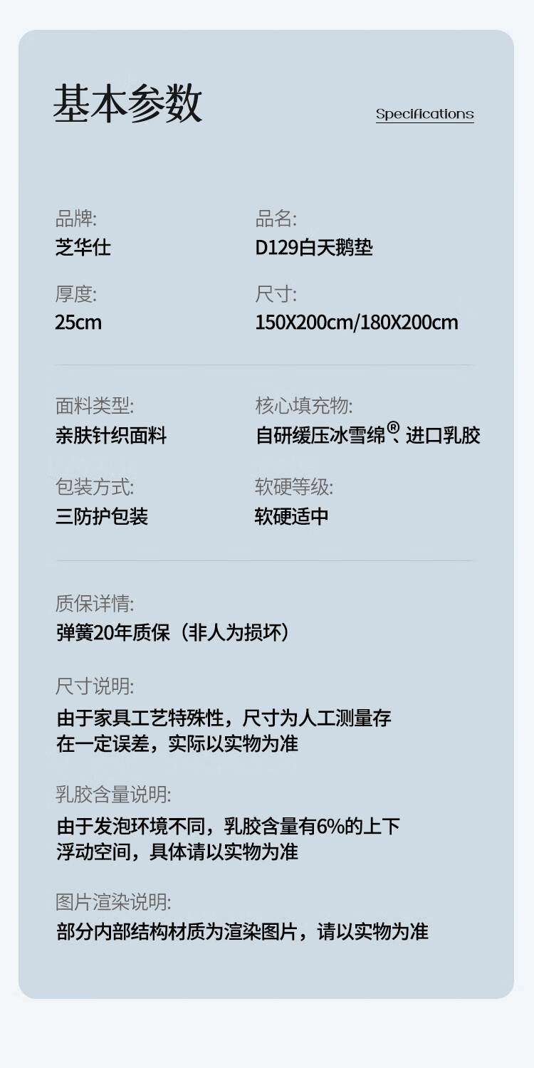 芝华仕(CHEERS)乳胶床垫独袋弹簧席梦思床垫护腰脊家用白天鹅垫芝华士D129 1.8m