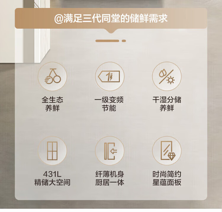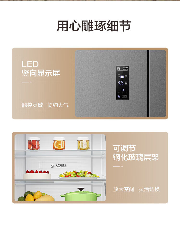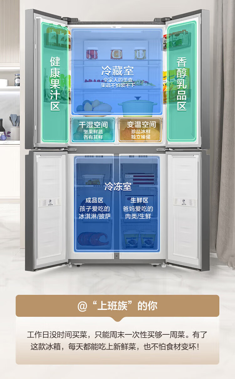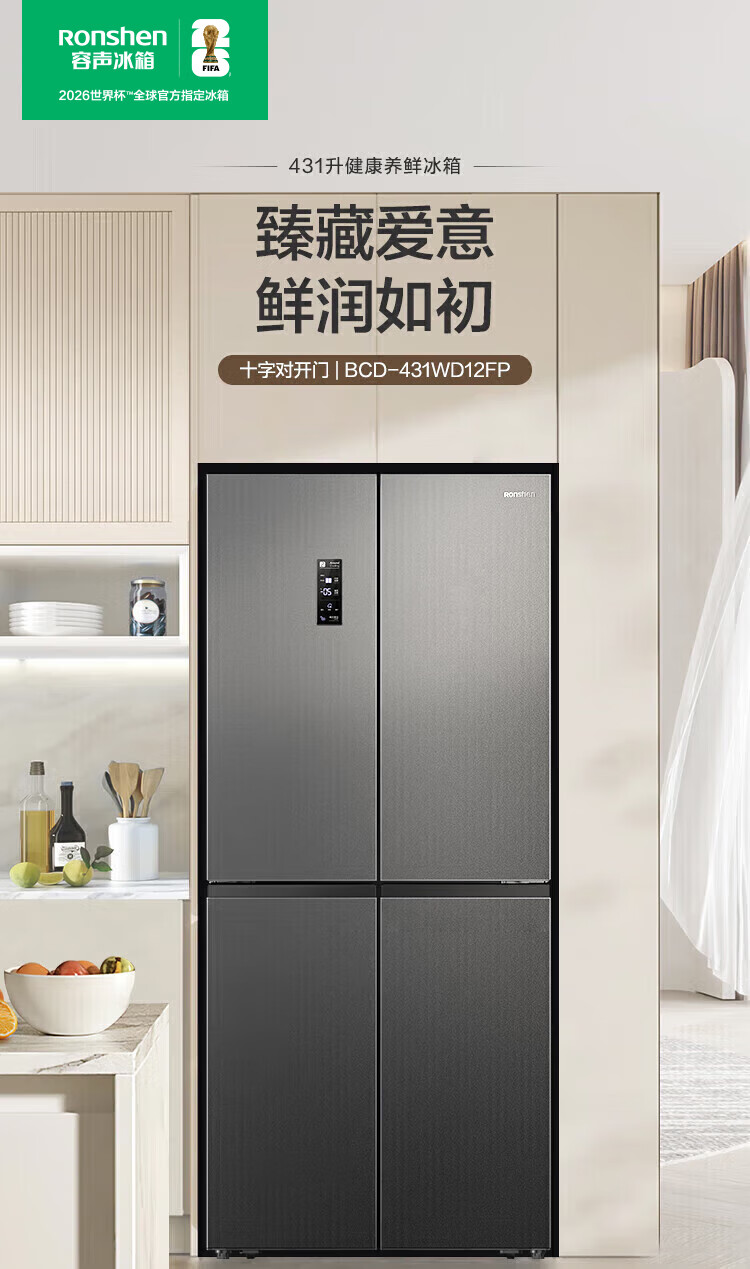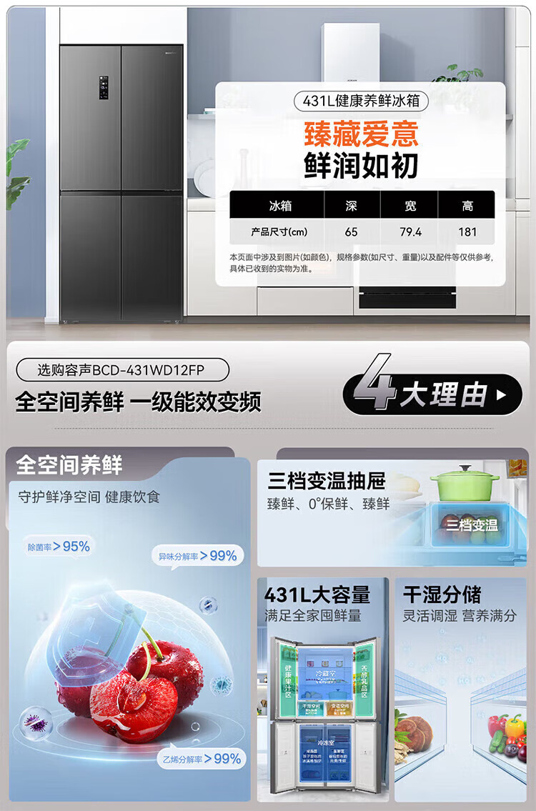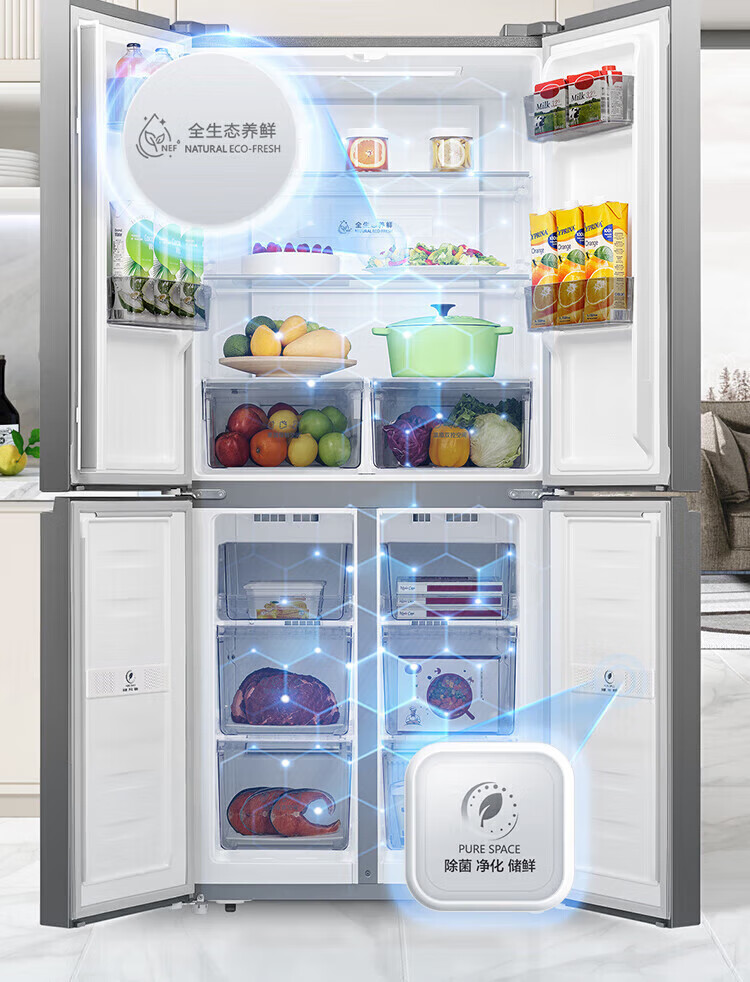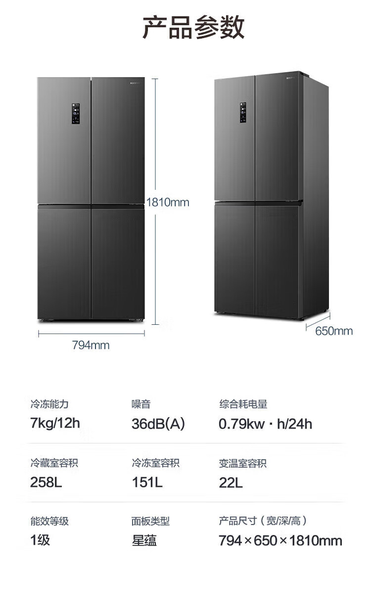 容声431升十字门四开门双循环一级能效薄双变频风冷无霜家用冰箱大容量 以旧换新20% 星蕴灰 容声431升双循环一级变频冰箱