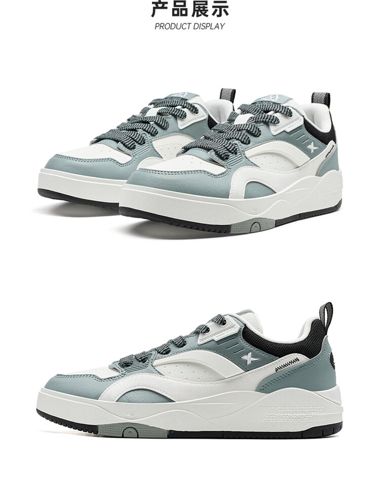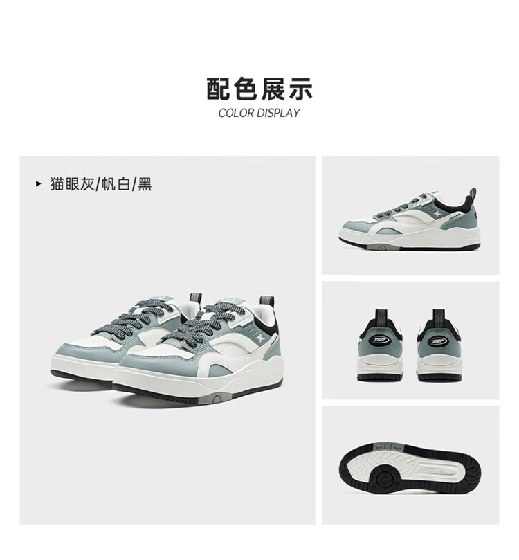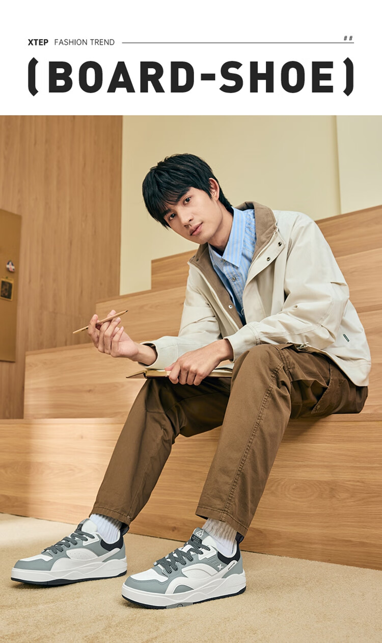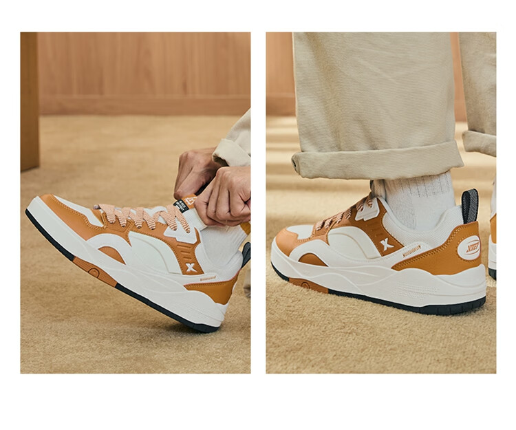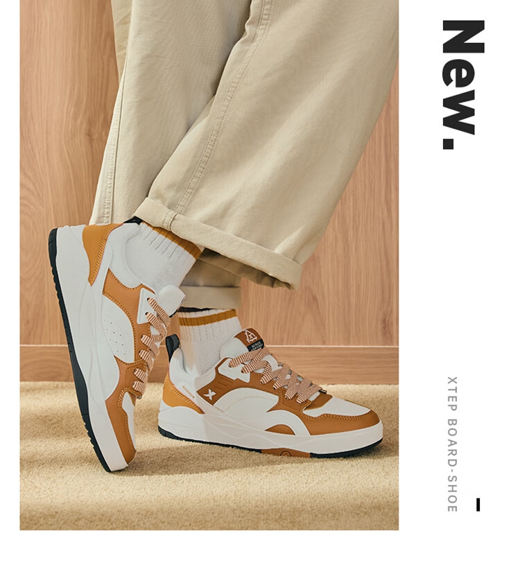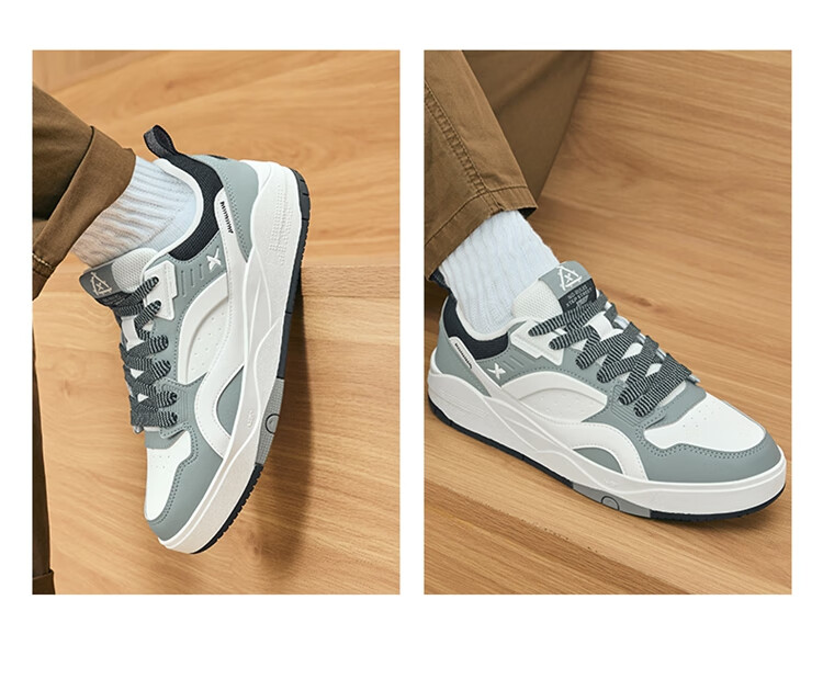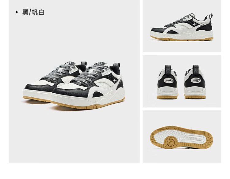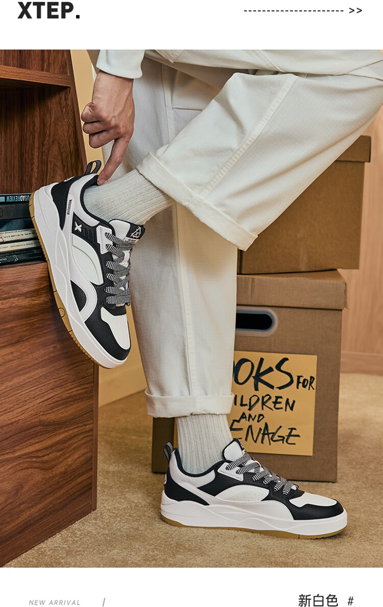 特步男鞋鞋子男驭桀冬季保暖户外运动板鞋时尚百搭 黑/帆白 42码