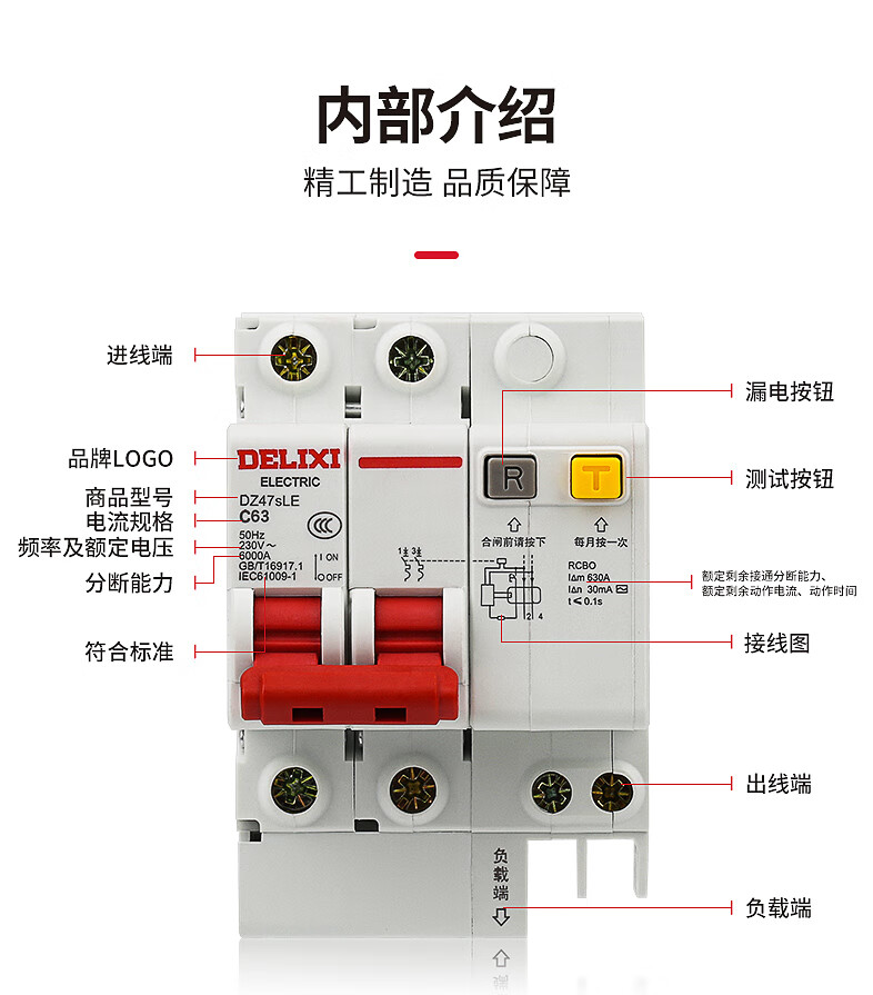德力西电气空开断路器空气开关漏电保护器DZ47sLE 1P+N 25A