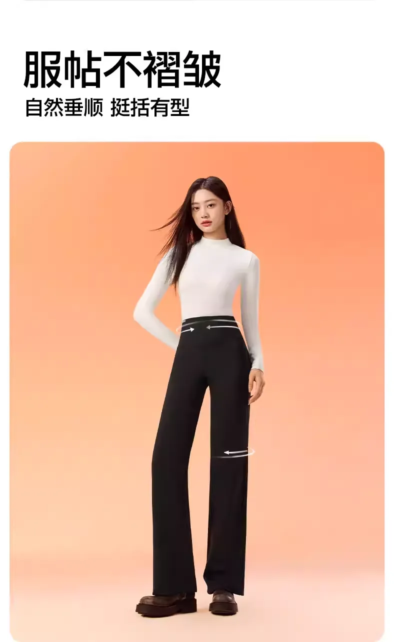 SIINSIIN【专享】阔腿裤女2024加绒裤子垂感休闲简约直筒裤黑色高腰收腹裤 【暖皮常规款】显瘦黑 加绒 M 【100-120斤】