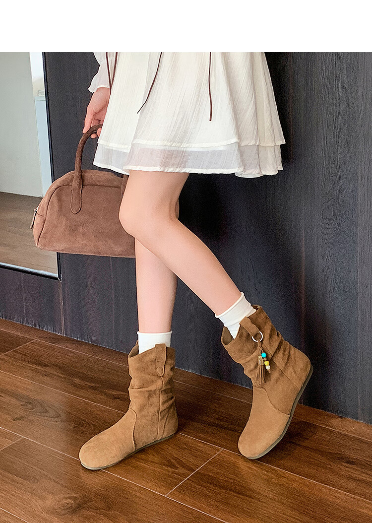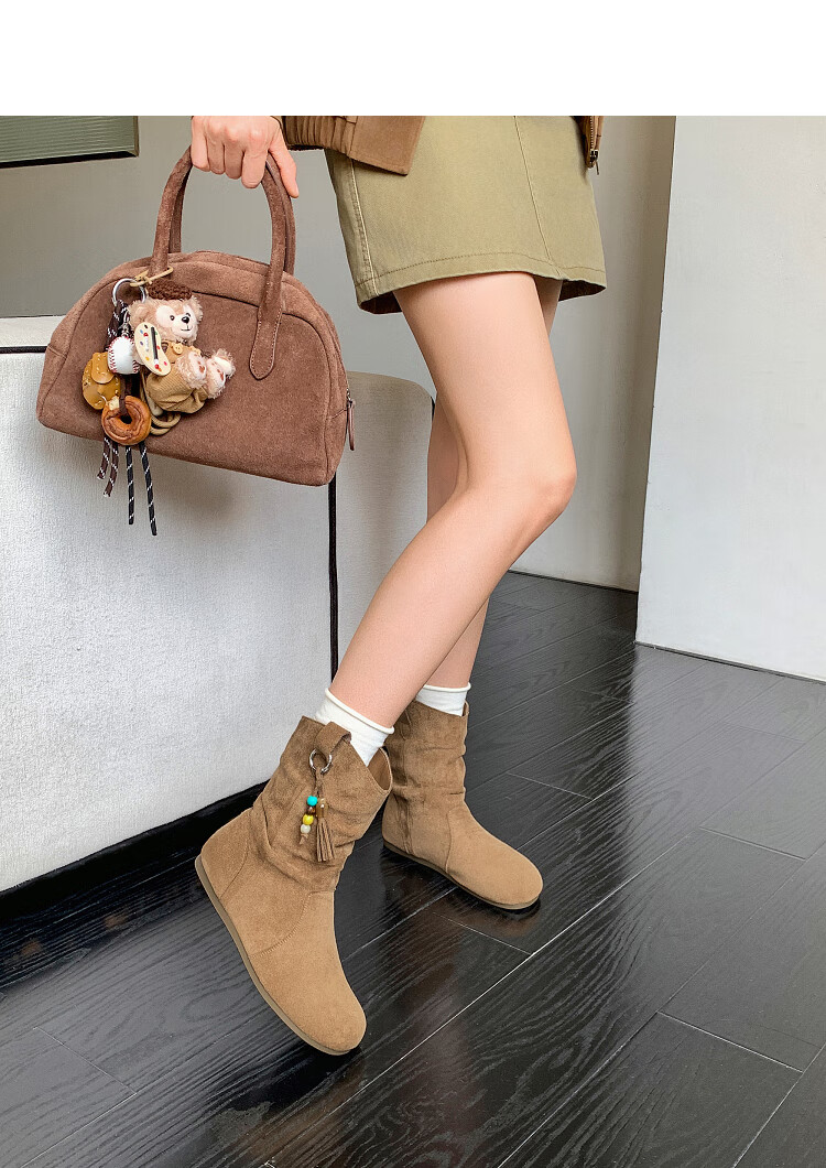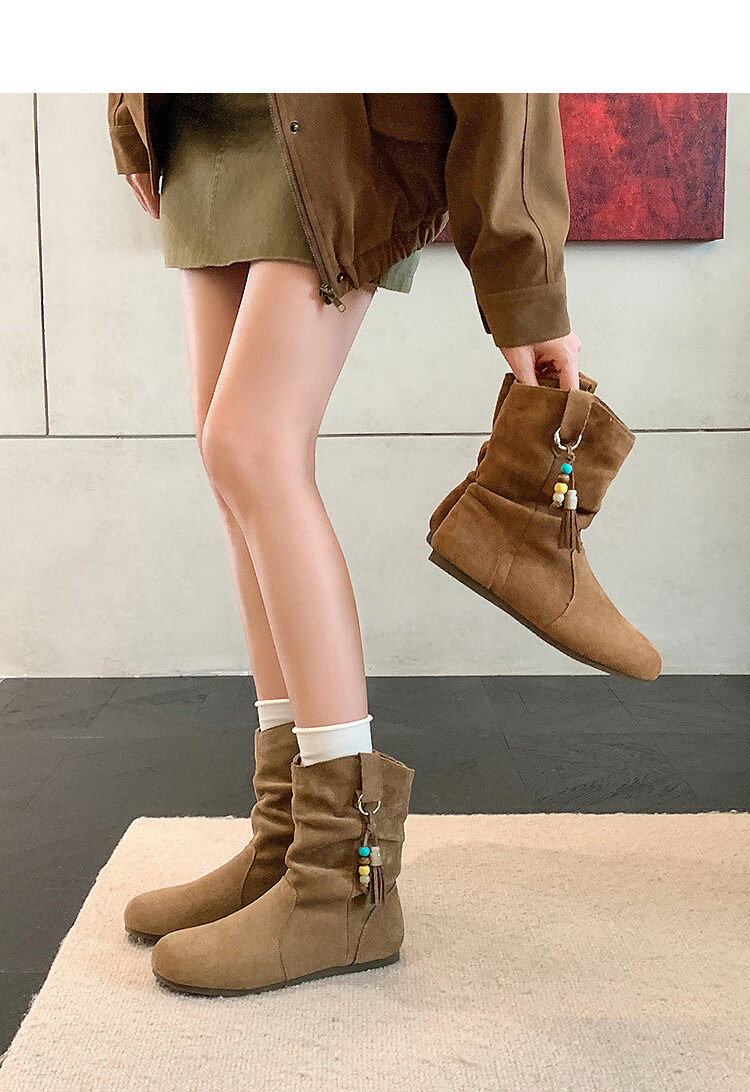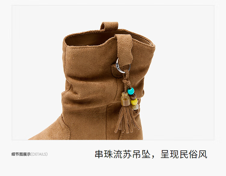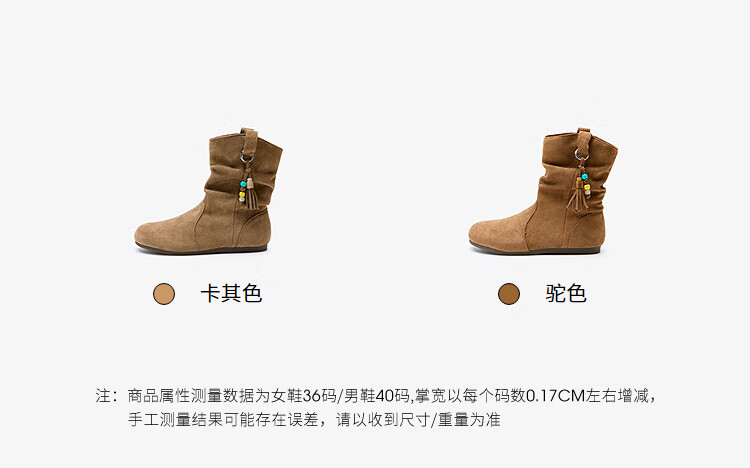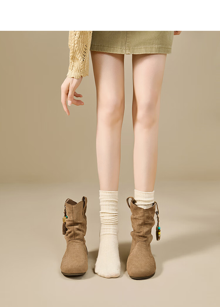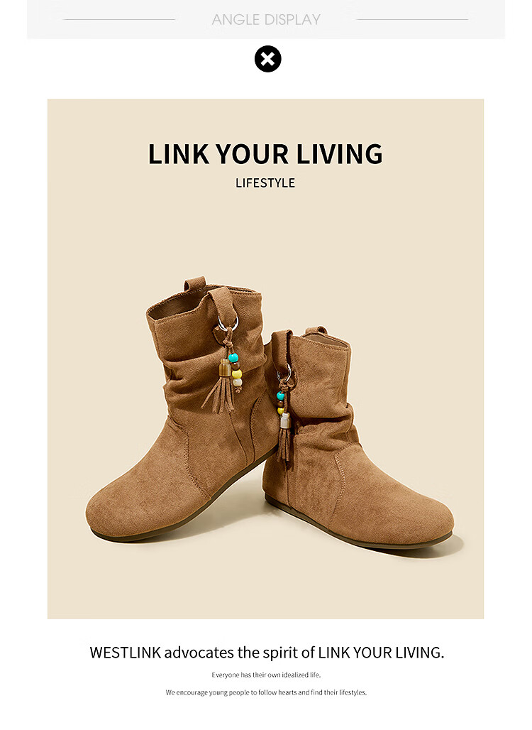 西遇(Westlink)西遇勃肯短靴女2025新款秋季复古美拉德流苏圆头平底堆堆靴西部靴 卡其色 39 (245)