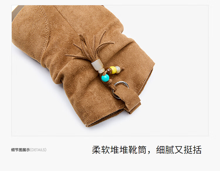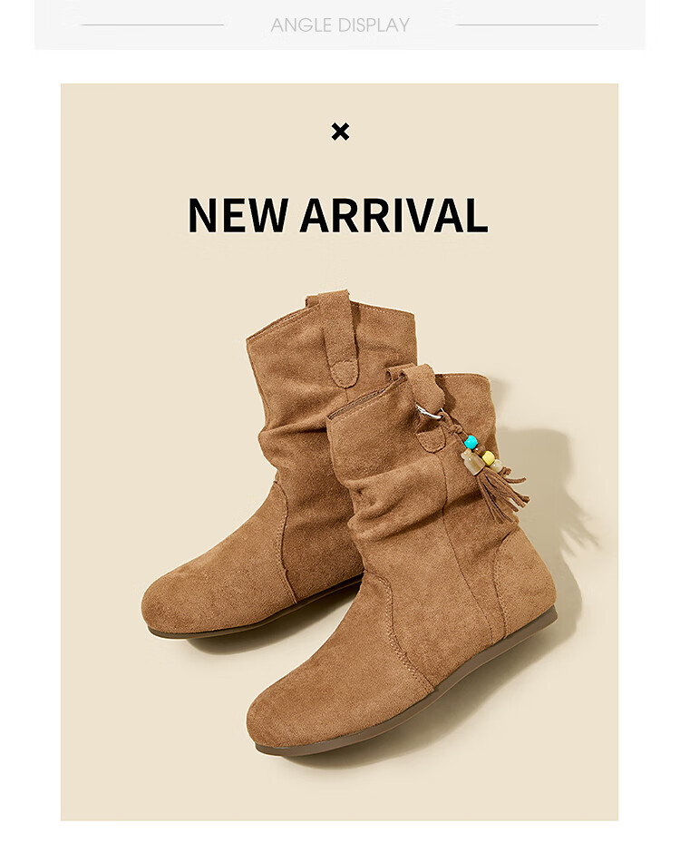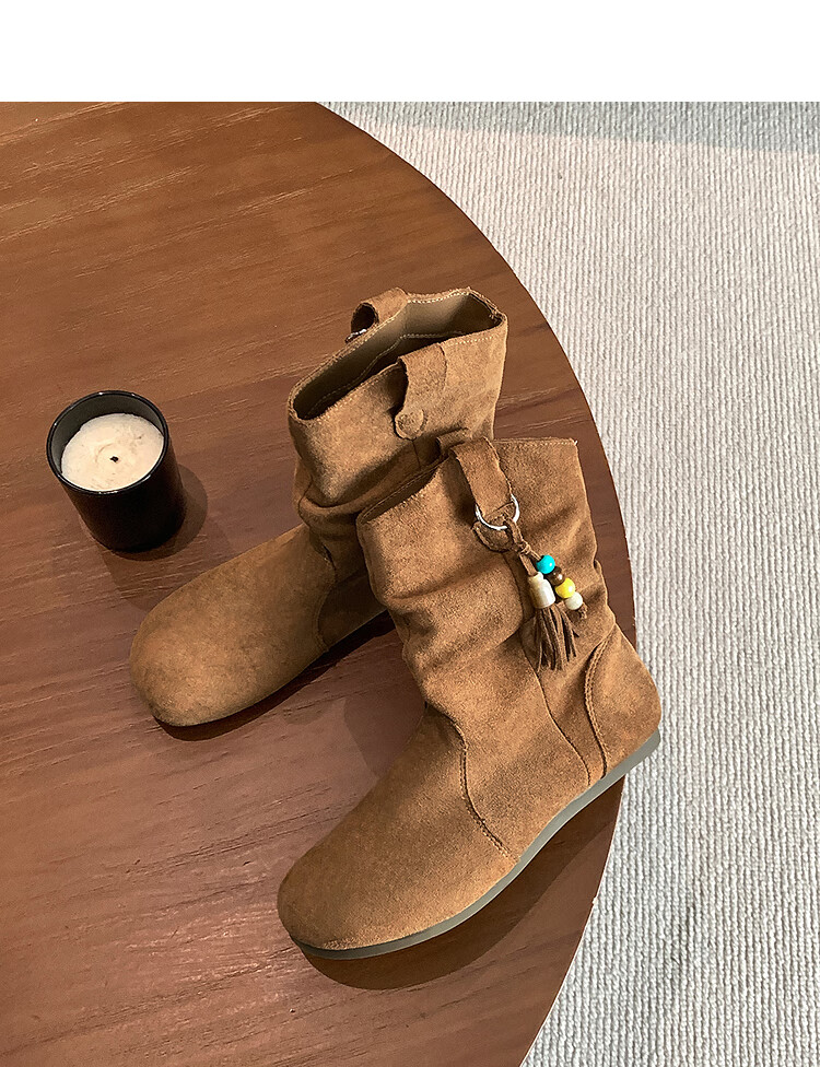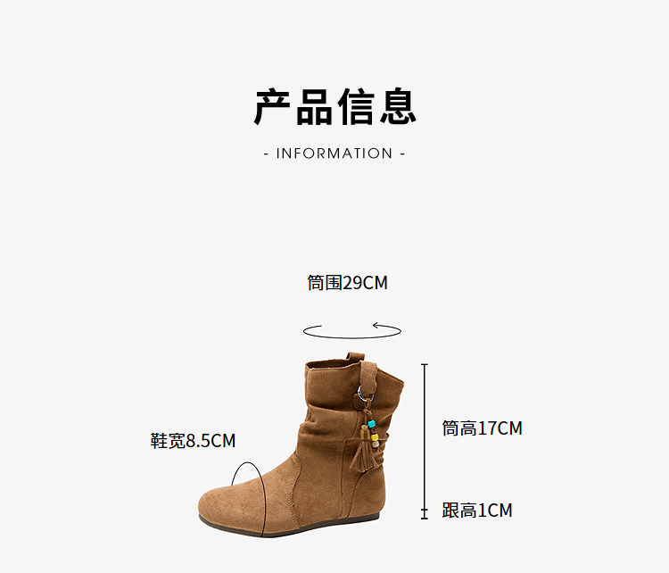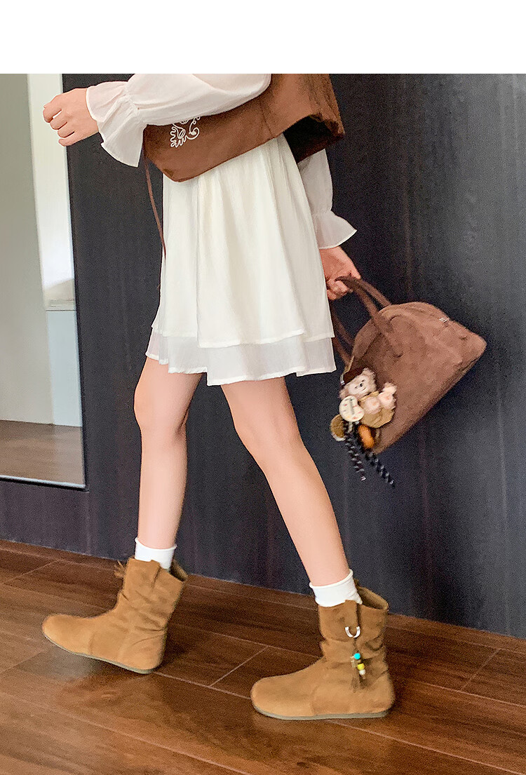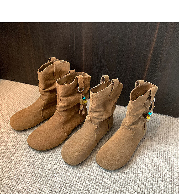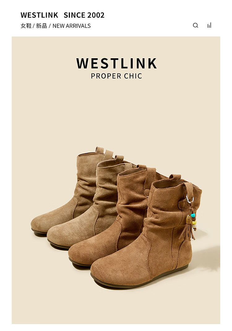西遇(Westlink)西遇勃肯短靴女2025新款秋季复古美拉德流苏圆头平底堆堆靴西部靴 卡其色 39 (245)