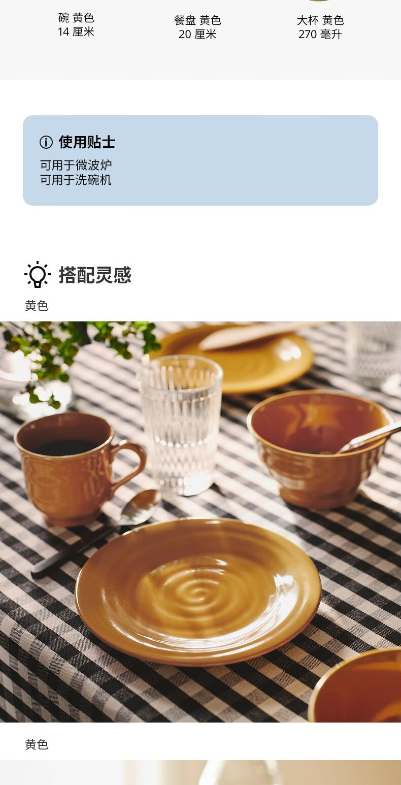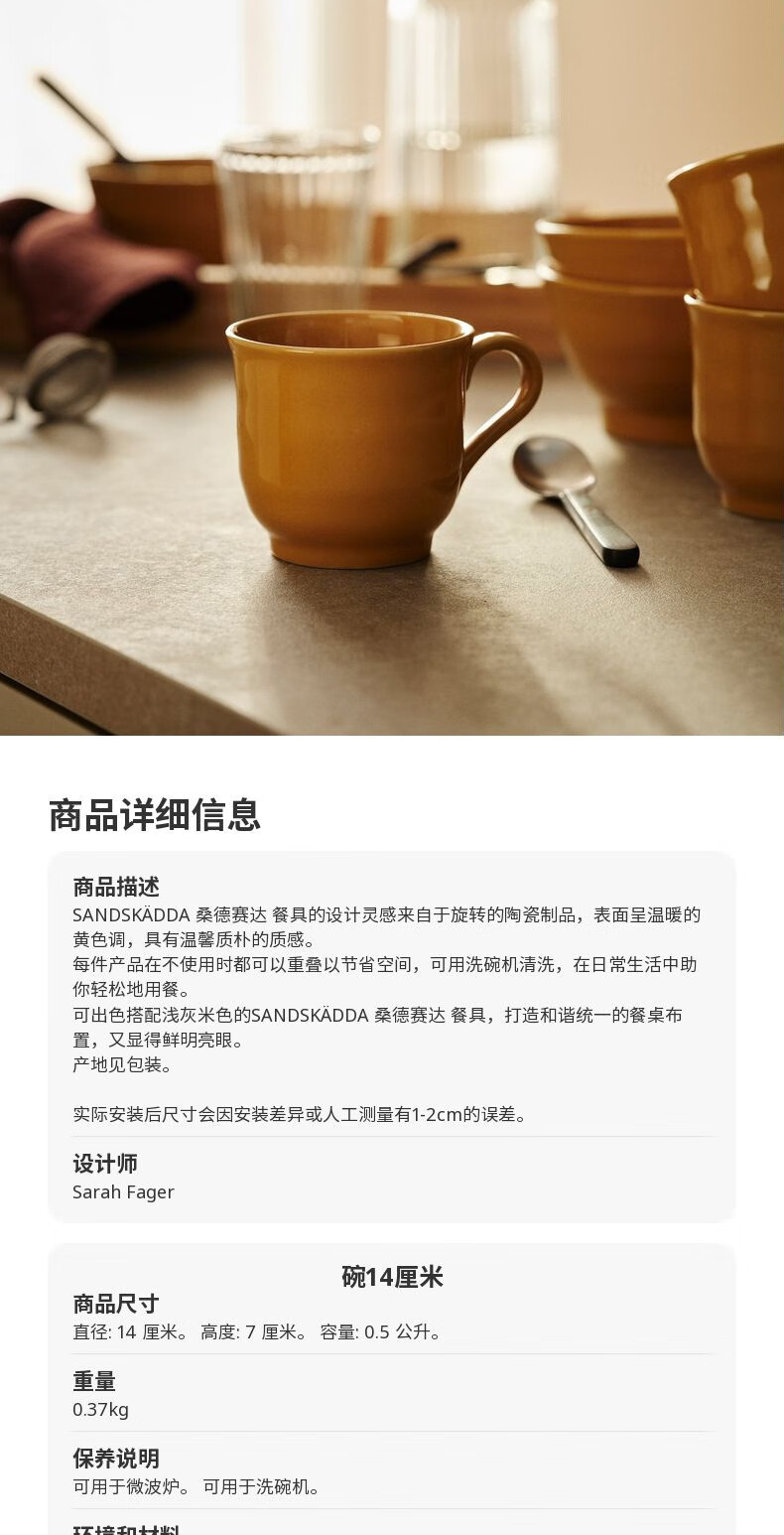 宜家(IKEA)【新品】SANDSKADDA桑德赛达吃饭碗微波炉餐桌布置家用 黄色餐盘20cm
