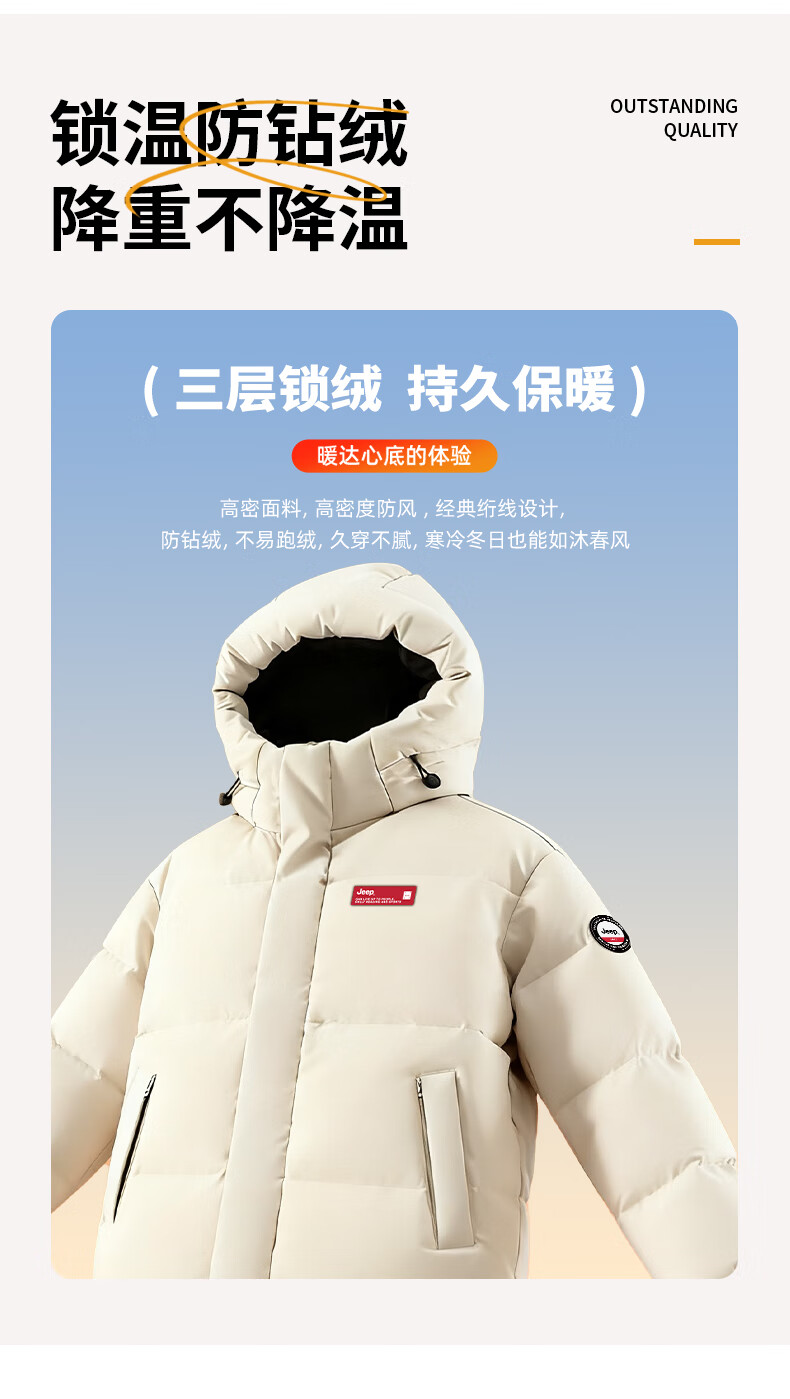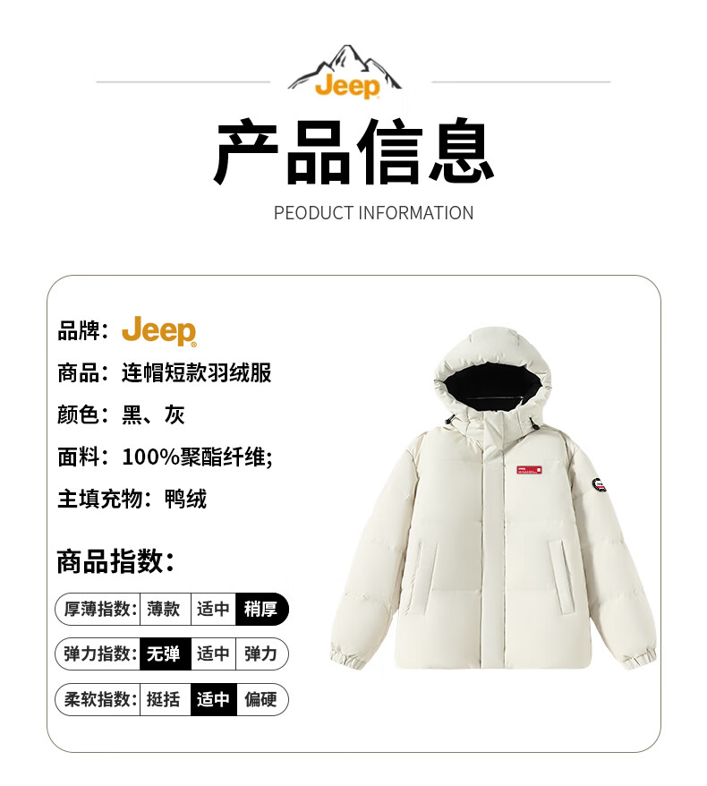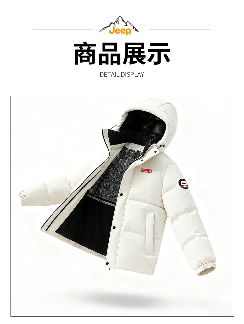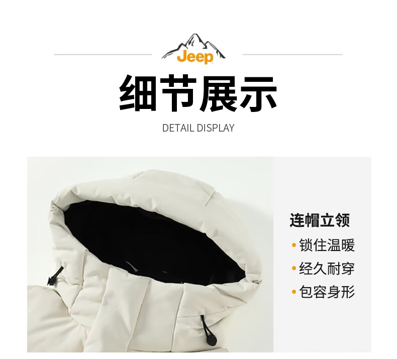 吉普(JEEP)冬季男士连帽短款羽绒服保暖御寒外套男户外徒步登山防风加厚男装