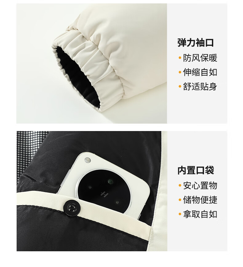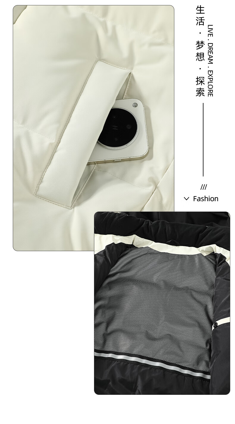 真维斯(Jeanswest)男士冬季羽绒服美式复古立领上衣青少年加绒加厚宽松大码短款外套