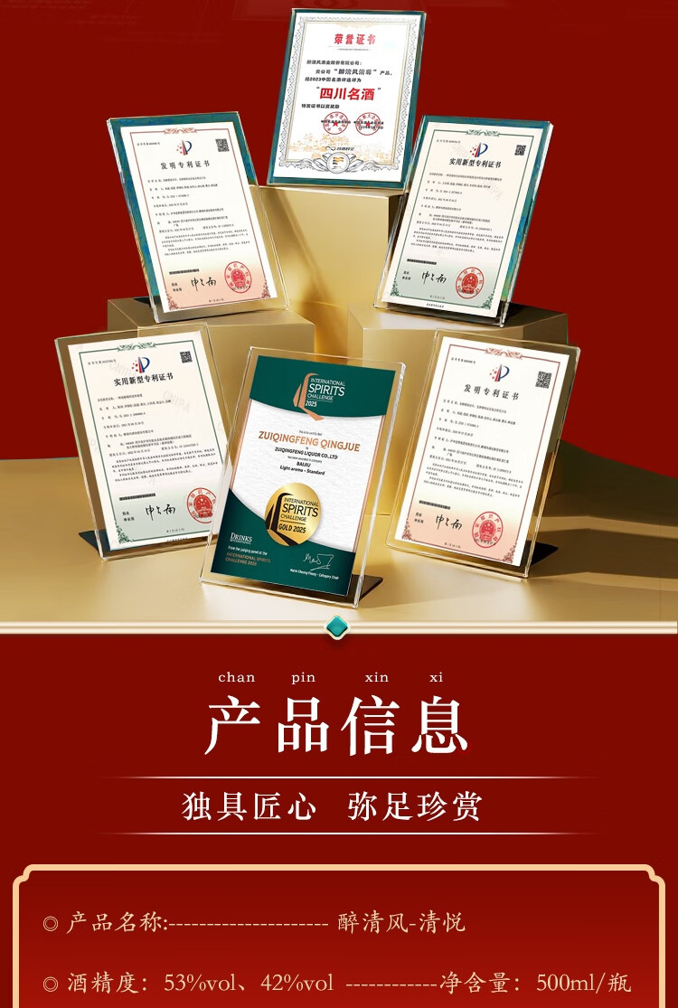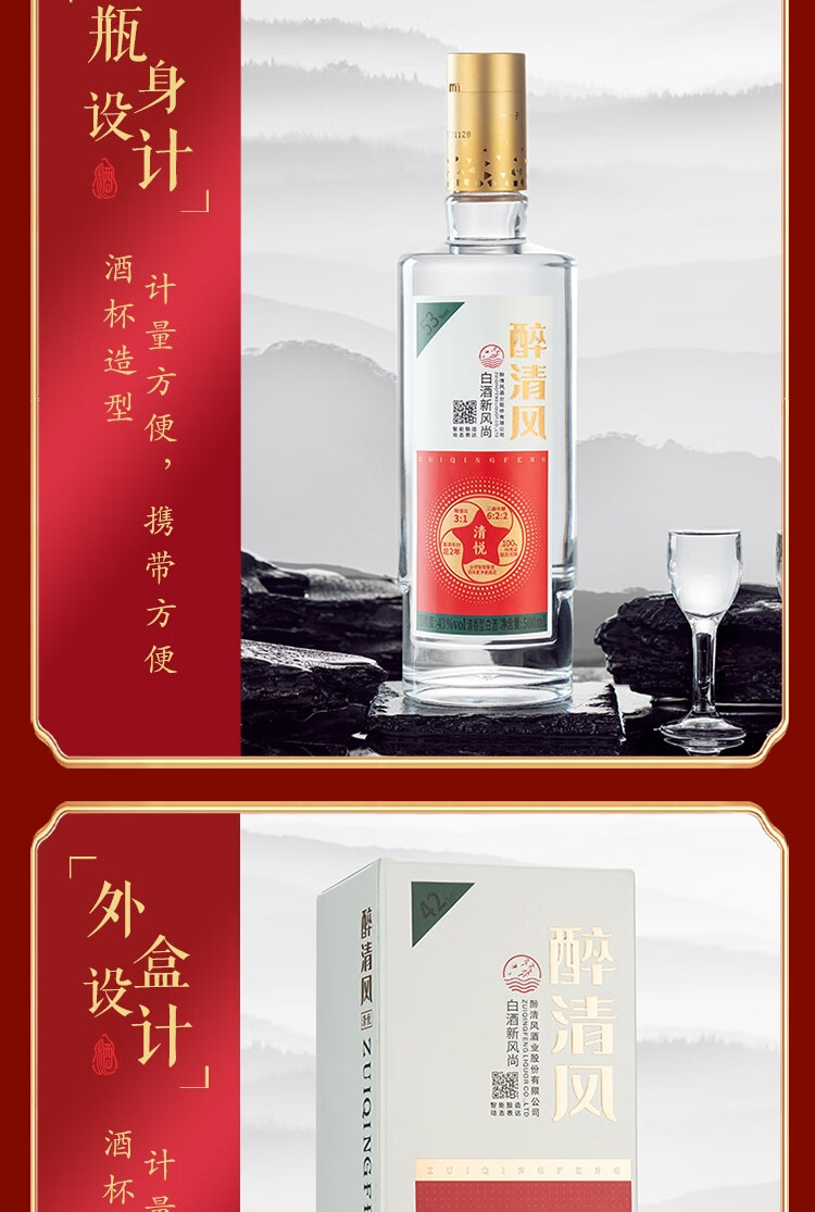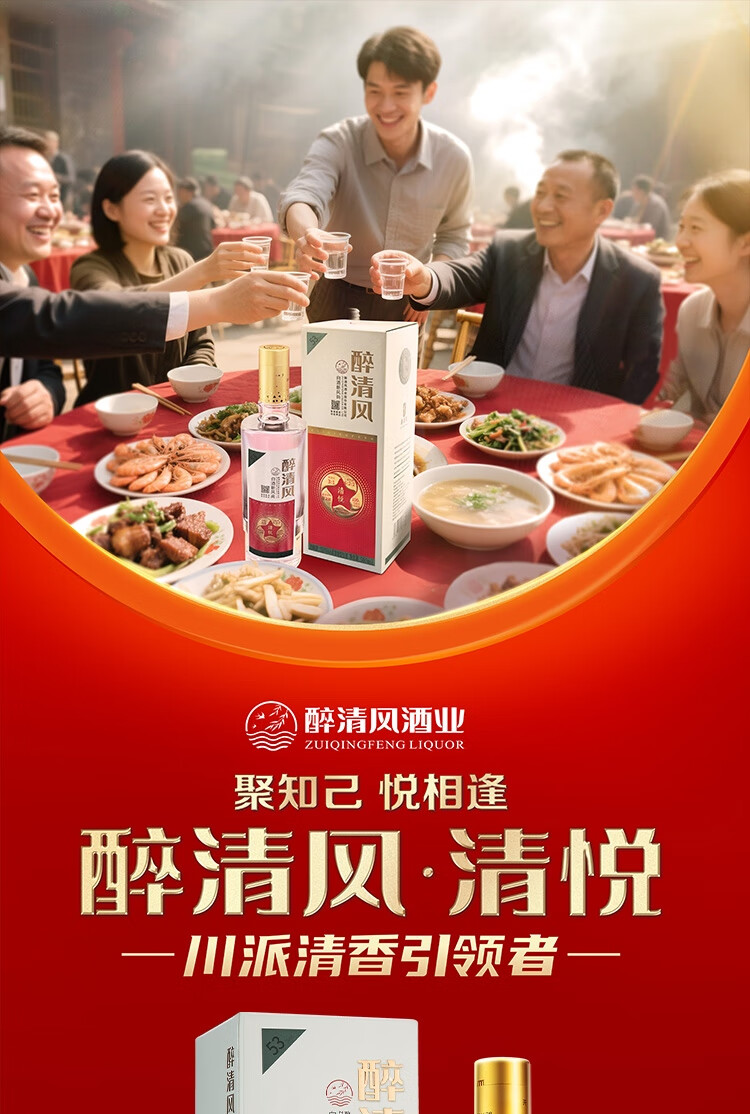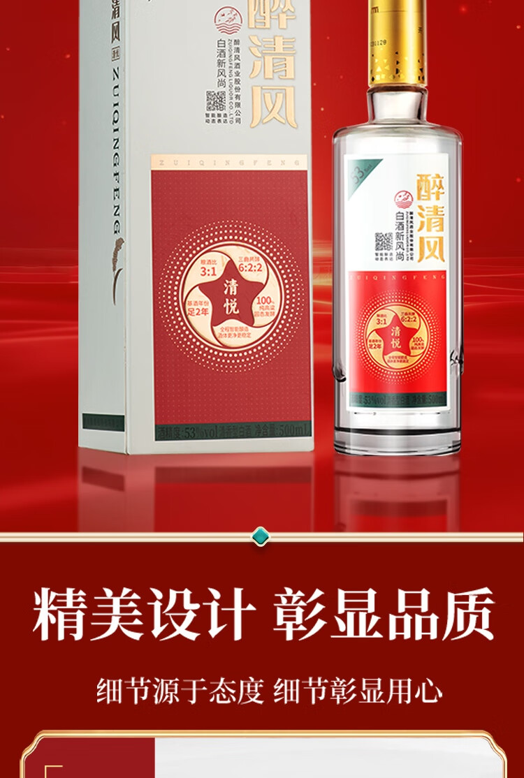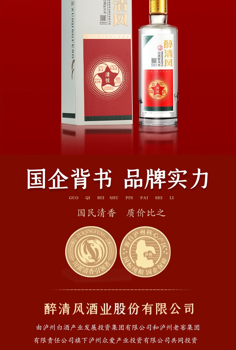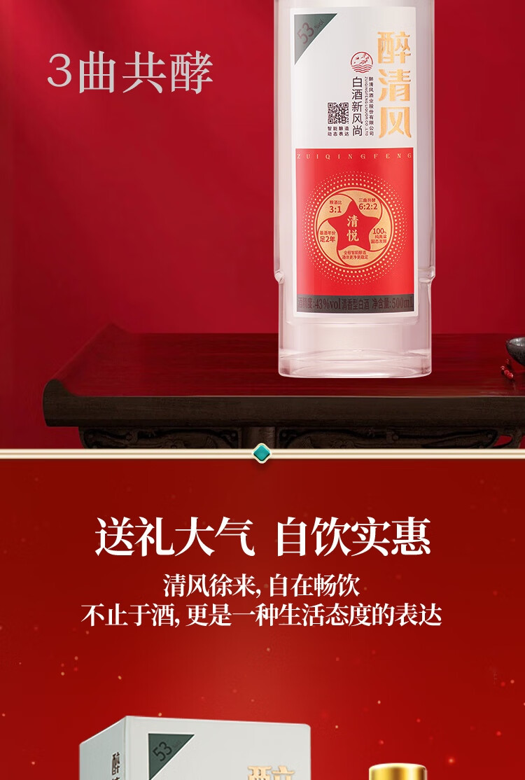 醉清风清悦清香型白酒42度500ml光瓶酒固态纯酿节日送礼