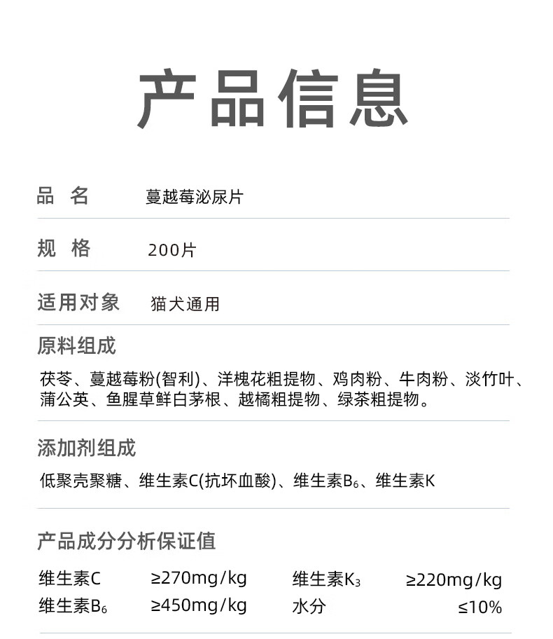 宠物狗狗猫咪专用蔓越莓泌尿片粉利尿通膀胱尿血肾衰结石尿频尿闭 颤栗泌尿片1瓶