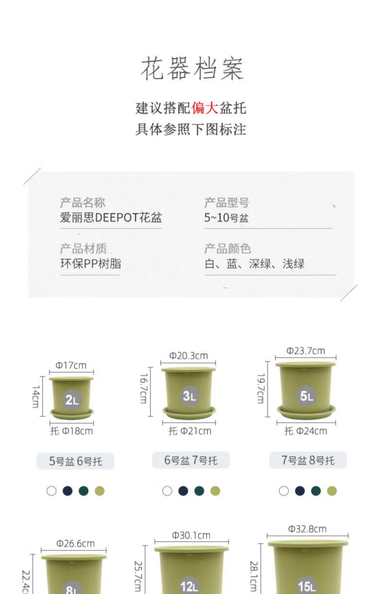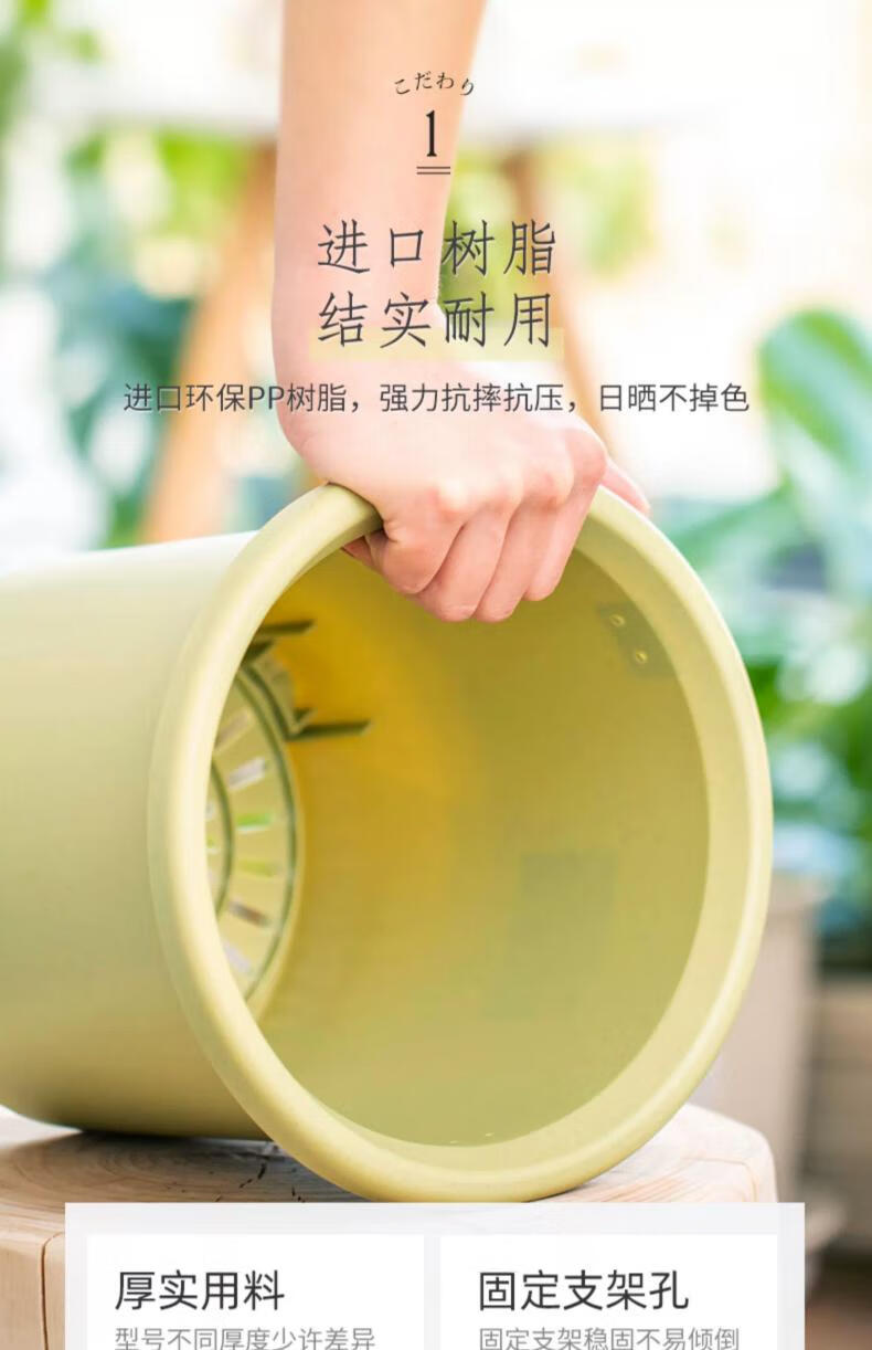 爱丽思花盆塑料圆形树脂多肉花盆种花种菜盆绿萝爱丽丝 浅绿口径20.3cm