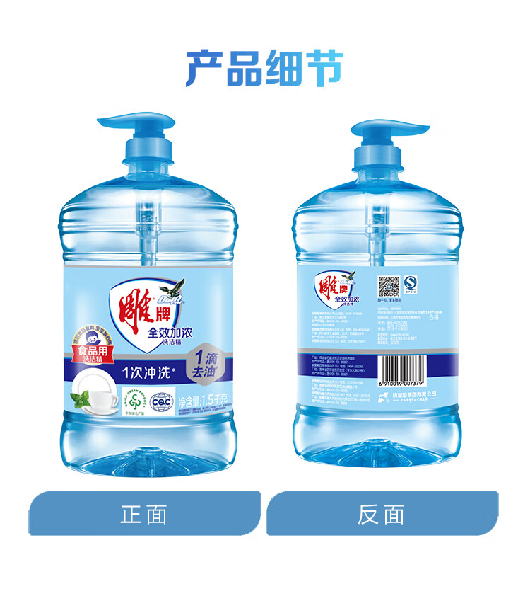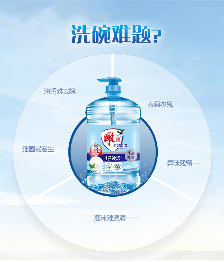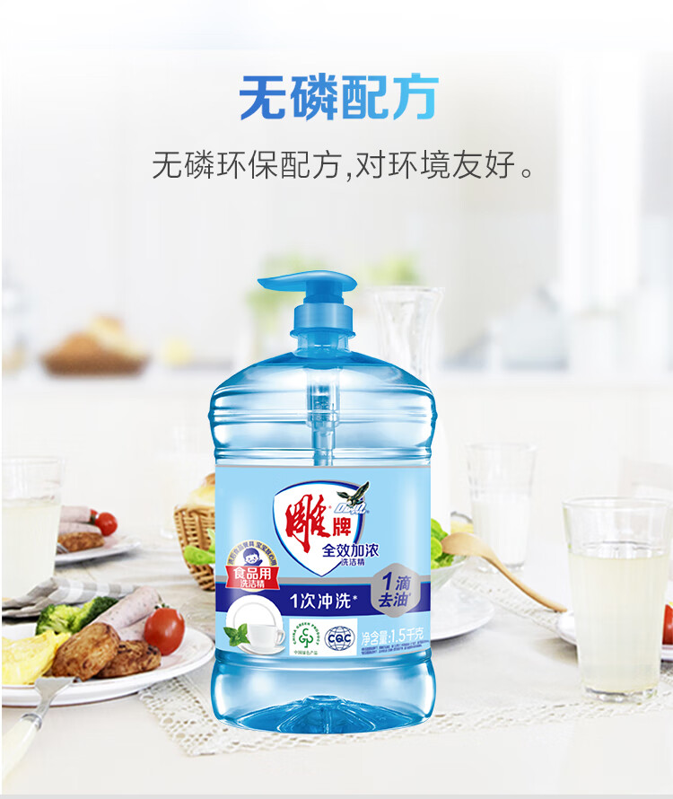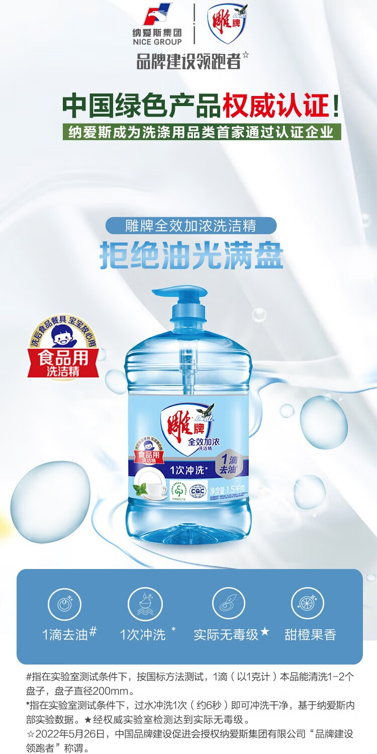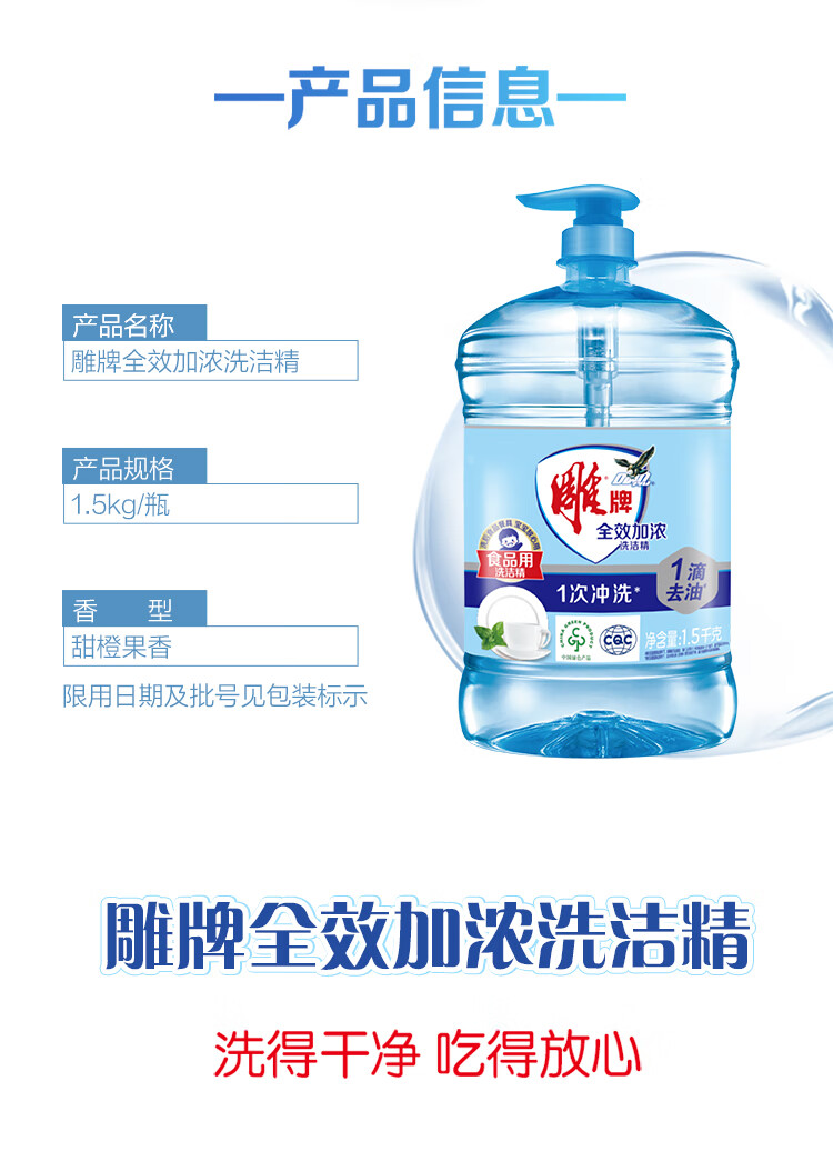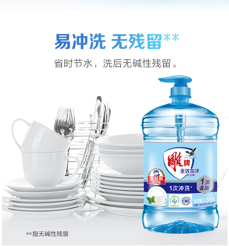 雕牌洗洁精家庭装家用大桶全效加浓强力洗涤剂厨房洗碗清洁剂实惠 【4.08斤】1.02kg*2瓶雕牌全效洗洁精+20g液+海绵擦