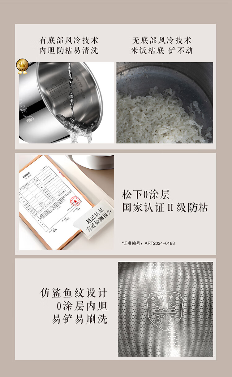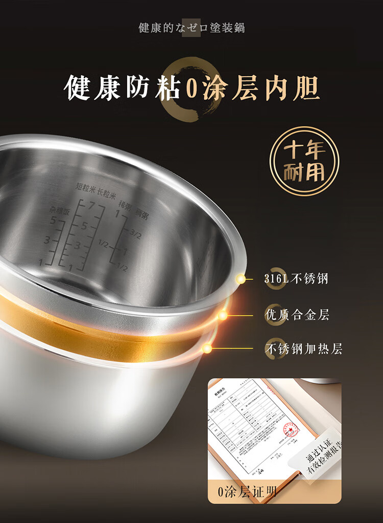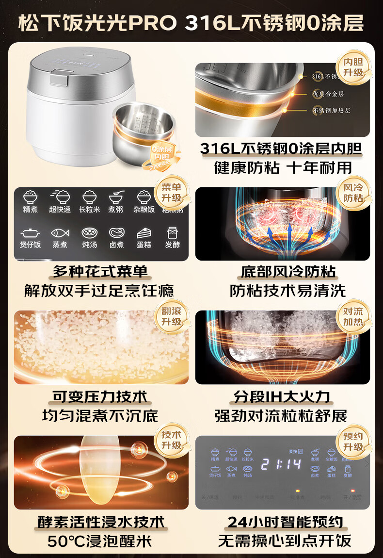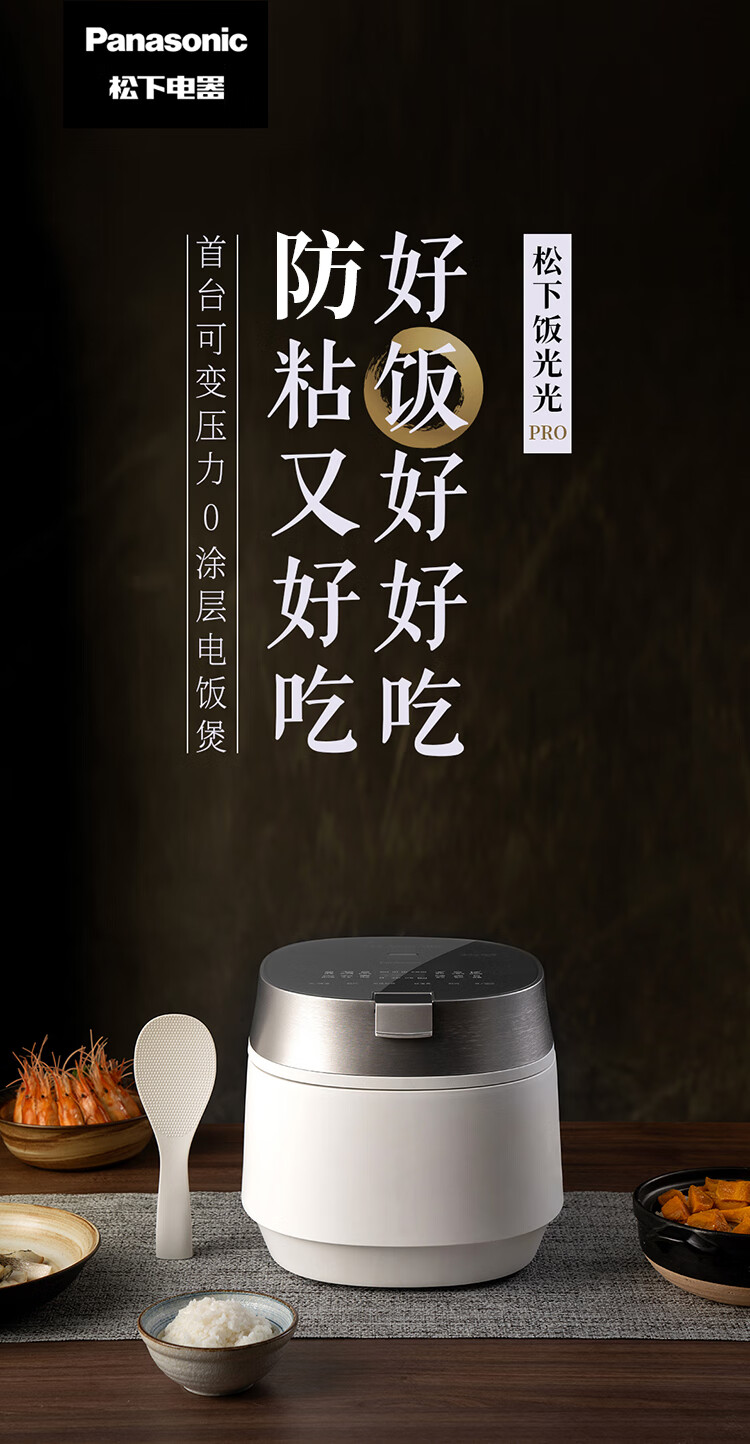 松下(Panasonic)【国家补贴】饭光光PRO电饭煲0涂层家用无涂层电饭锅4-5人可变压力不锈钢IH煮饭3.8升SR-HXS151-W