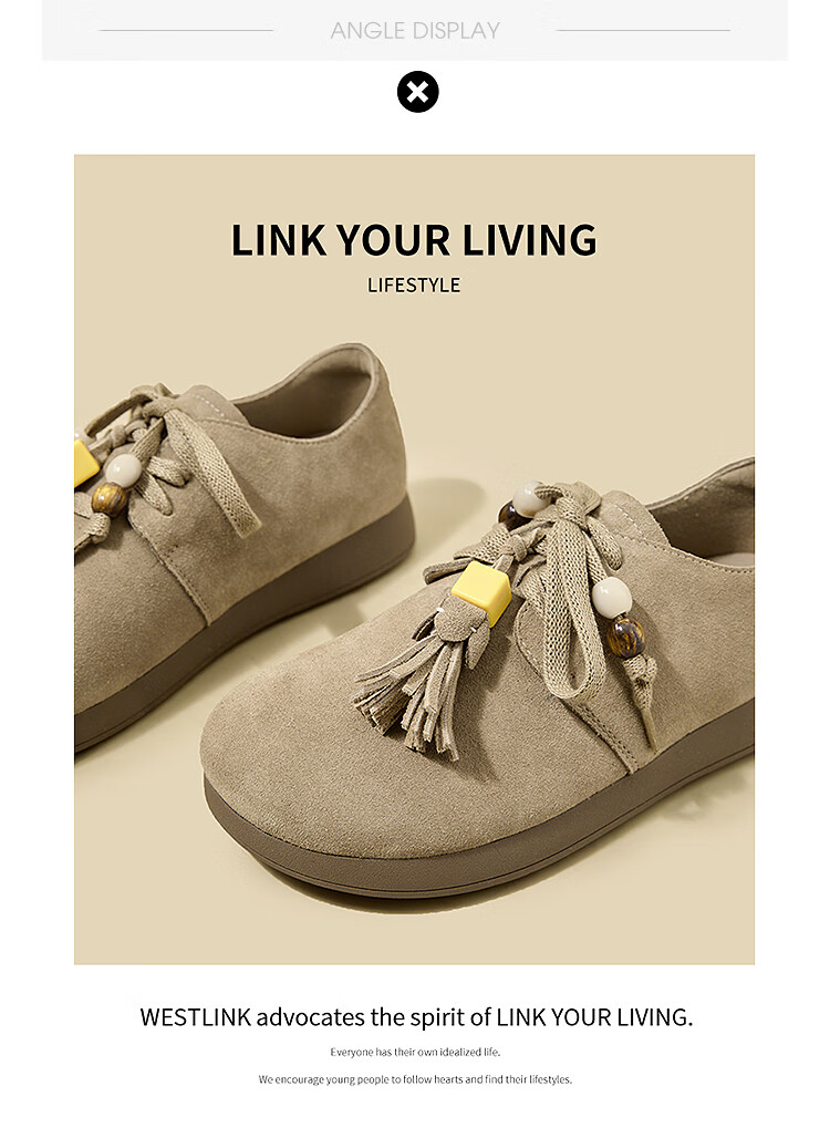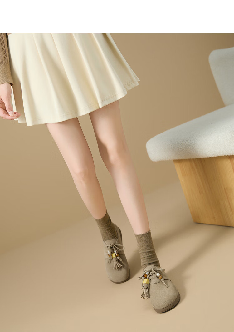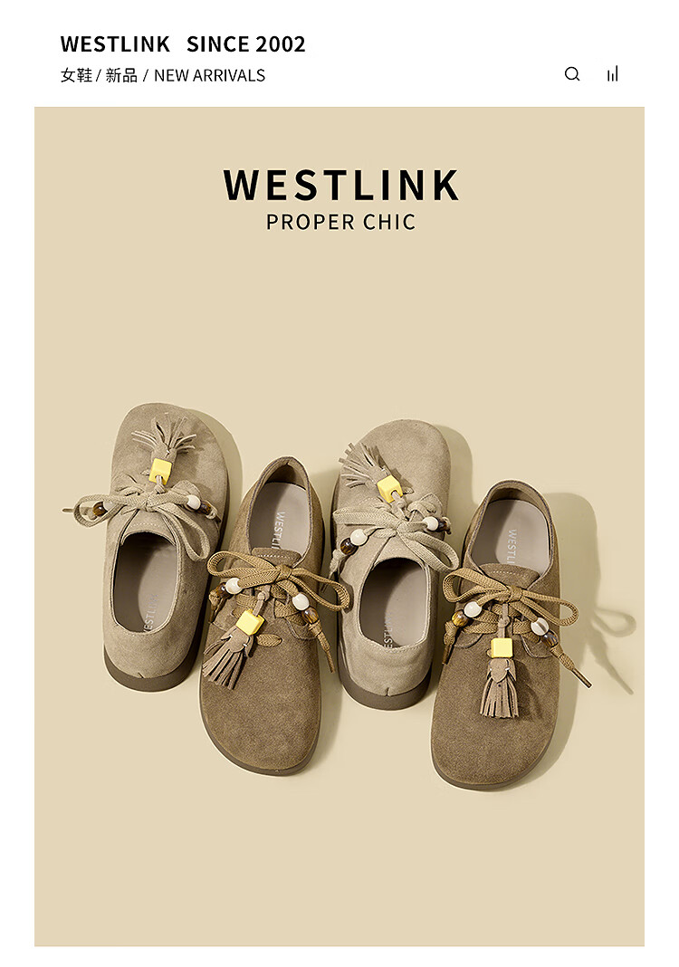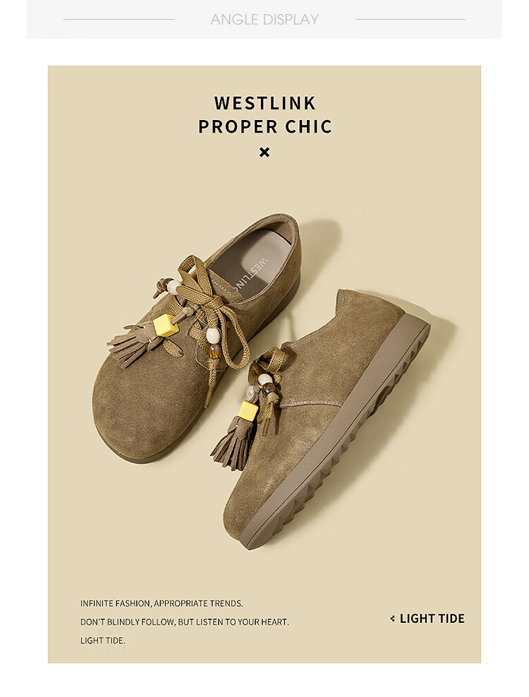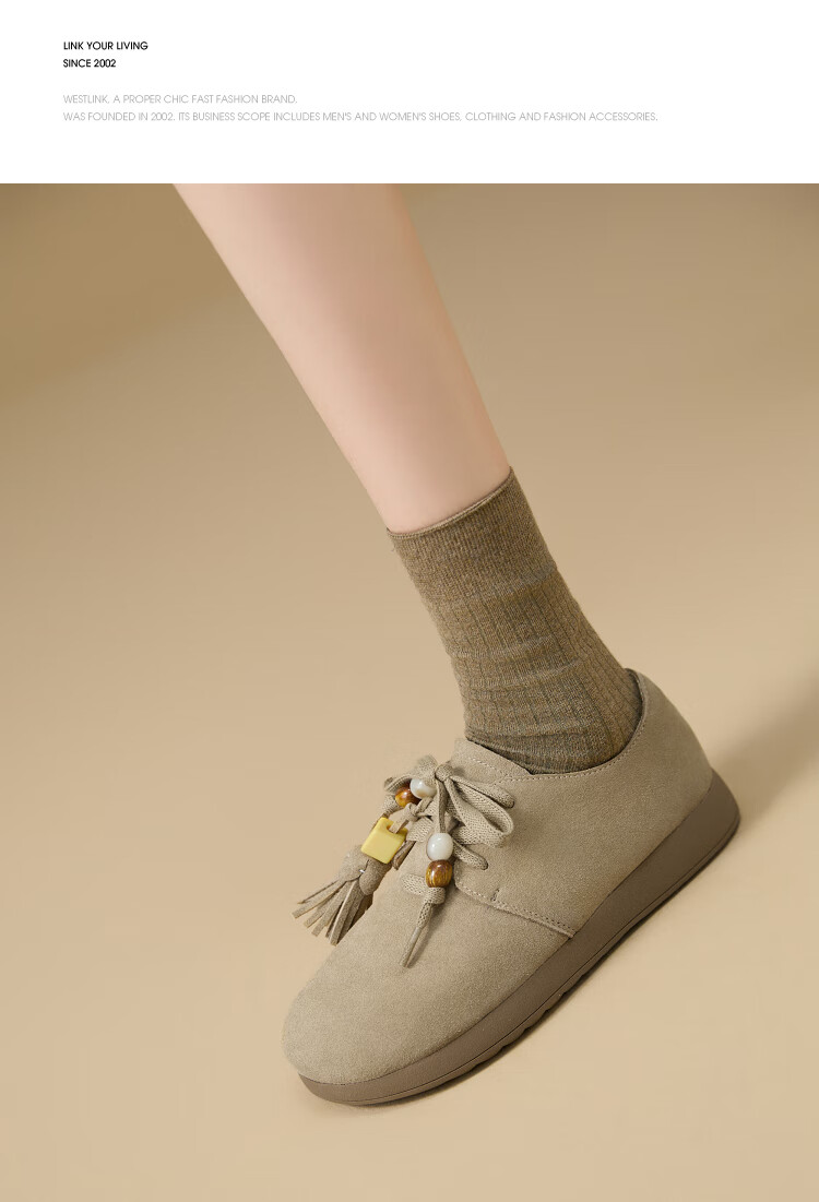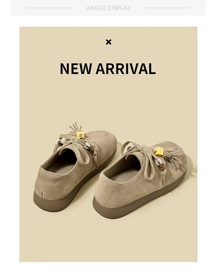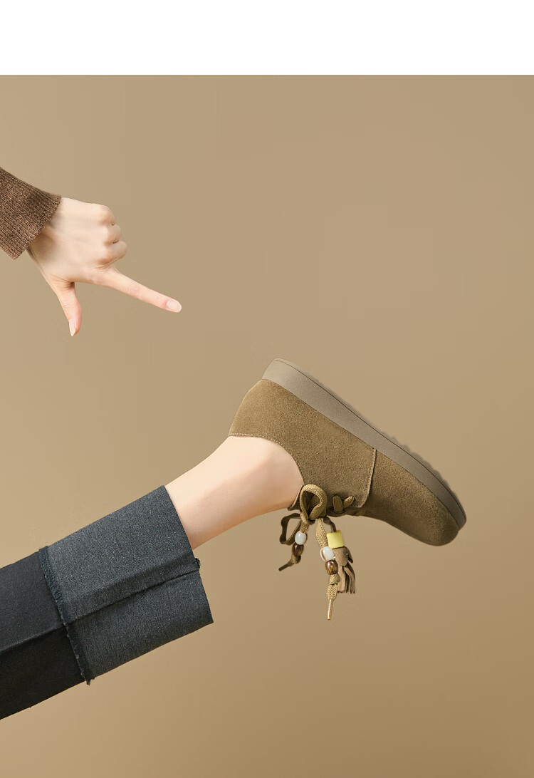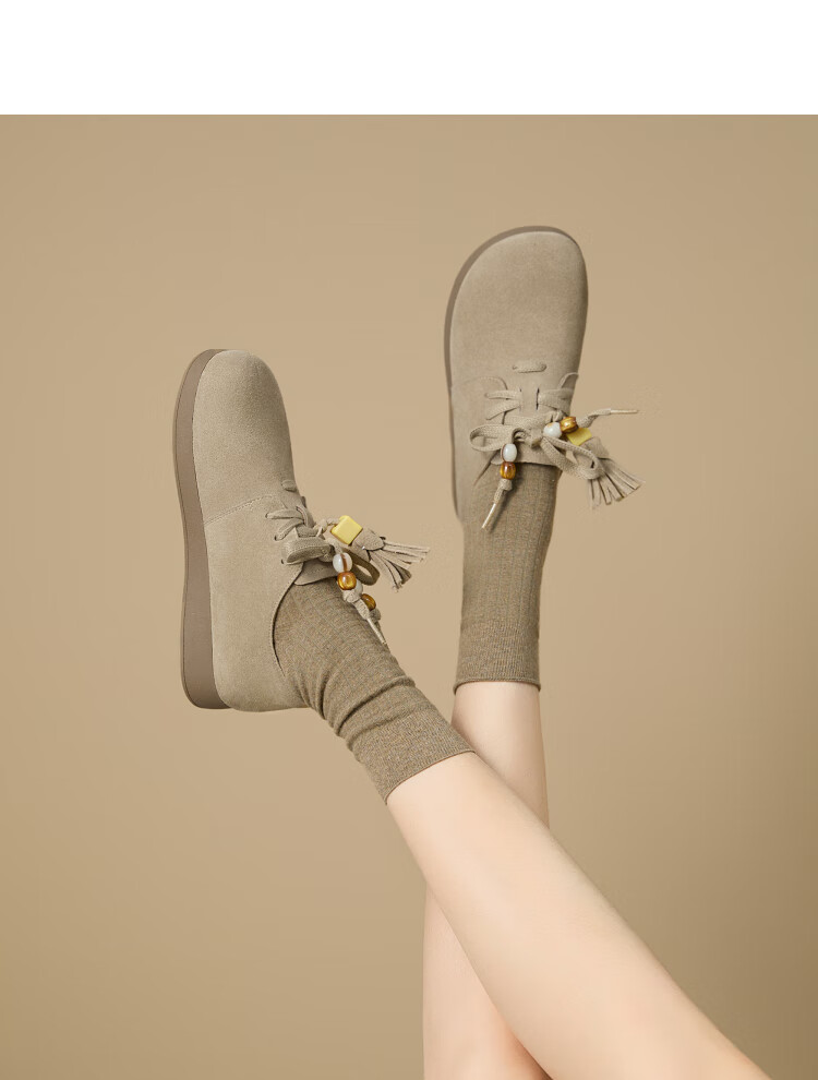 西遇复古勃肯鞋女2025新款秋季串珠流苏系带小皮鞋软底平底乐福鞋 驼色 37 (235)