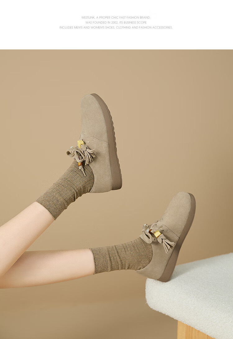 星期六(St&Sat)新款软底通勤乐福鞋一脚蹬复古女单鞋精美山茶花女鞋WKSSD2112F2F 卡其灰 【精美山茶花】 36