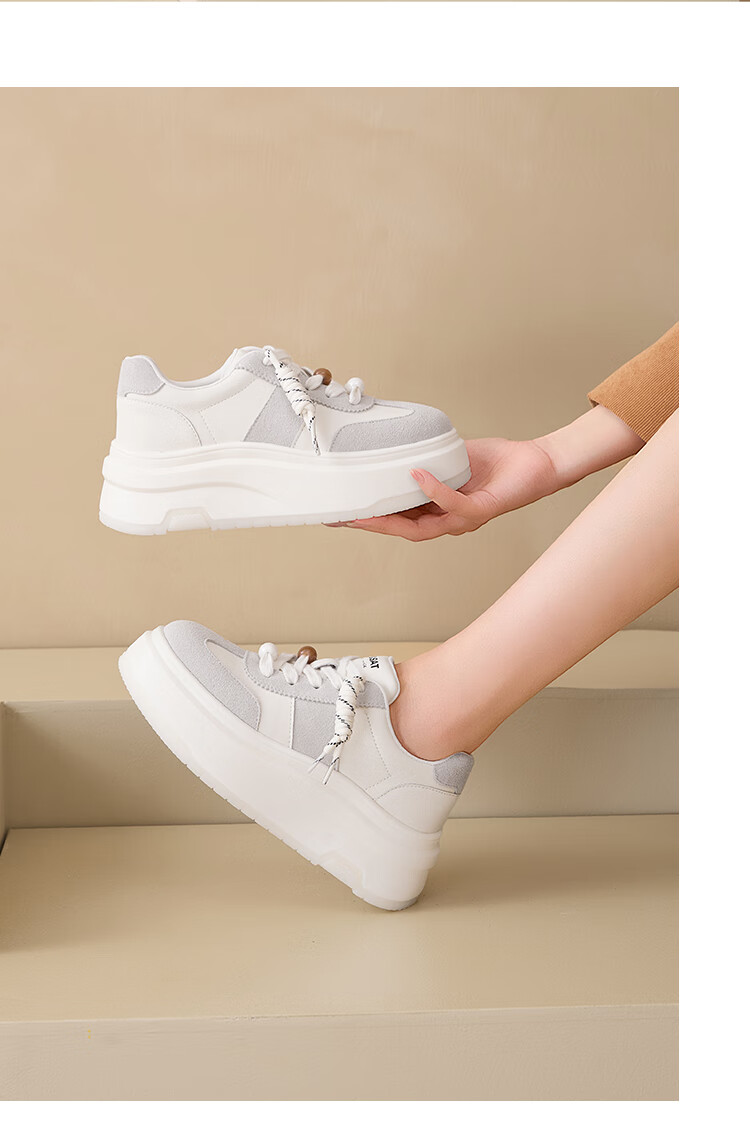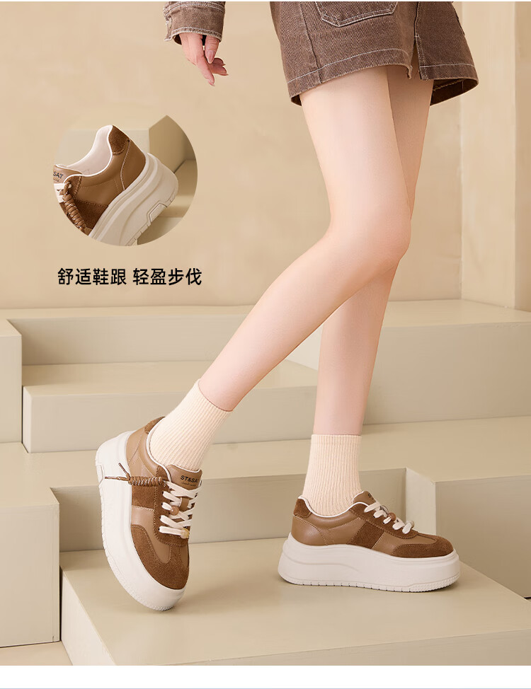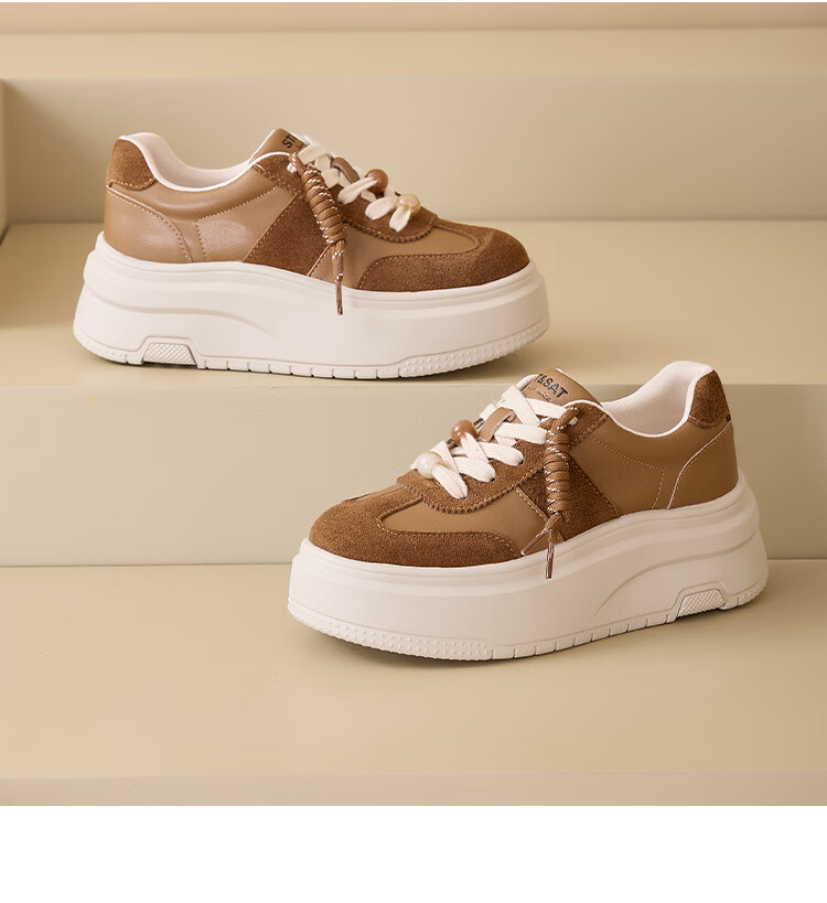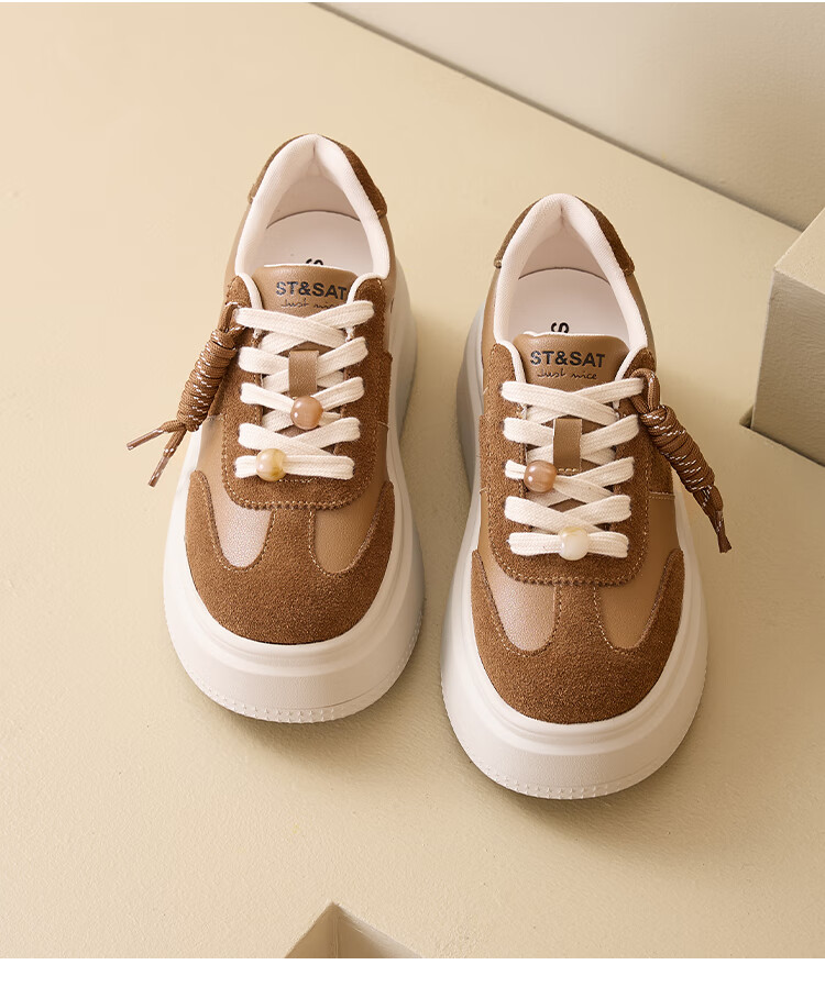 星期六时尚简约百搭板鞋2025秋季新款厚底学院风小白鞋MTSSD3112C82 棕色 35